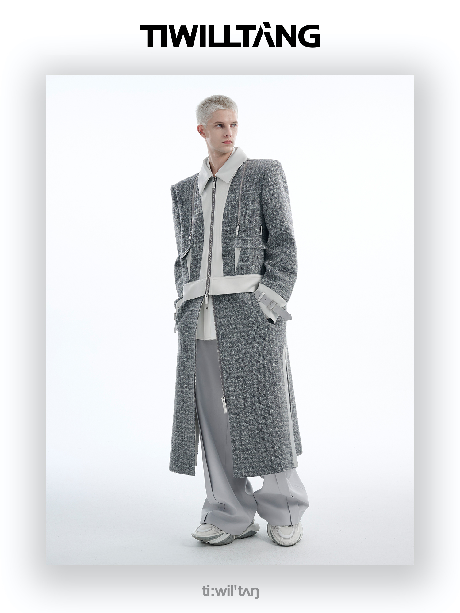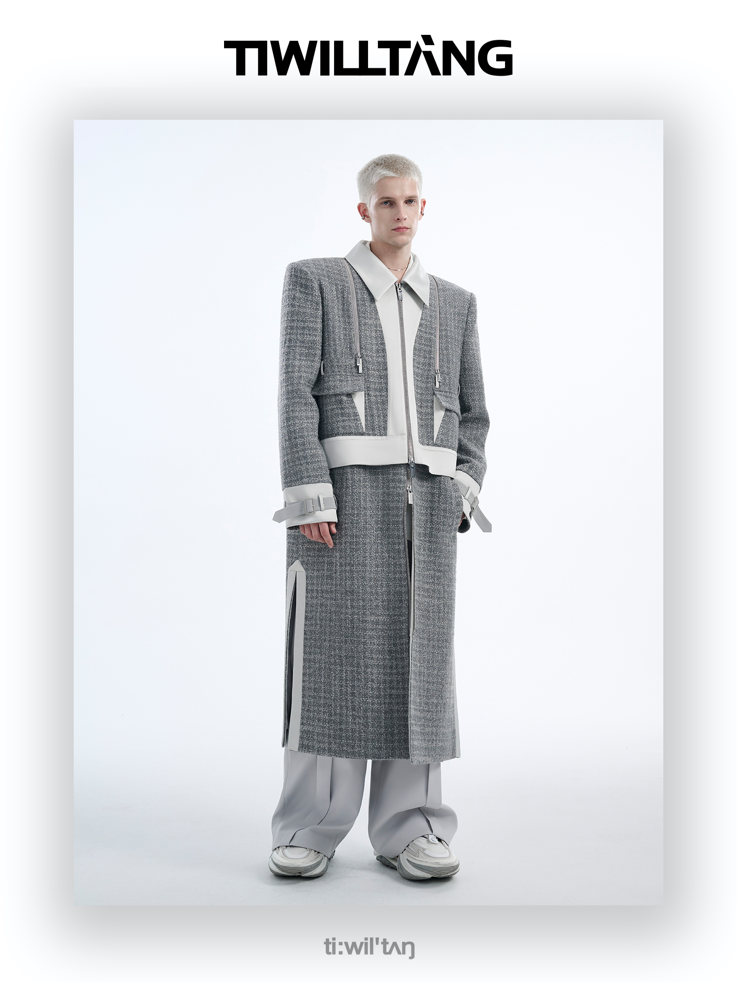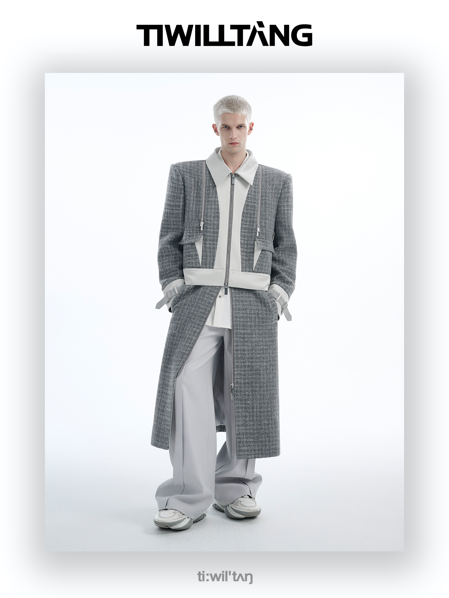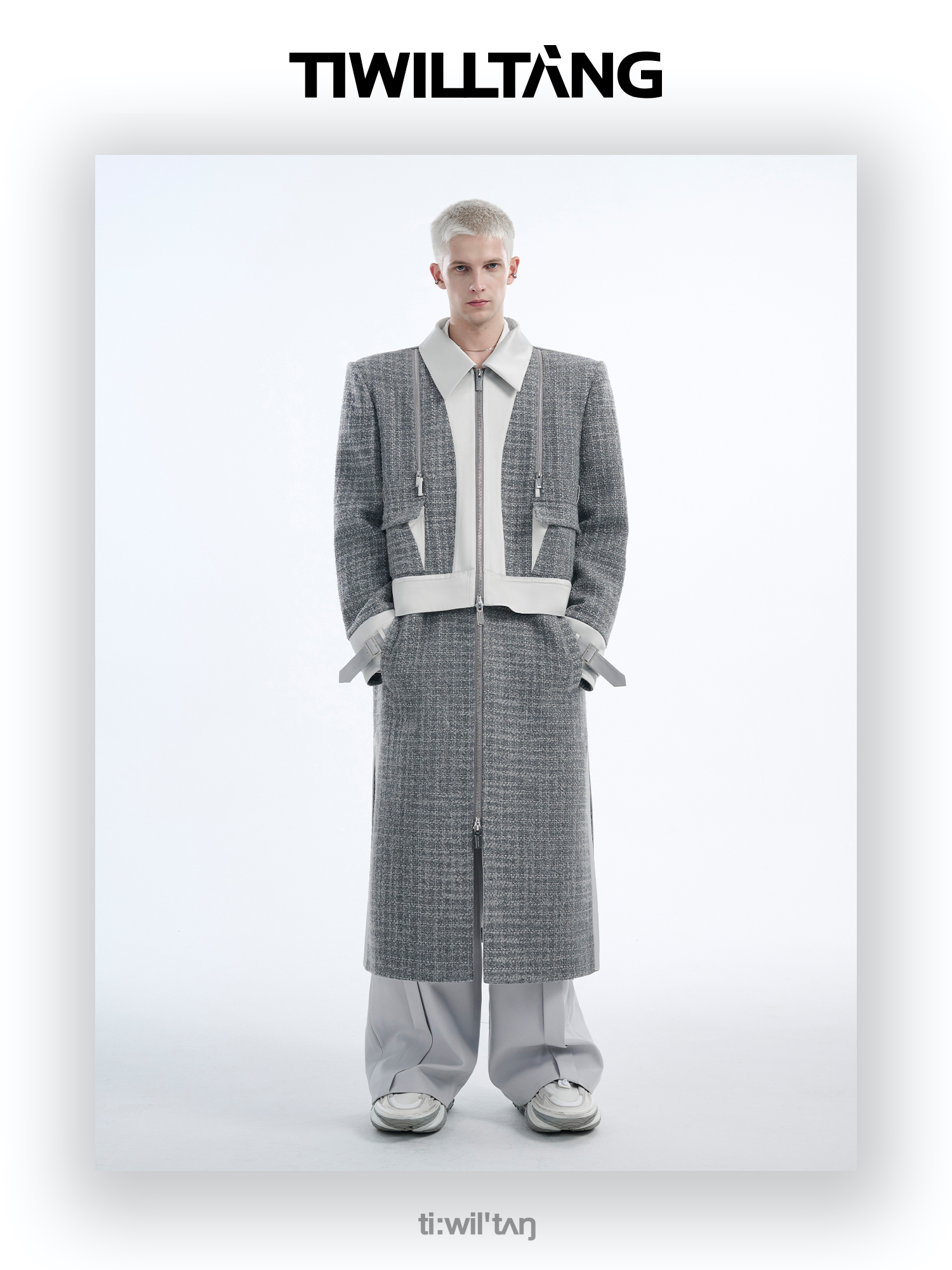 TIWILLTANG启世录“耀屿珲晔”小香风粗花呢中长款可拆卸夹克大衣