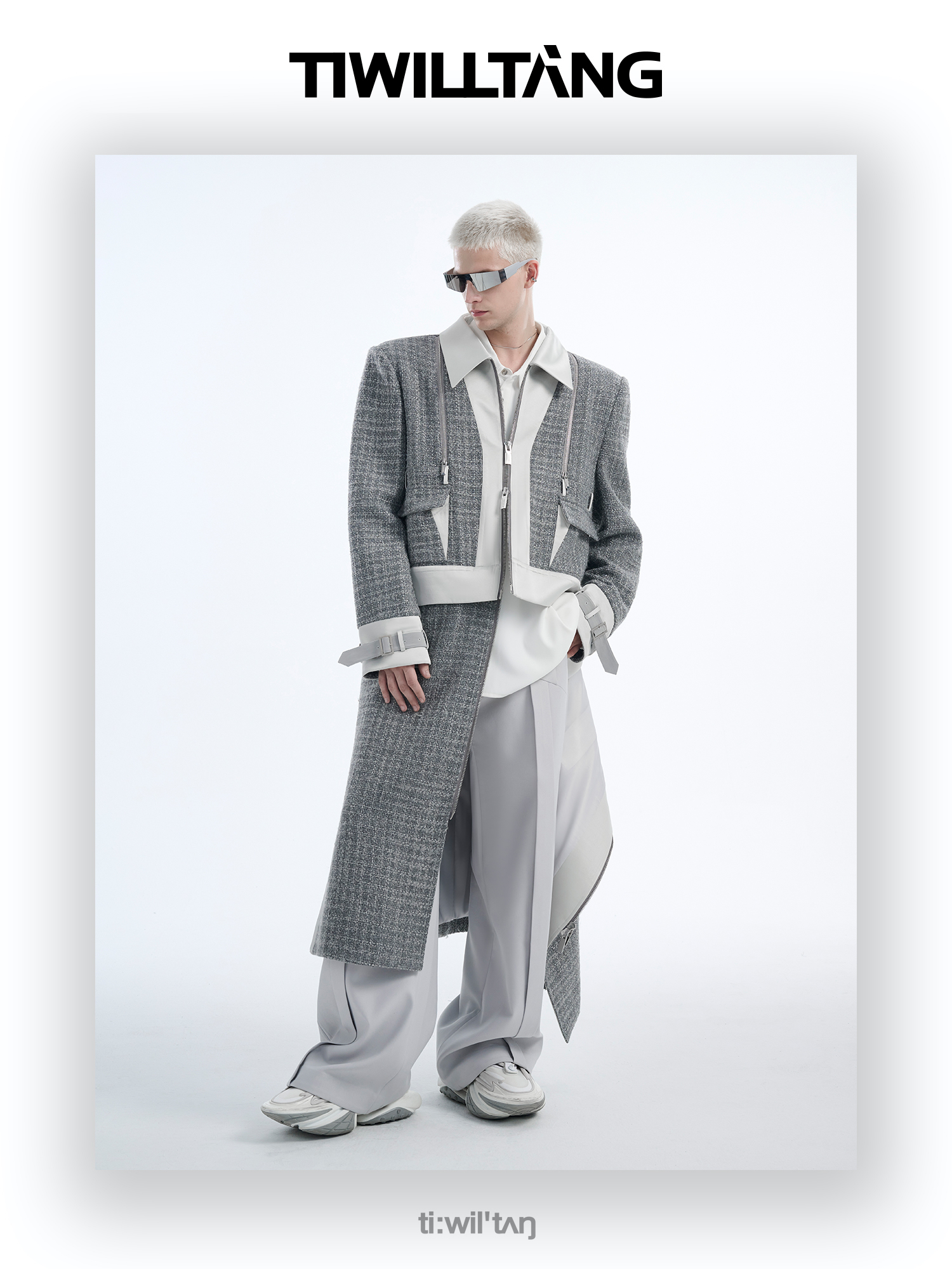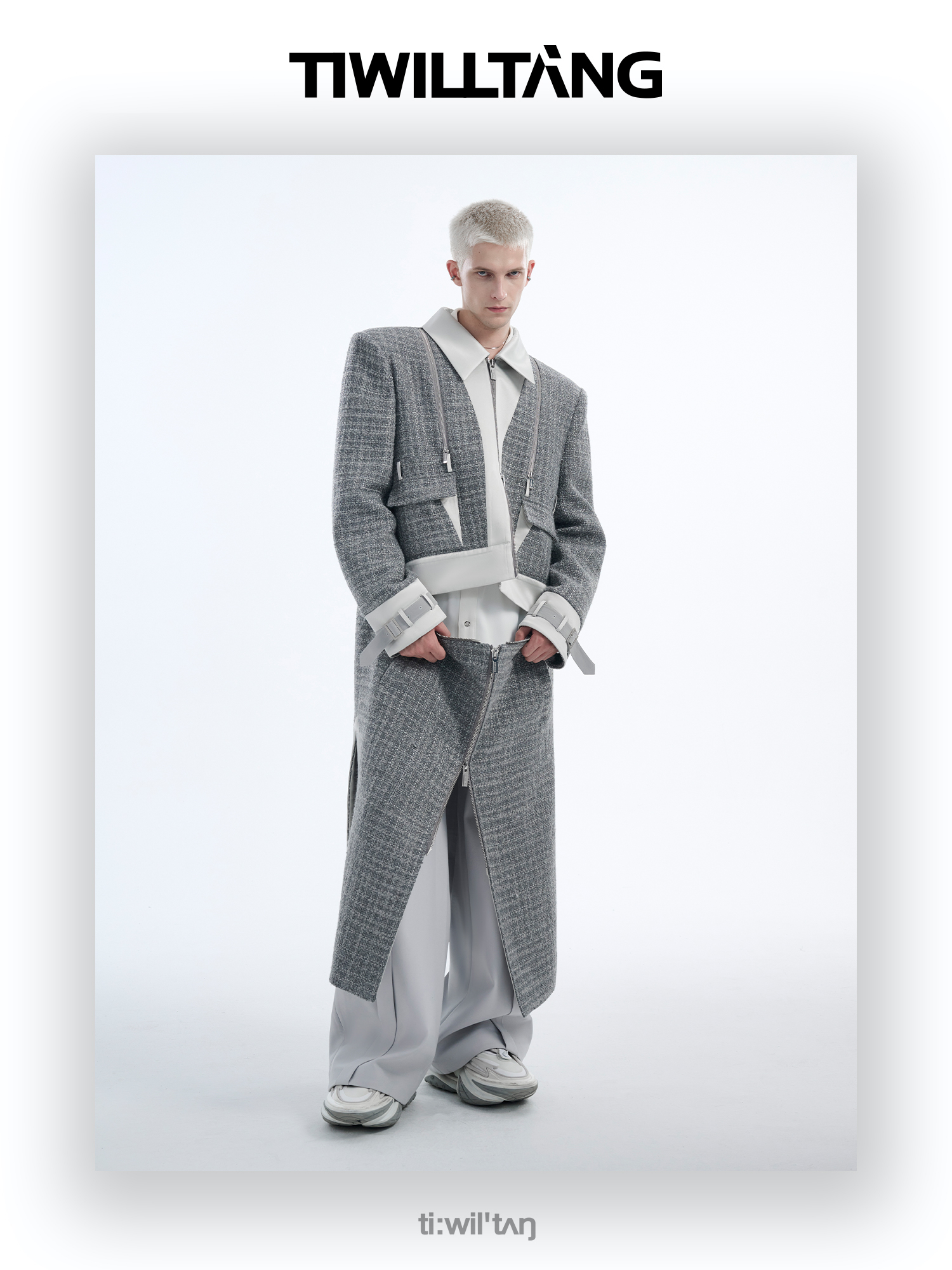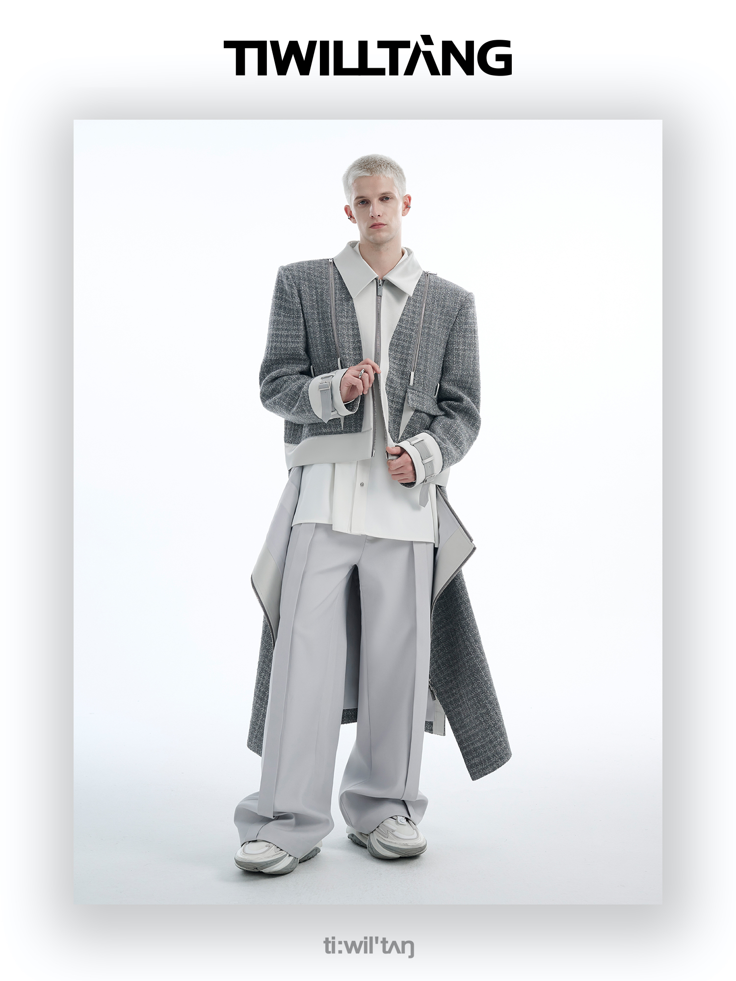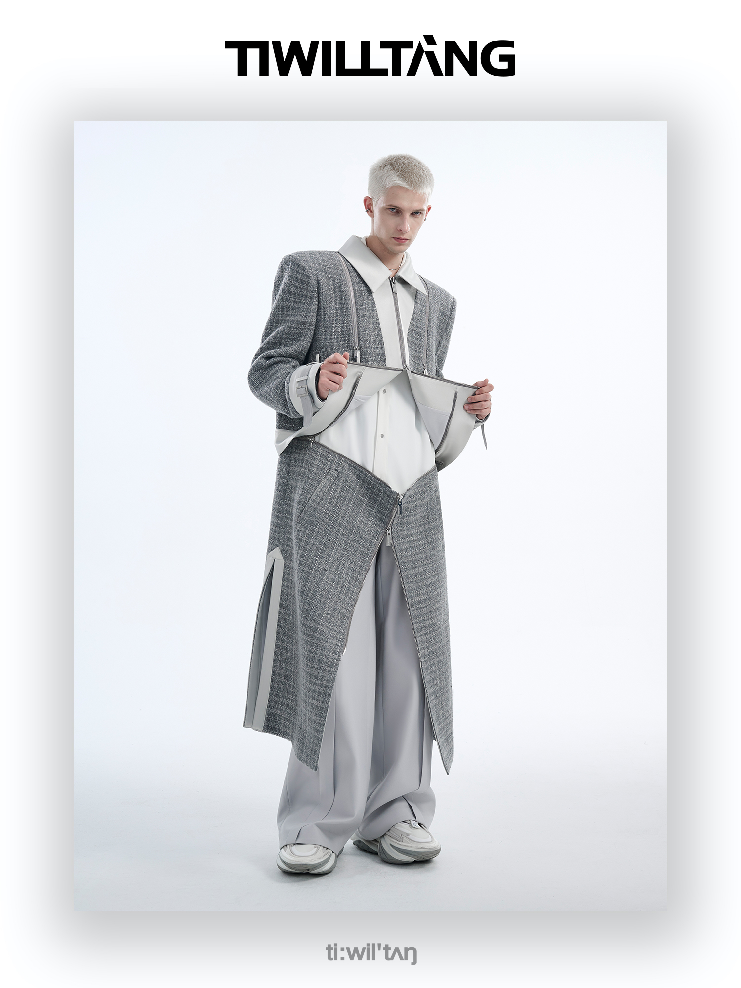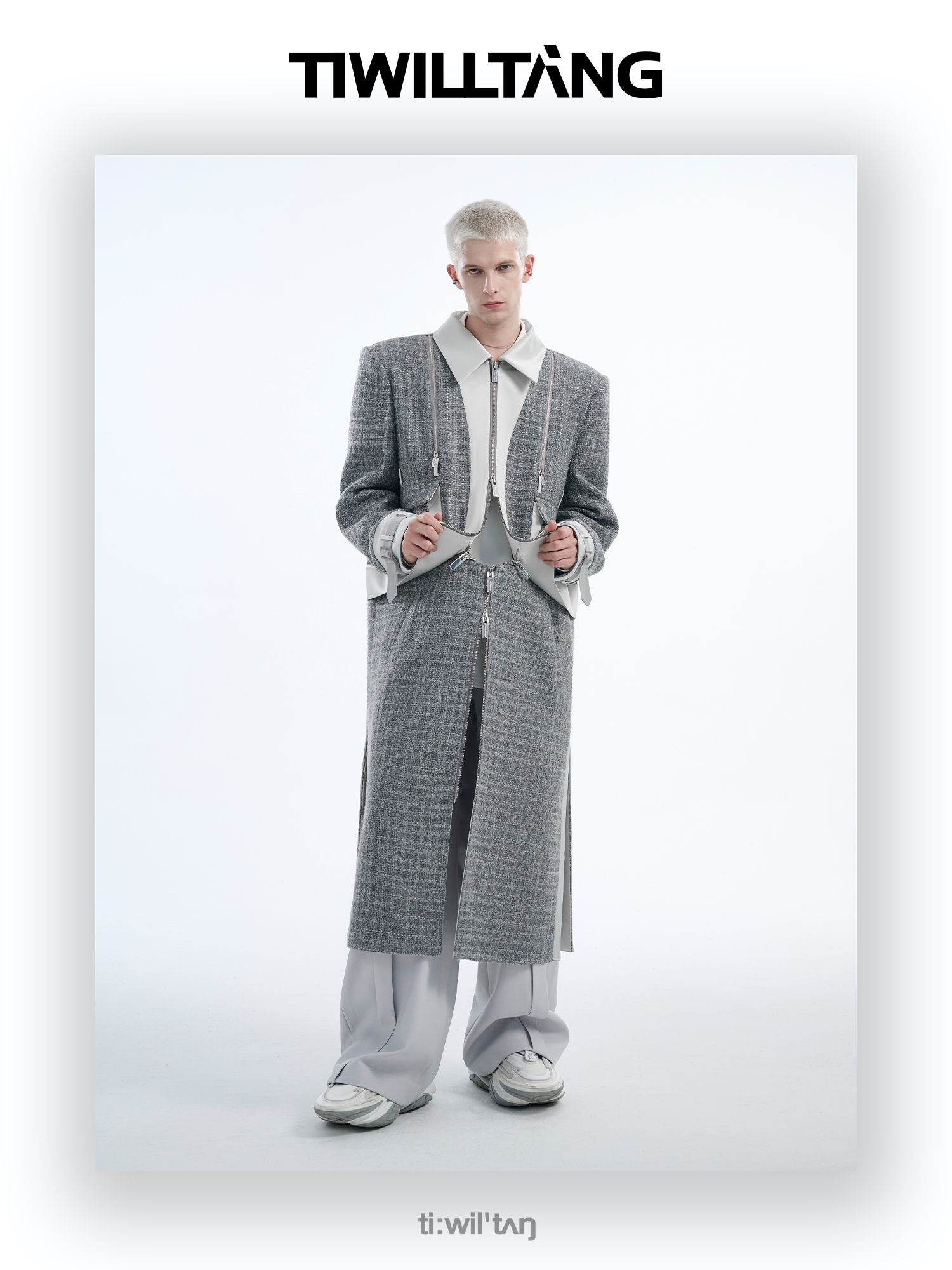 TIWILLTANG启世录“耀屿珲晔”小香风粗花呢中长款可拆卸夹克大衣