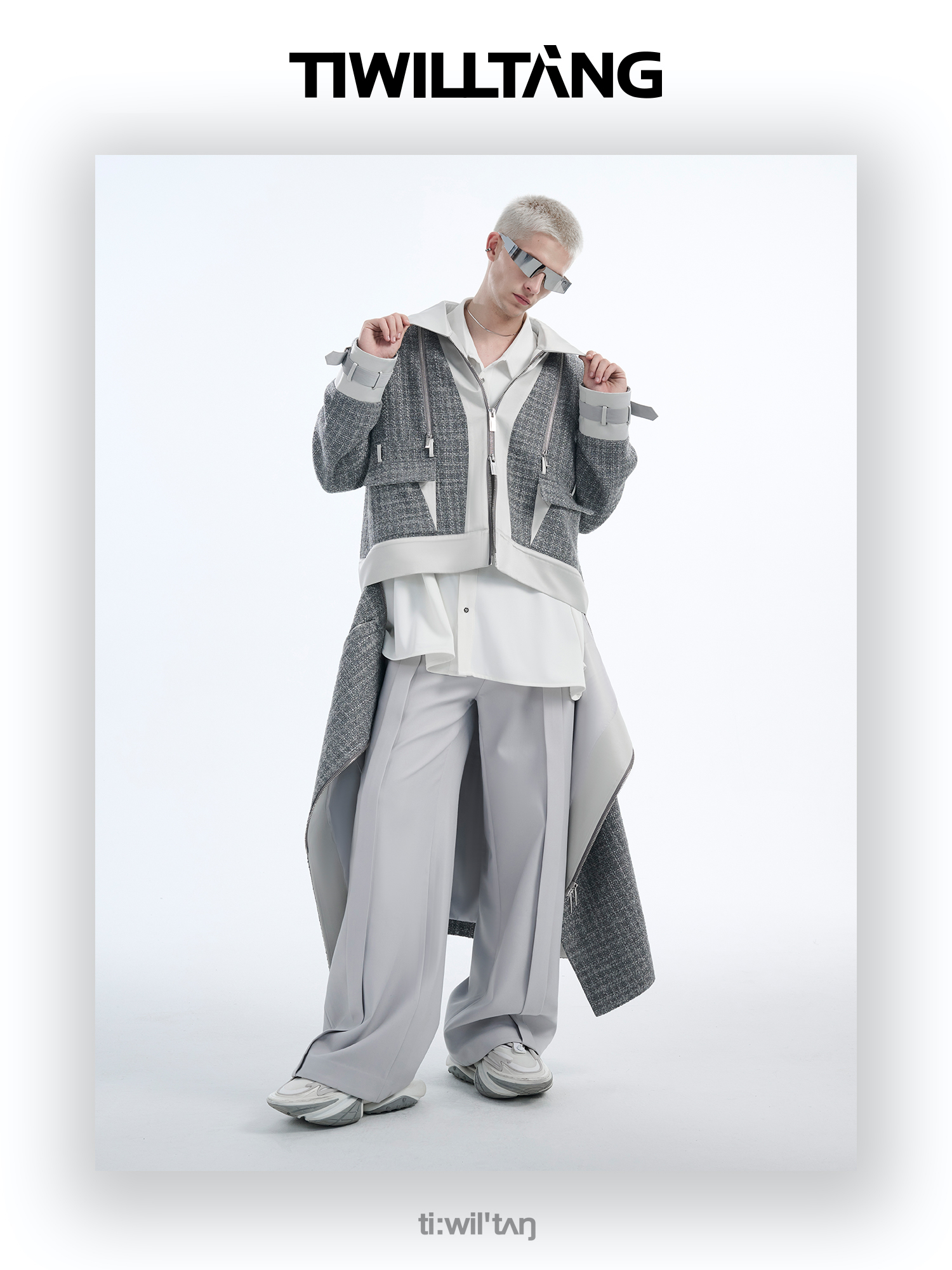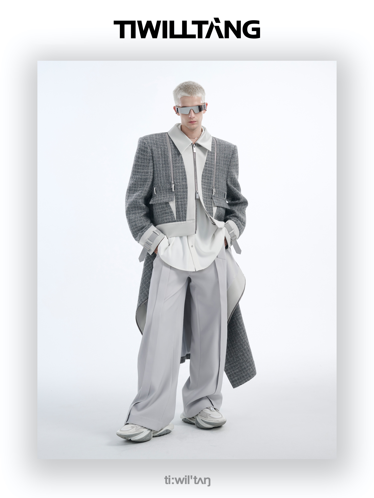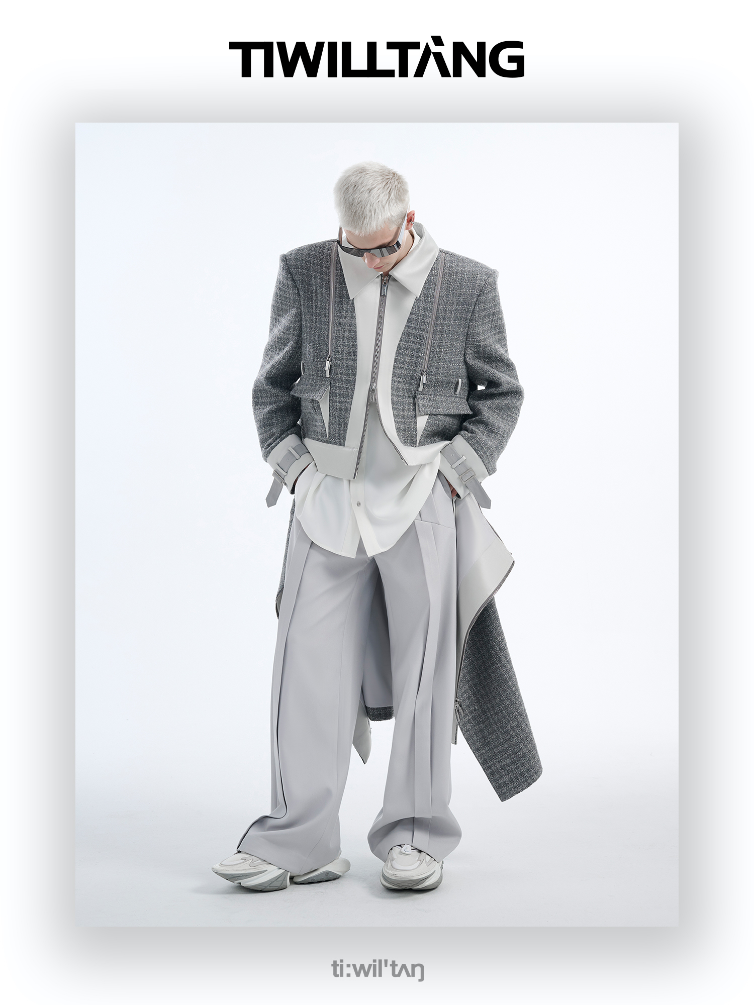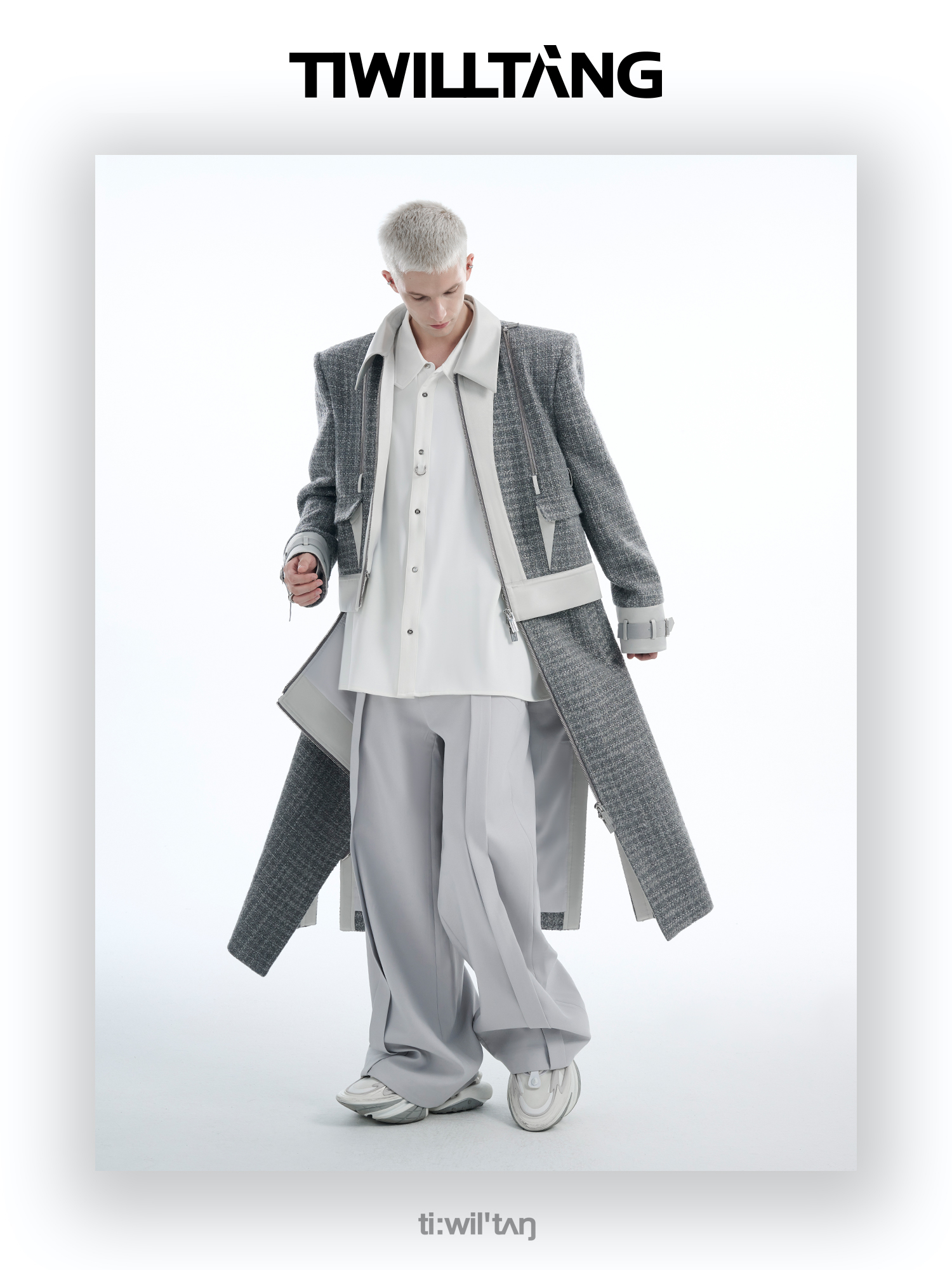 TIWILLTANG启世录“耀屿珲晔”小香风粗花呢中长款可拆卸夹克大衣
