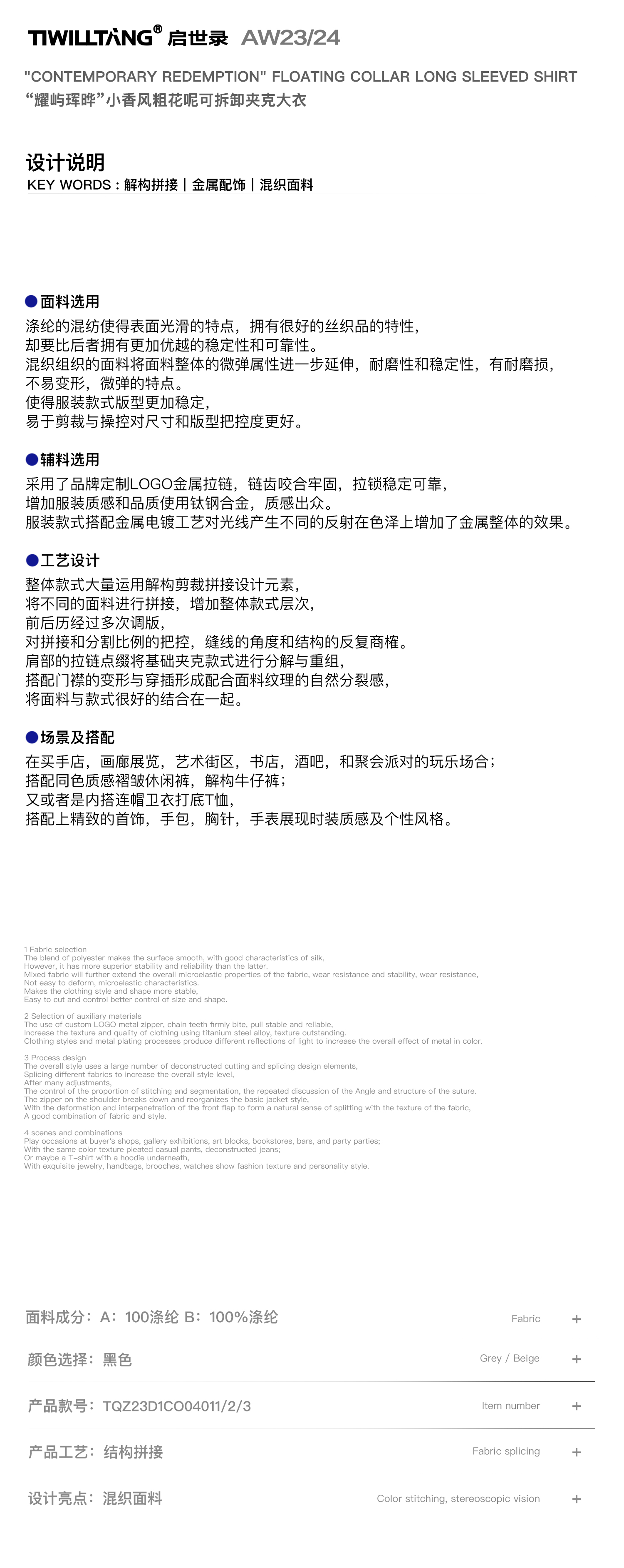 启世录TIWILLTANG“际叠塑形”交错翻领毛衫