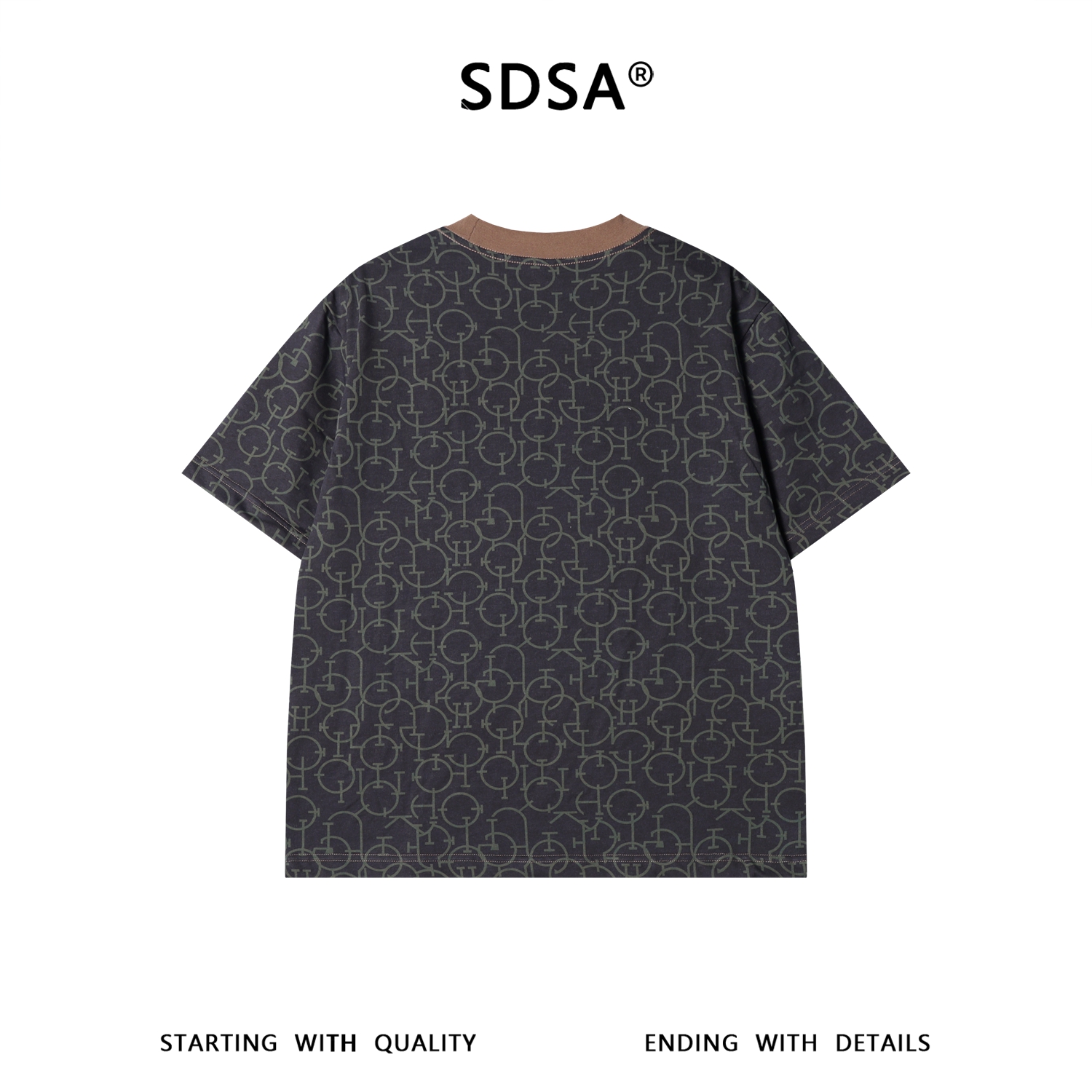 SDSA男装2026新款高贵轻奢美式复古几何链条满印短袖T恤百搭时尚