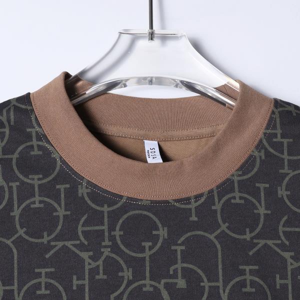 T3498夏季高级感新款男士抽象领口印花圆领短袖T恤满天星时尚宽松上衣