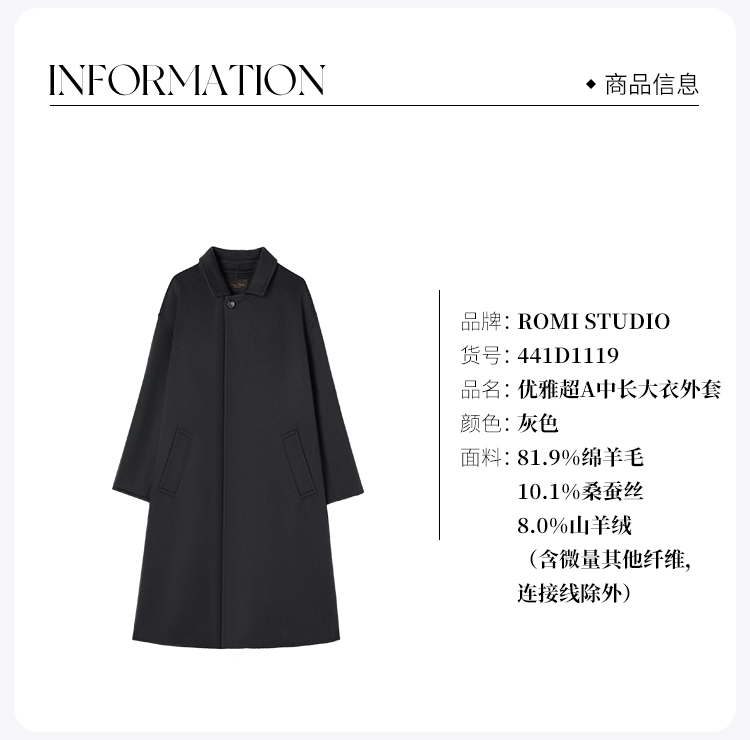 ROMI STUDIO“棕标甄选”山羊 绒绵羊毛桑蚕丝混纺廓形大衣441D1119