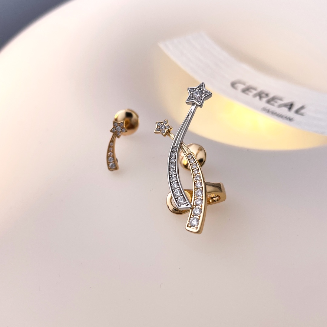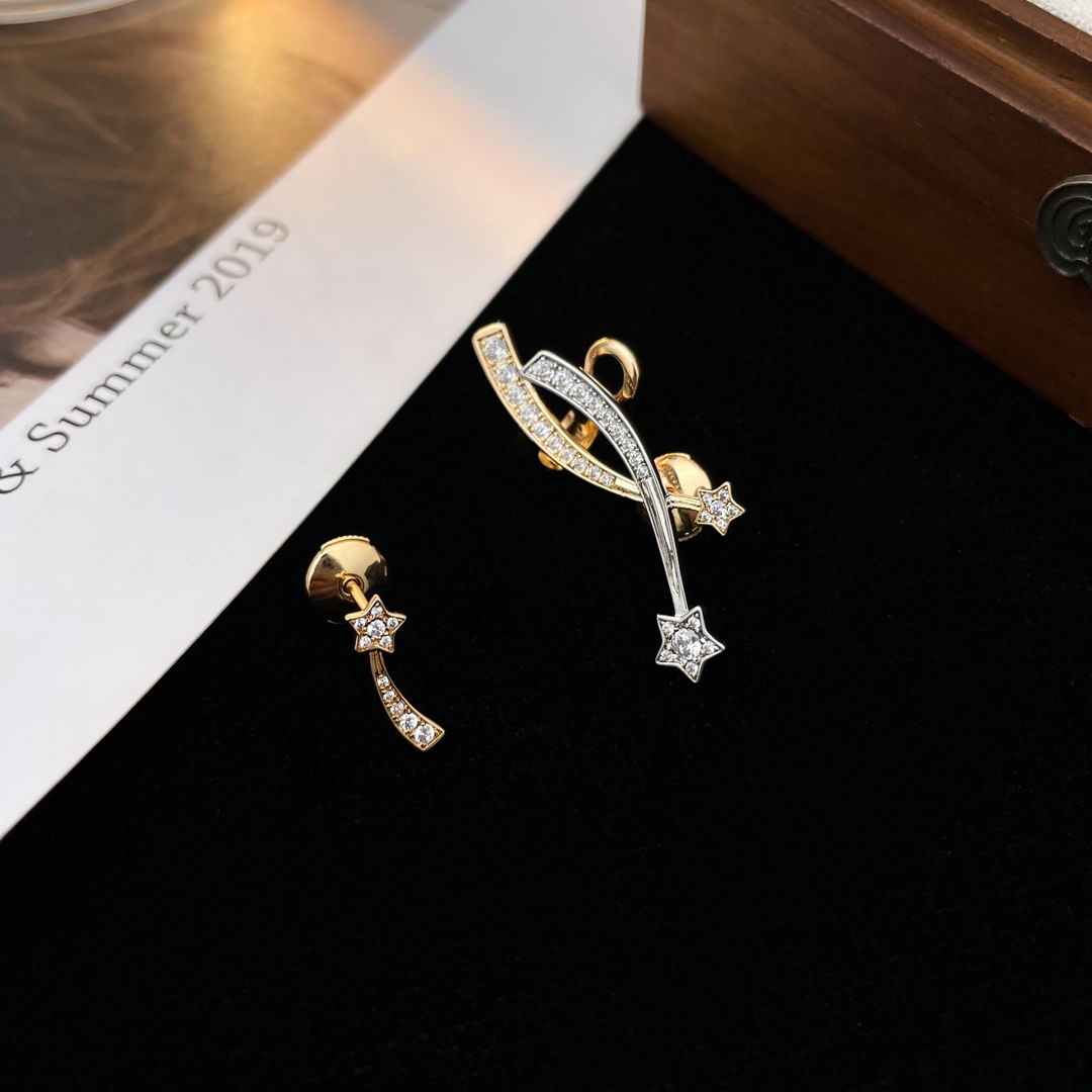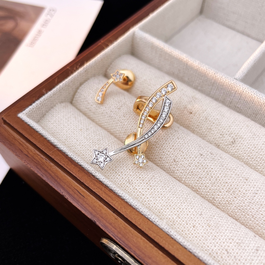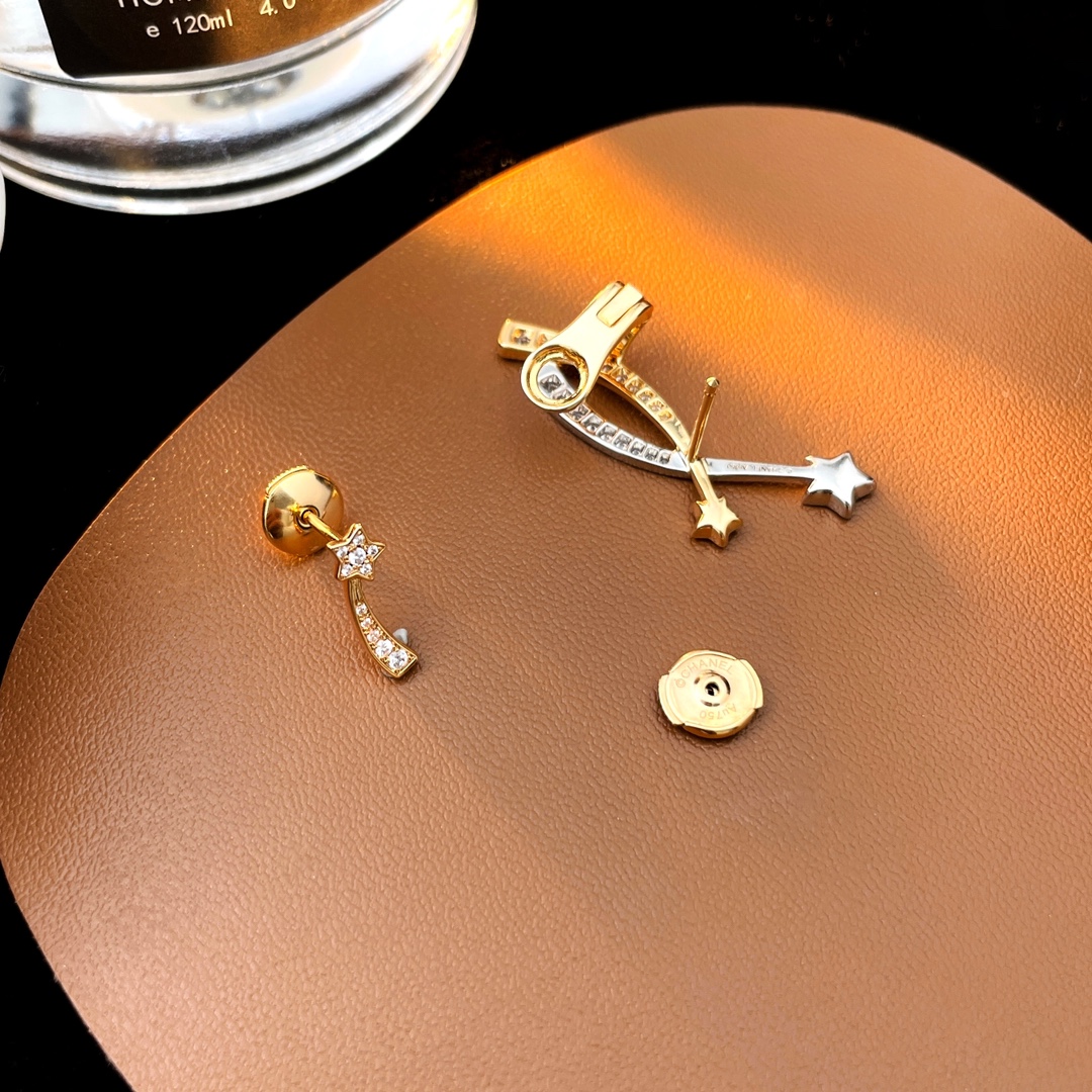 两颗不同颜色的五角星各自带出璀璨的光芒,金色与白金完美结合,寓意抓住机遇,把握机遇。上身优雅有女人味~ Zp定制,采用双色电镀方式,背面镂空,钻石更大程度绽放光芒,纯手镶,不掉石,更璀璨~