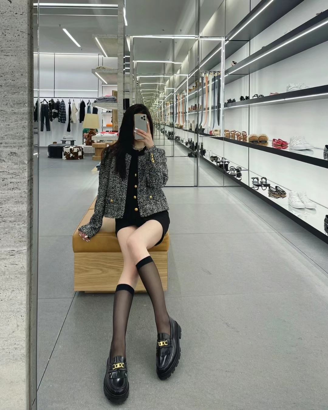 极简主义风格~黑金配色既复古又高级~简约又大气~非常耐看的款式~高级百搭之王~脚感很好很舒服~看起来平平无奇,上脚又瘦又帅~时尚又干练~搭配长筒袜、裙装、裤装、都非常百搭…
