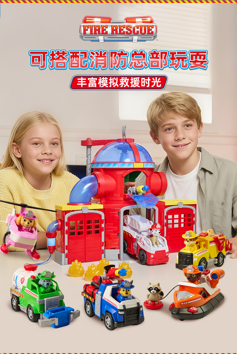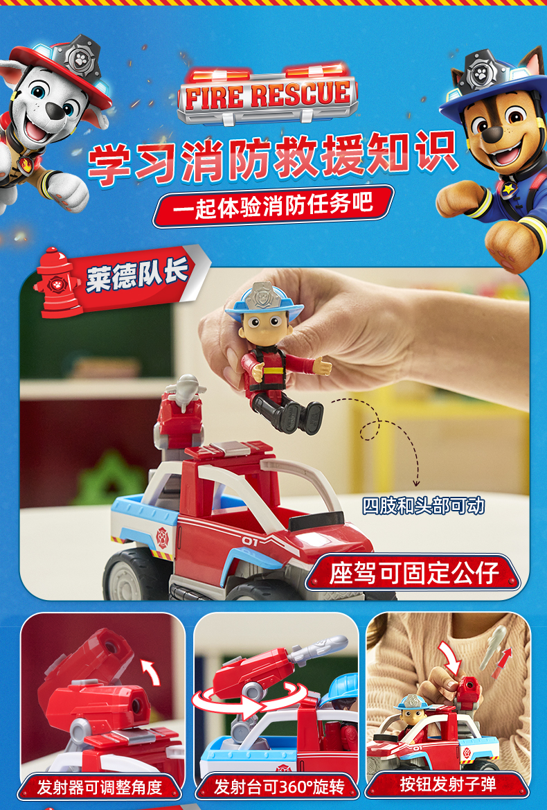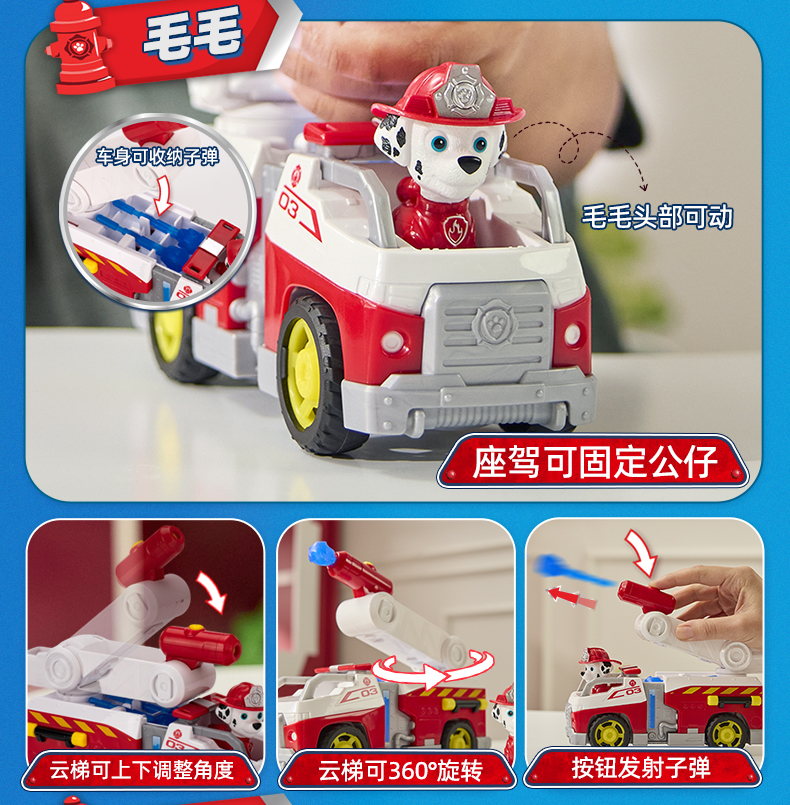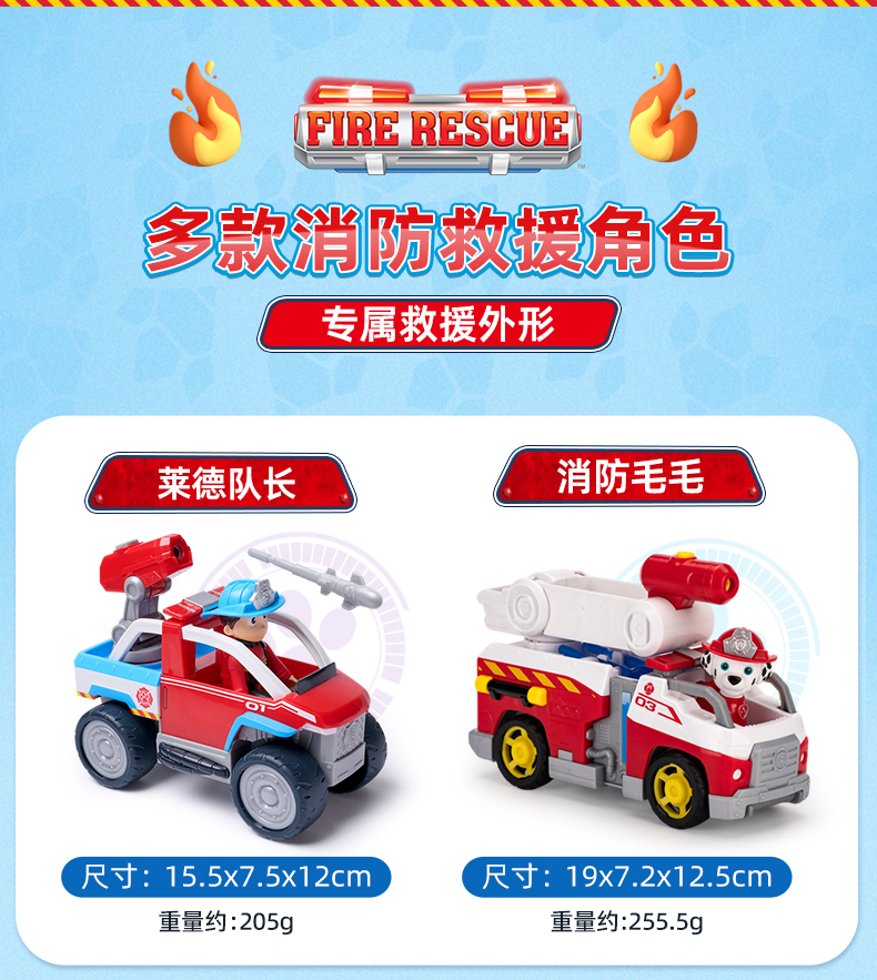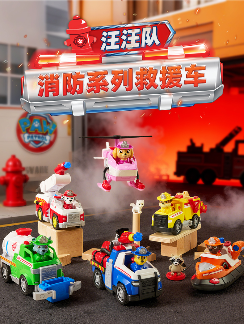 正版汪汪队立大功消防系列救援车毛毛莱德阿奇弹射套装儿童玩具