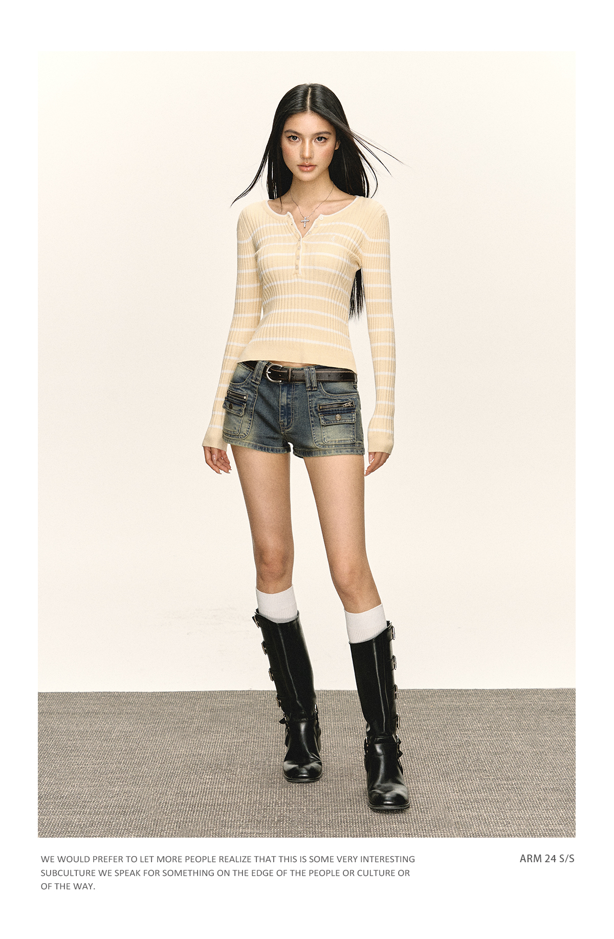 Ariseism美式复古多口袋牛仔短裤女2025夏季新款紧身显瘦辣妹热裤
