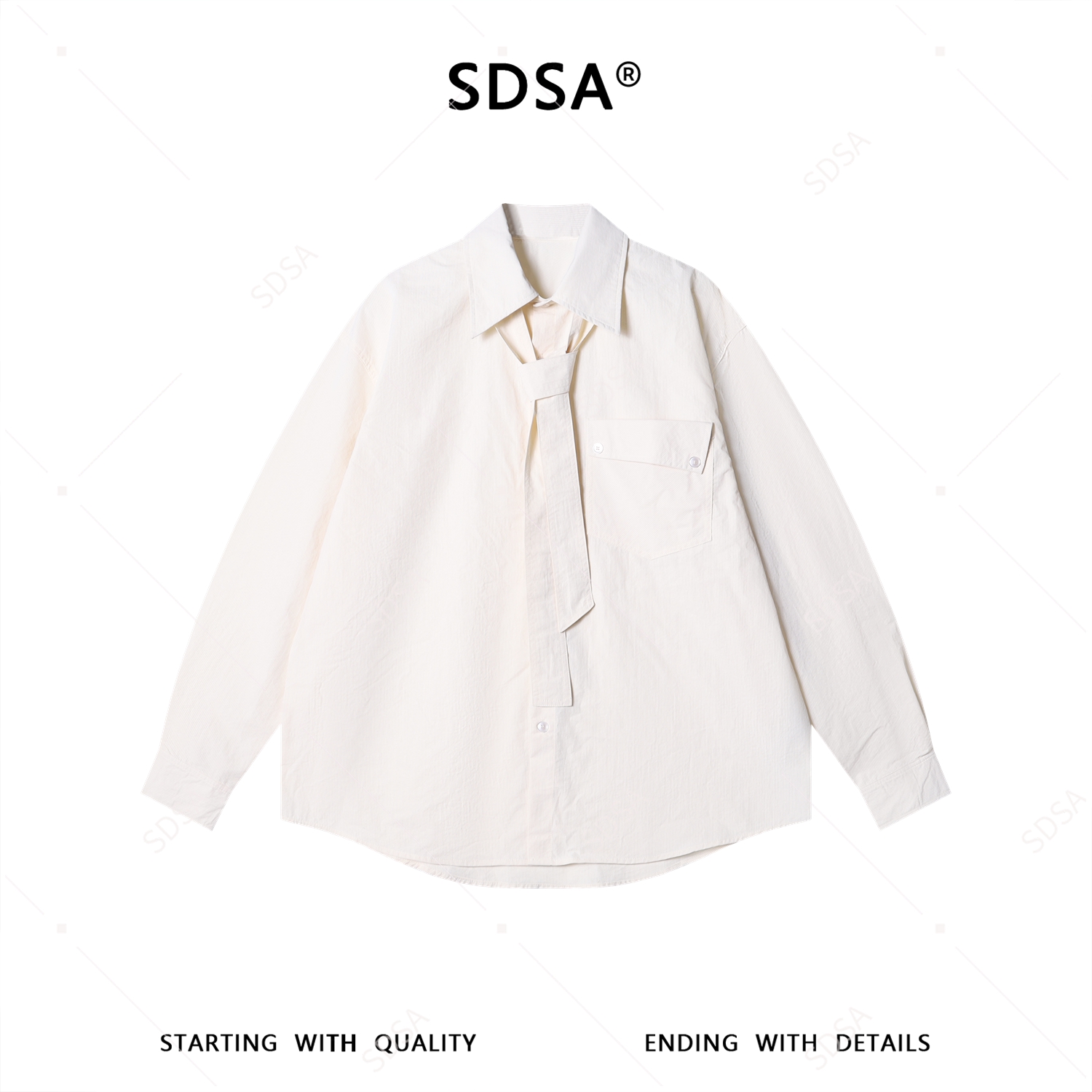 SDSA男装2026新款高贵轻奢韩系简约纯色竖纹领带长袖衬衫百搭宽松