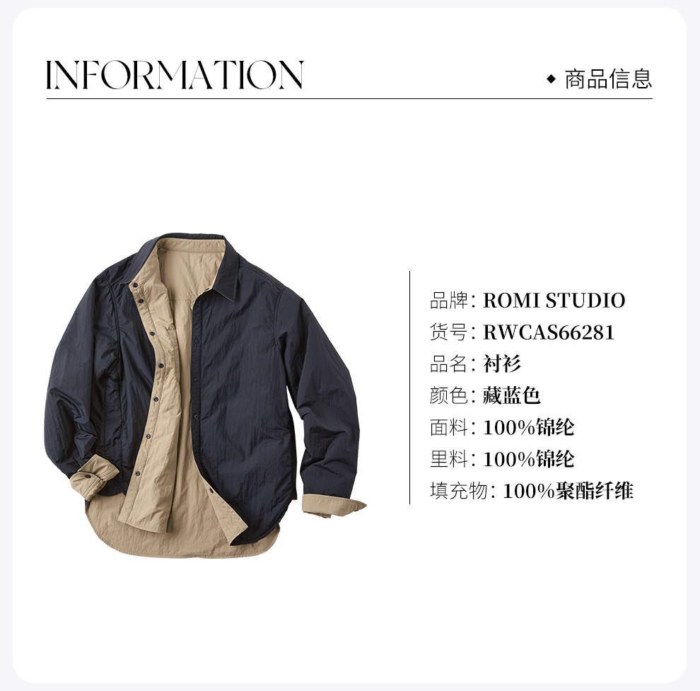 ROMI STUDIO“率性自我”轻量感双面撞色锦纶衬衫式外套RWCAS66281