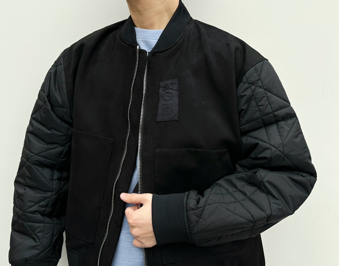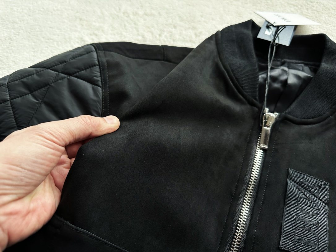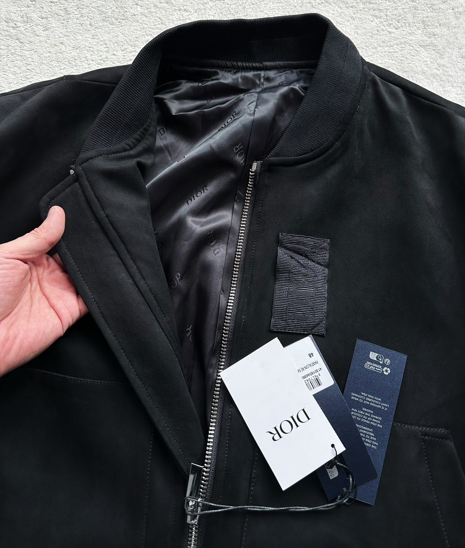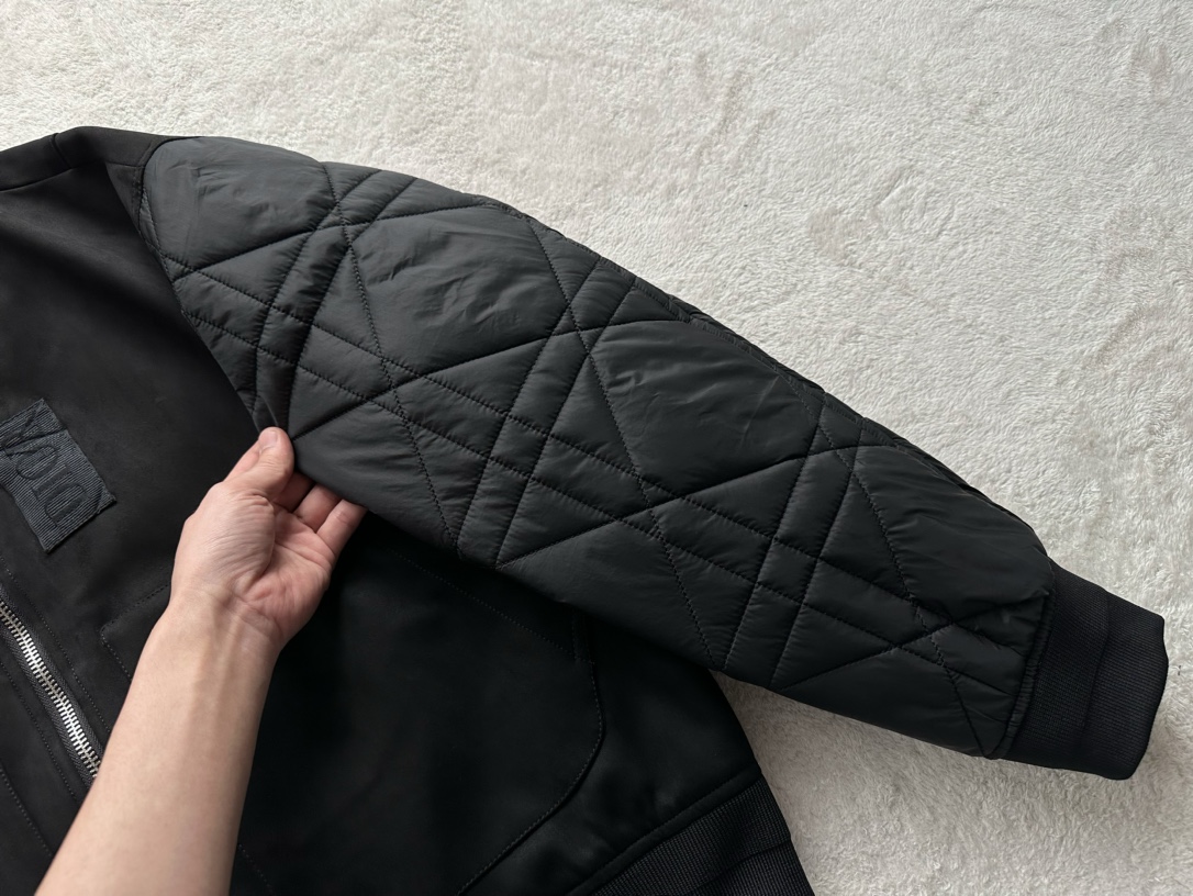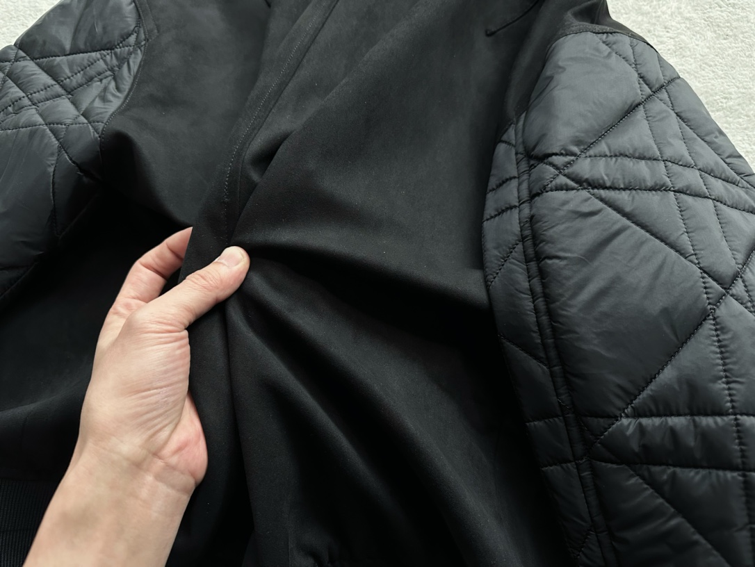 D家 早春新款 黑色麂皮 标志性藤格纹袖 拉链款短夹克外套