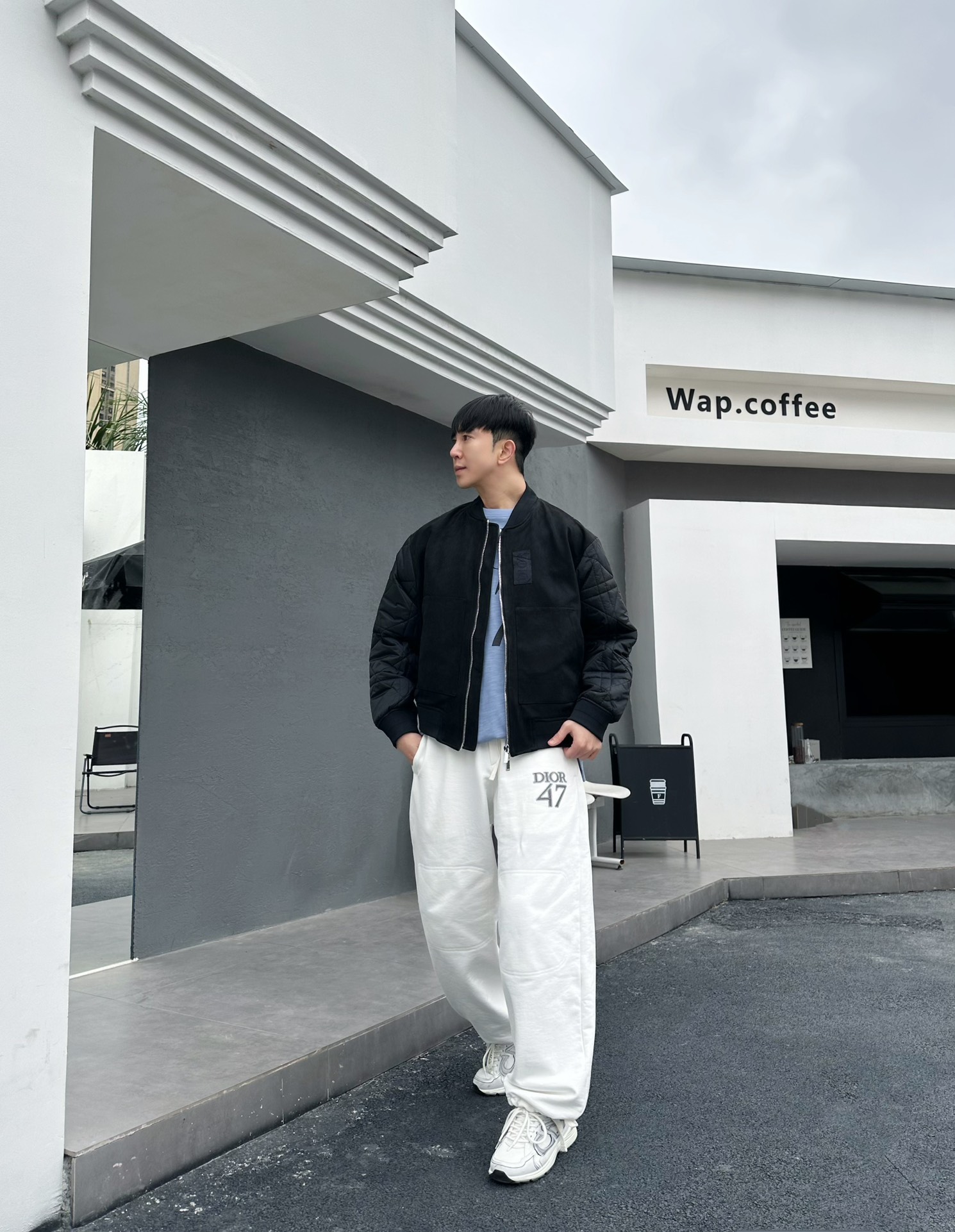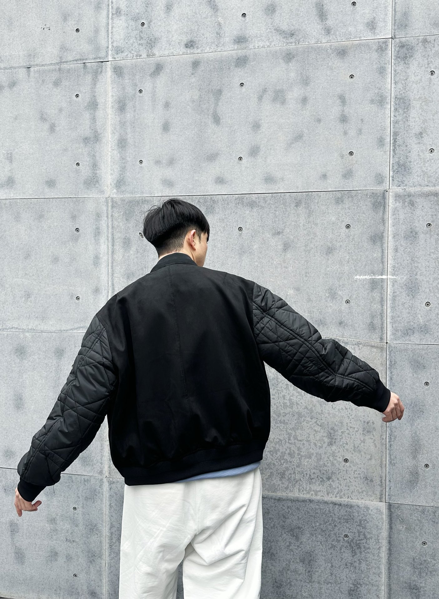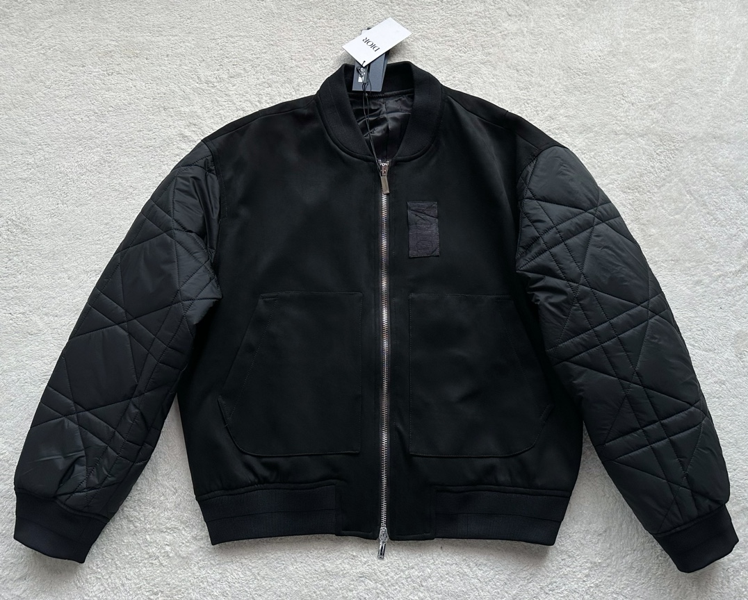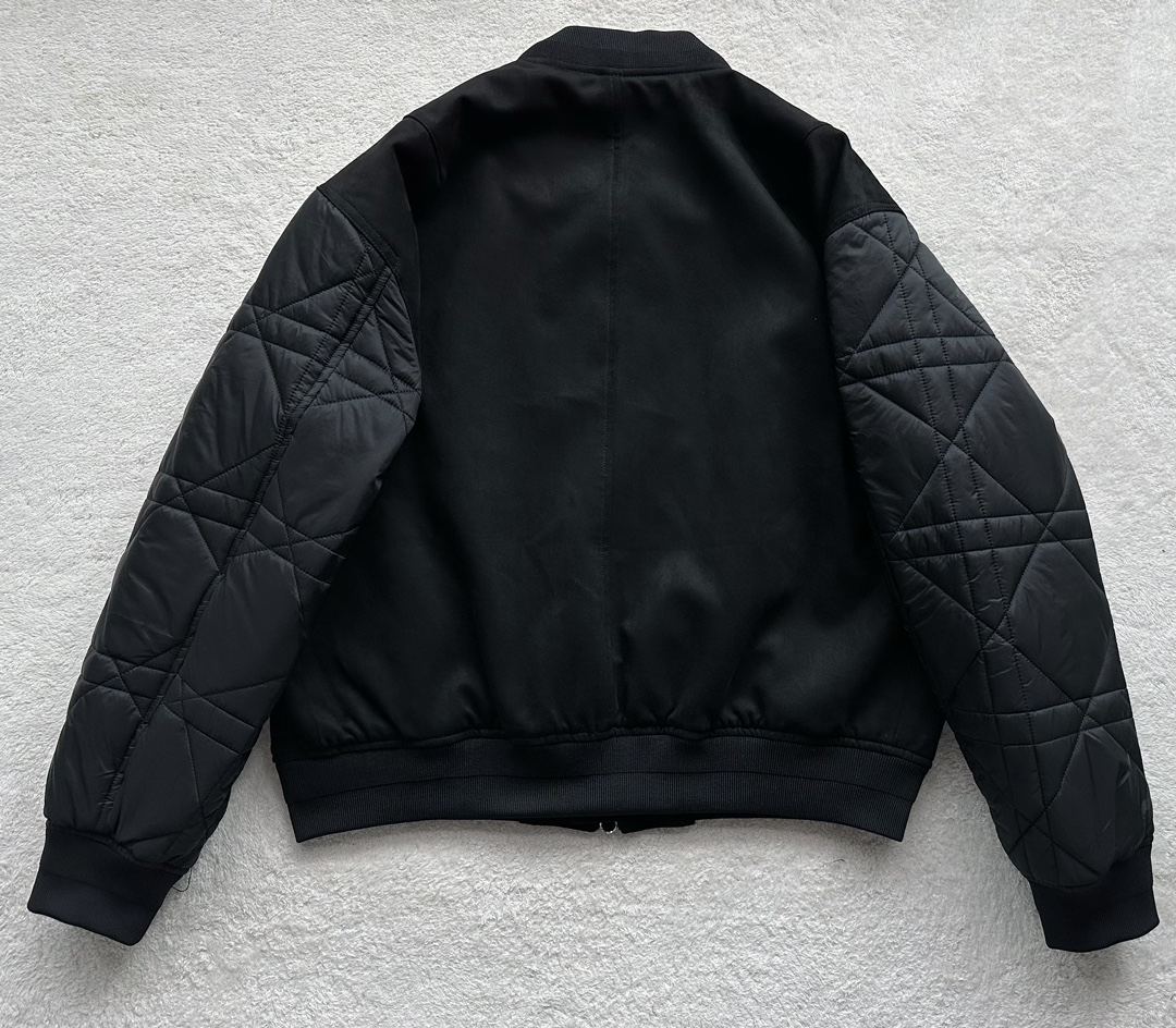 D家 早春新款 黑色麂皮 标志性藤格纹袖 拉链款短夹克外套