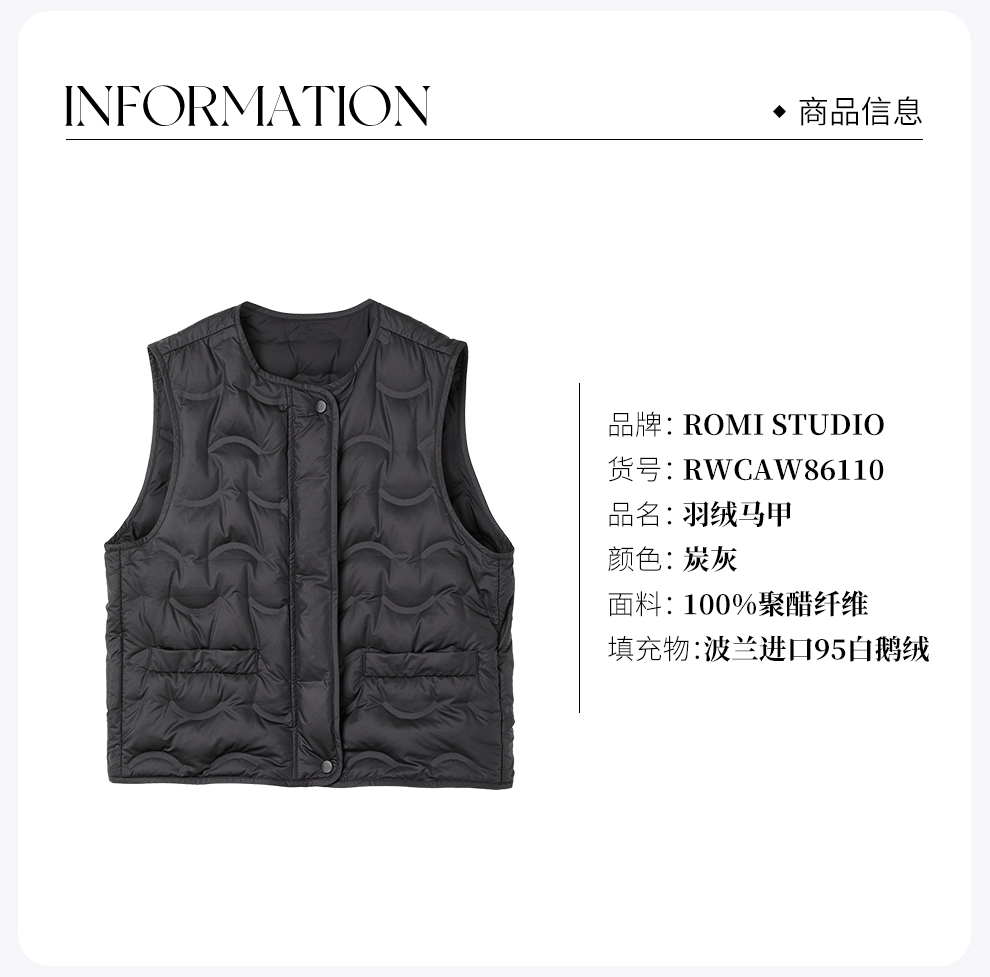 ROMI STUDIO“轻盈锁温”波兰95白鹅绒轻薄保暖羽绒马甲RWCAW86110