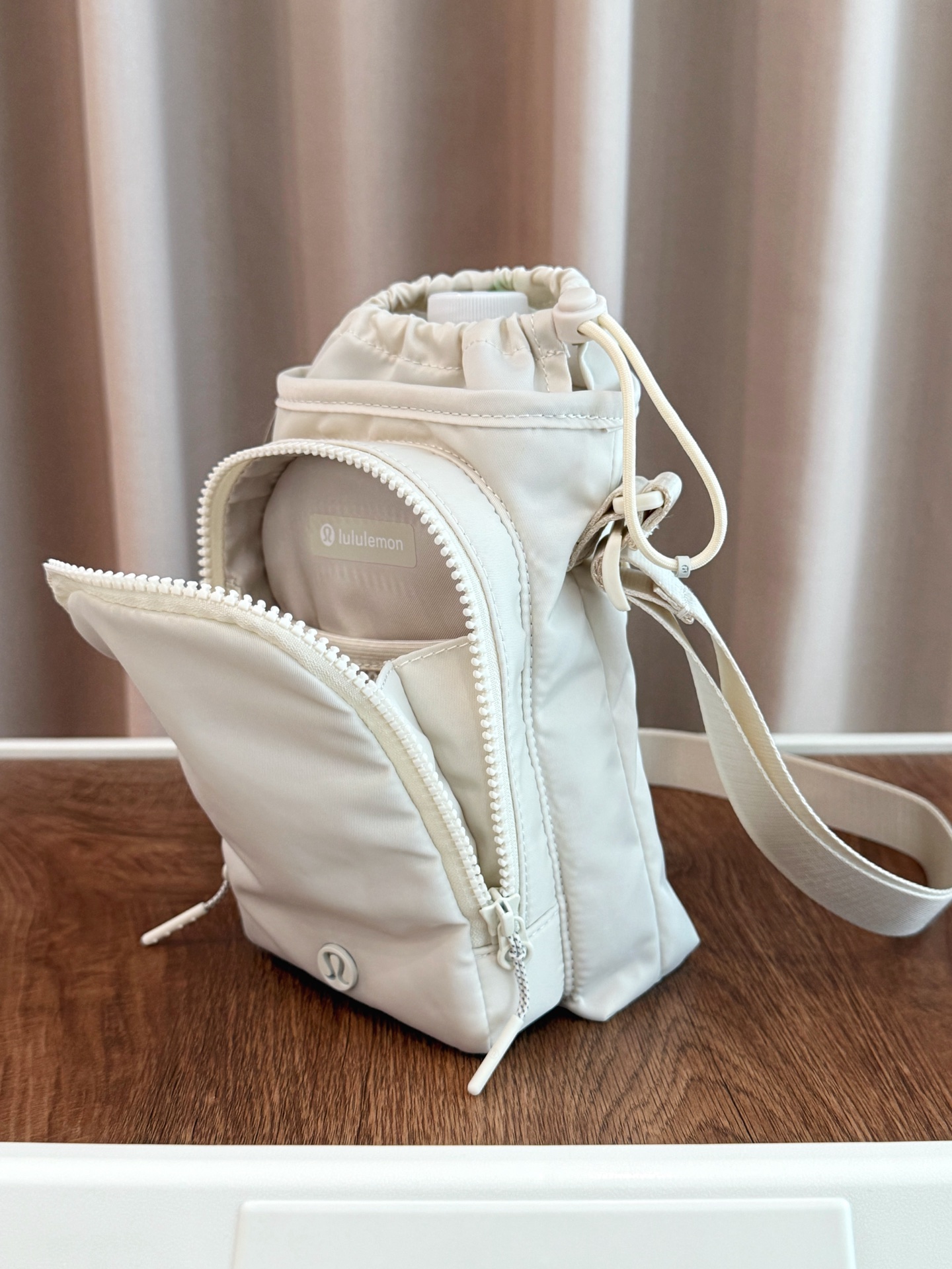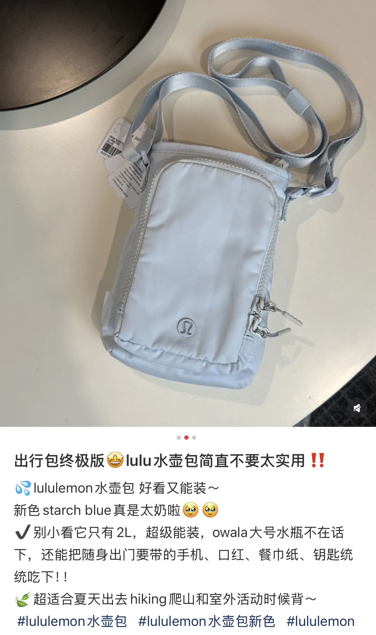 𝐥𝐮家爆款𝐖𝐚𝐭𝐞𝐫 𝐁𝐨𝐭𝐭𝐥𝐞口袋斜挎水壶包 据水轻量科技面料⚠️前侧拉链口袋可存放手机、钥匙和卡片 开口抽绳设计,方便取用水瓶 日常通勤/健身/⁢旅行/户外 轻便能装实用度满分,夏日出行必备神器💦关键巨洋气好看 ,仅此一批!⁡⁤ 背lu冲的就是它的颜值和实用性 关键超级轻、超级软、超能装  男人户外都在抢着背 不多啰嗦 人手安排吧✊ 象牙白/淀粉蓝/暗夜紫/黑色 容量:2L (12cm x 6cm x 23.5cm)适用于多数水瓶