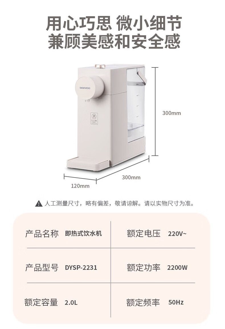 大宇(DAEWOO)即热式饮水机家用台式桌面小型即热式一体机DYSP-2231