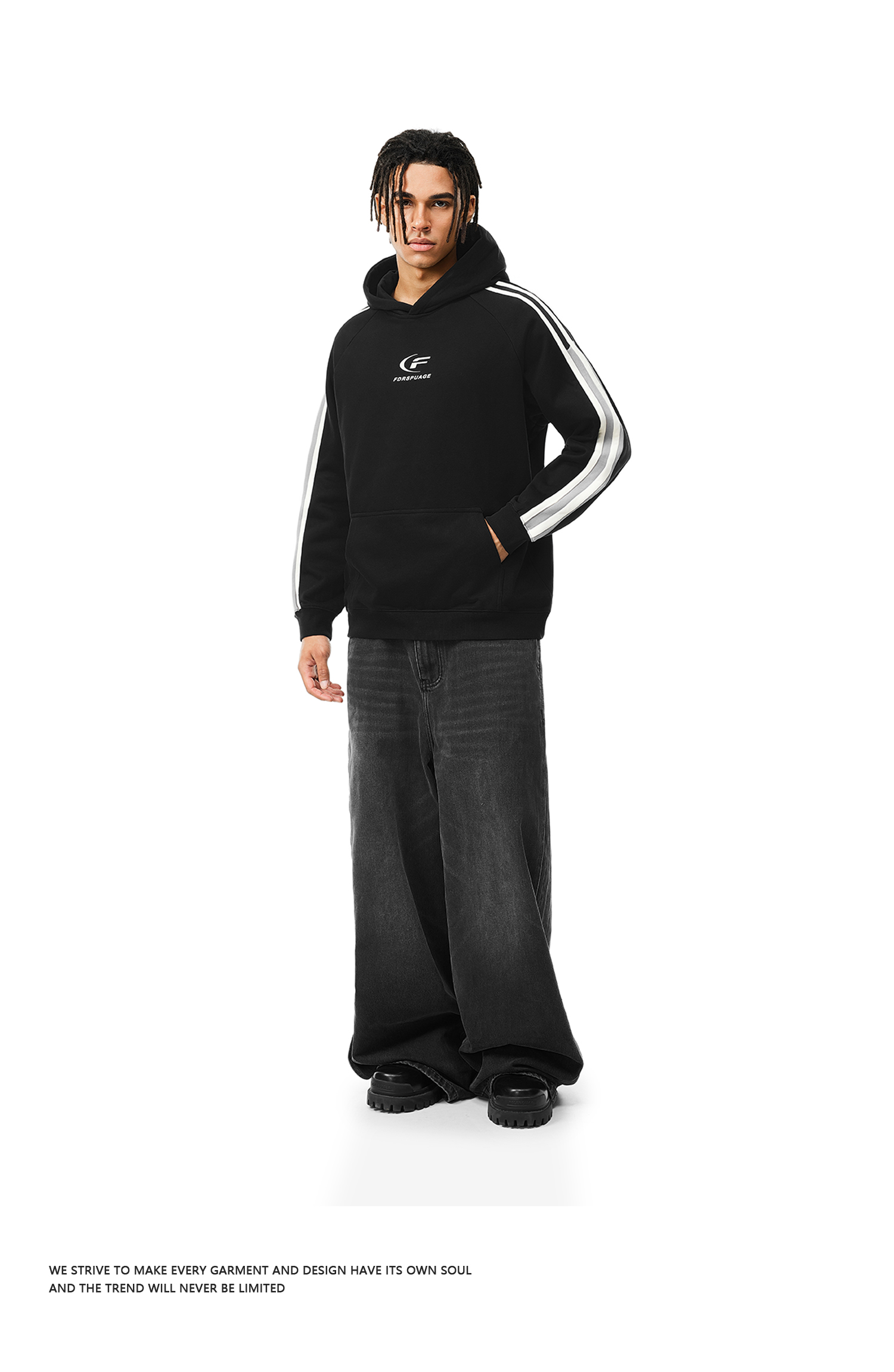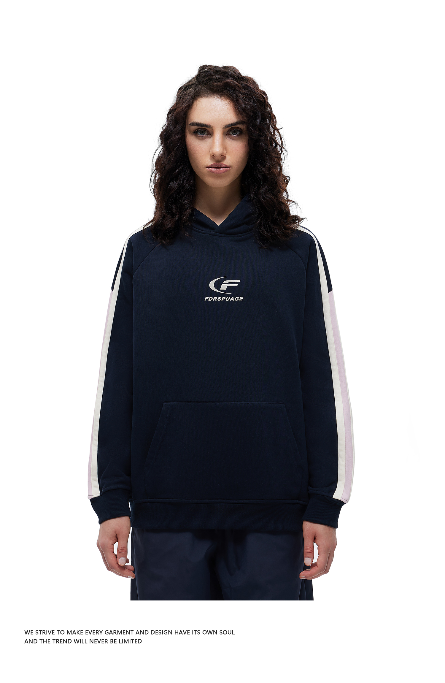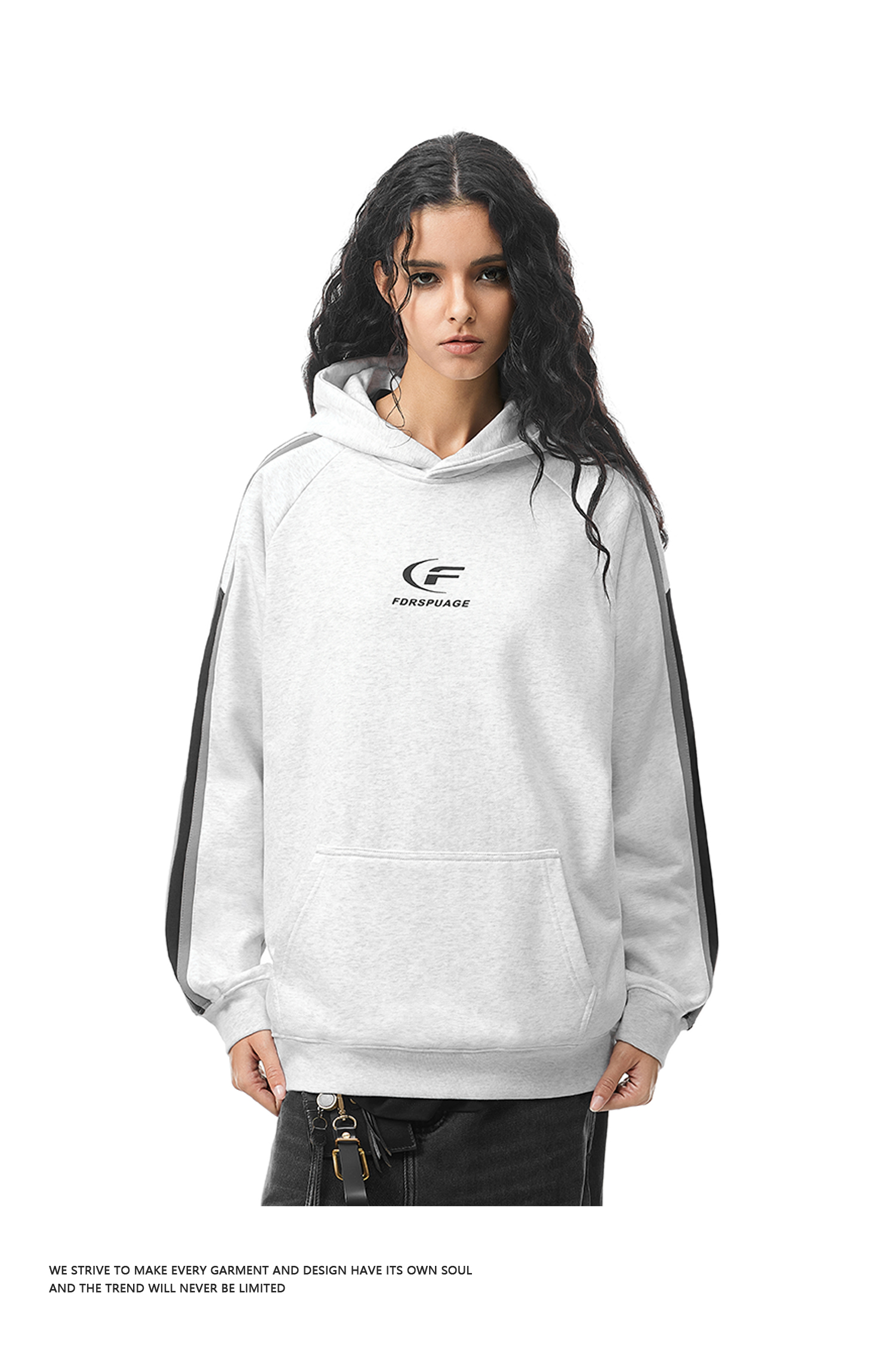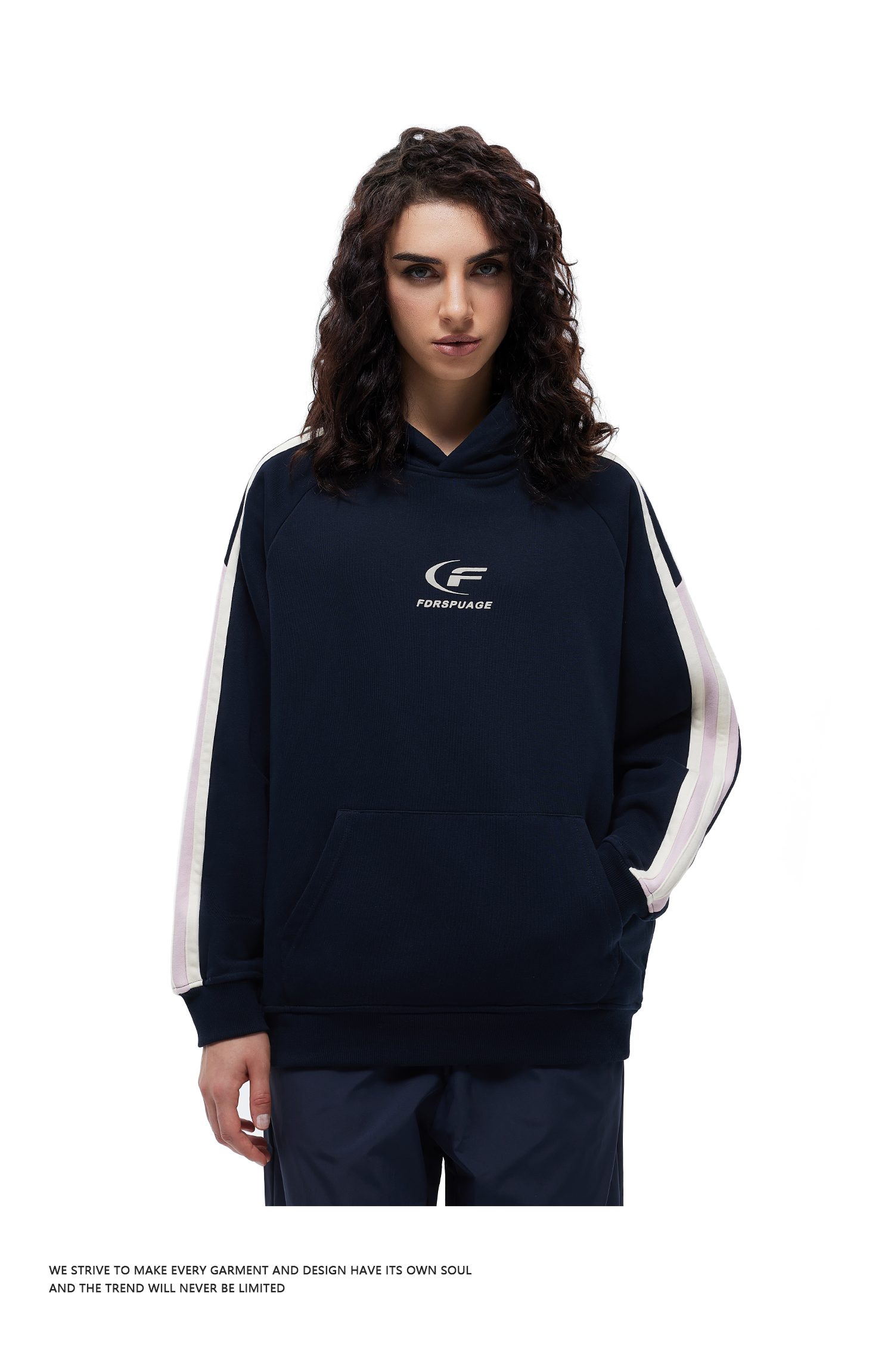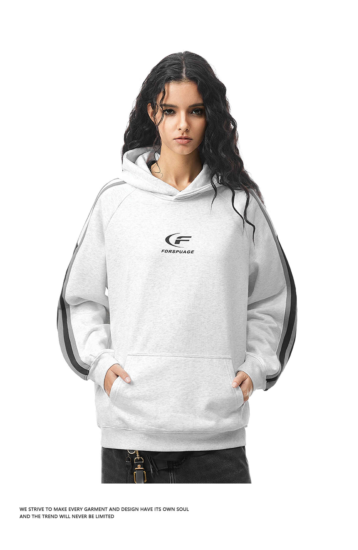 FDR官方店 月牙印花拼接织带美式连帽卫衣男女秋季重磅情侣装上衣