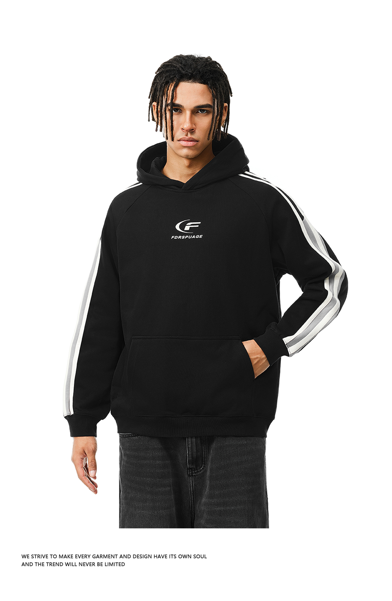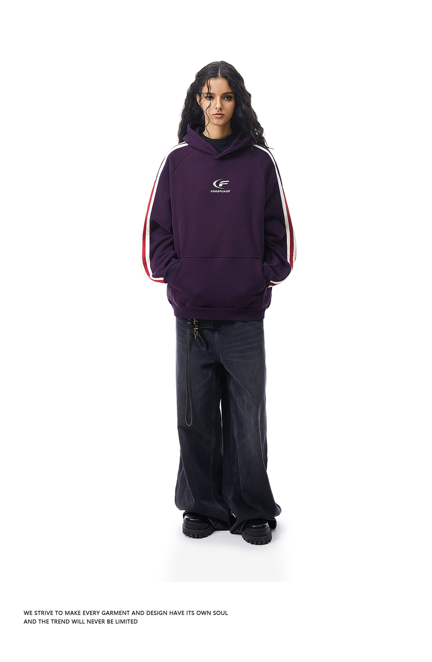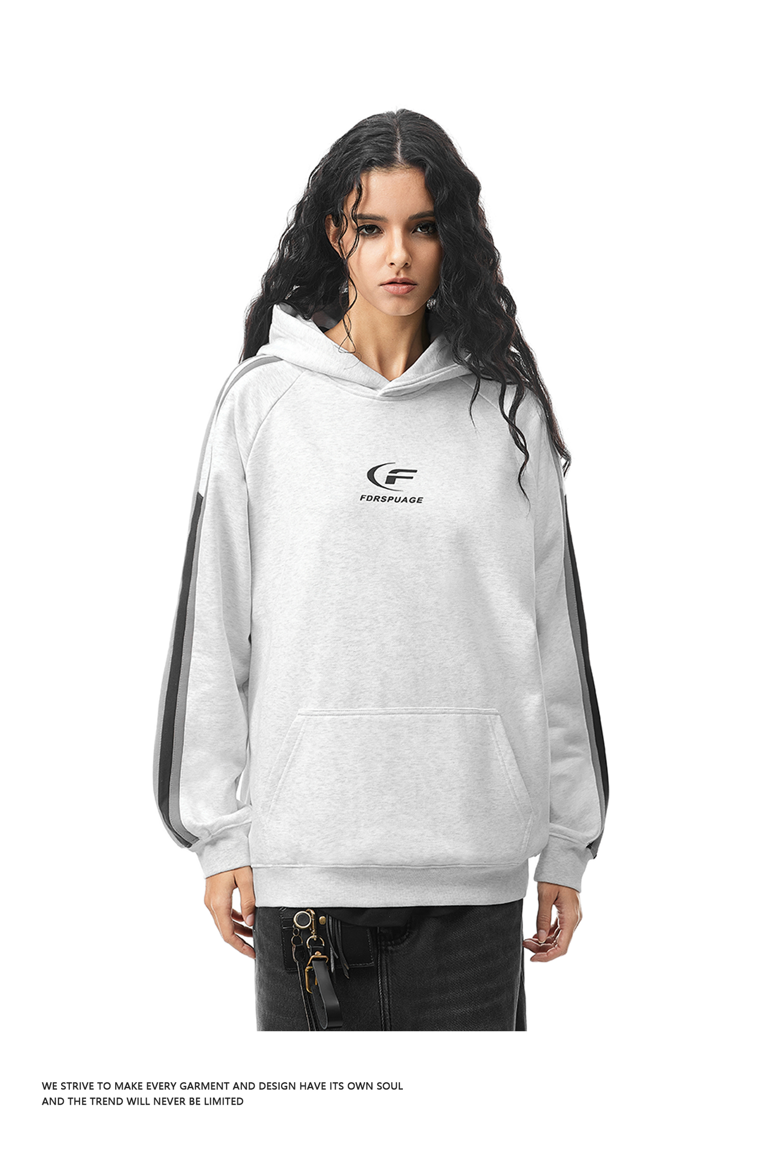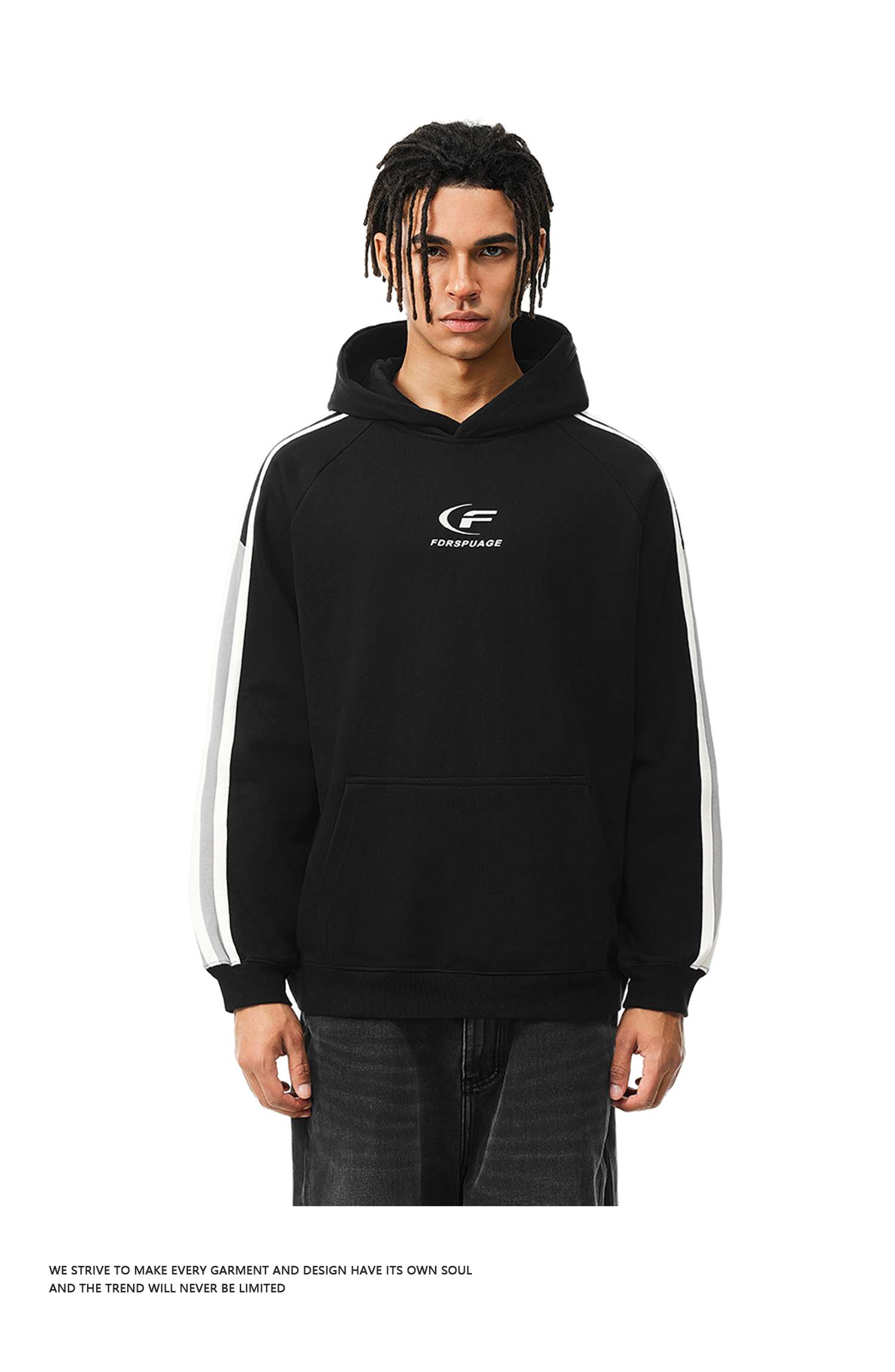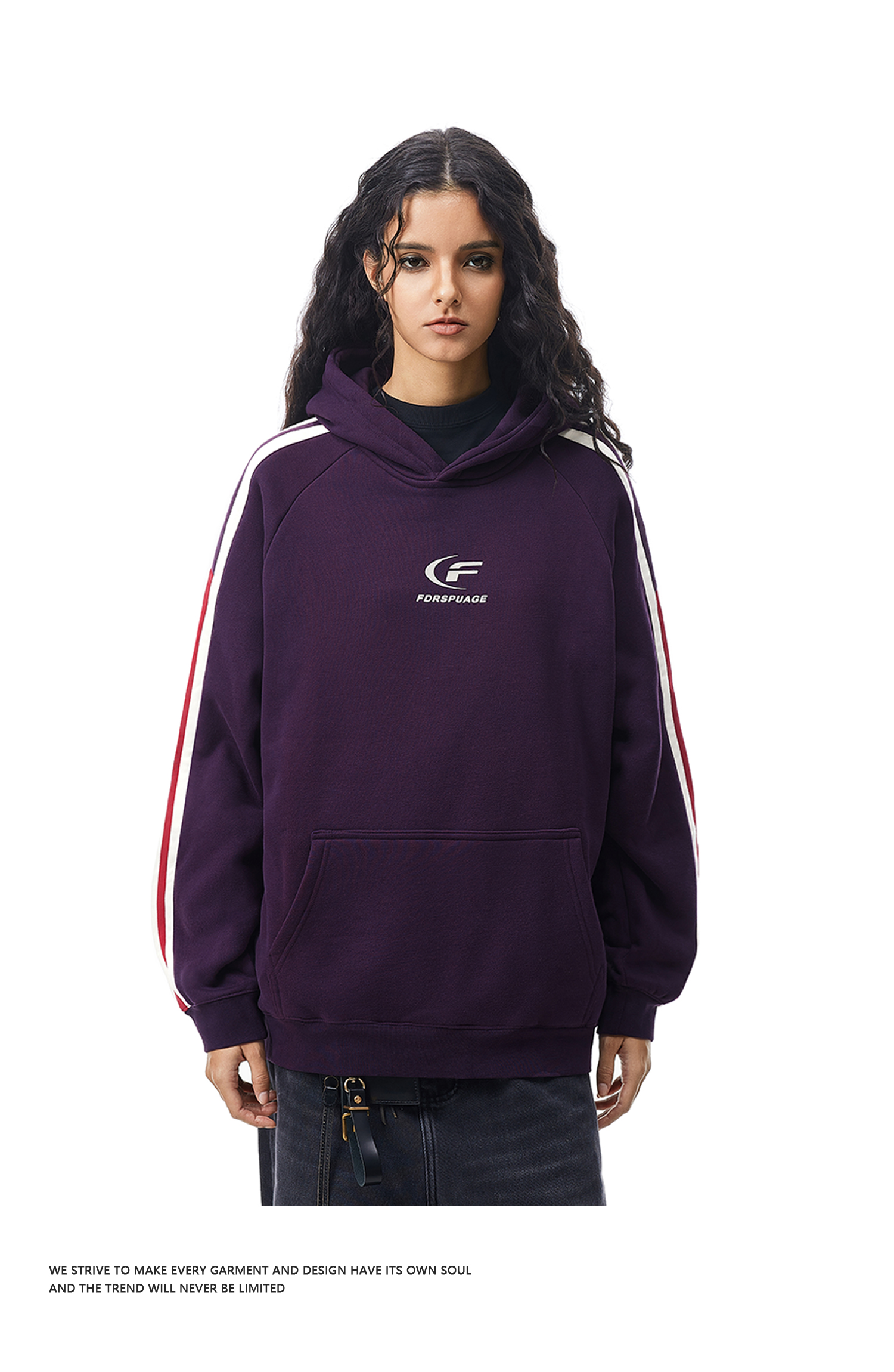 FDR官方店 月牙印花拼接织带美式连帽卫衣男女秋季重磅情侣装上衣