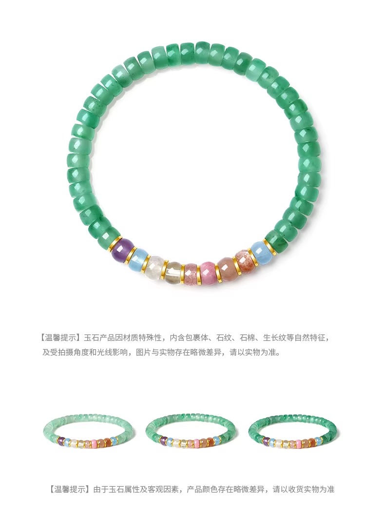 【普陀山】霓虹翠正品 非洲翠多宝直切药片珠手串手链银水晶生日礼物