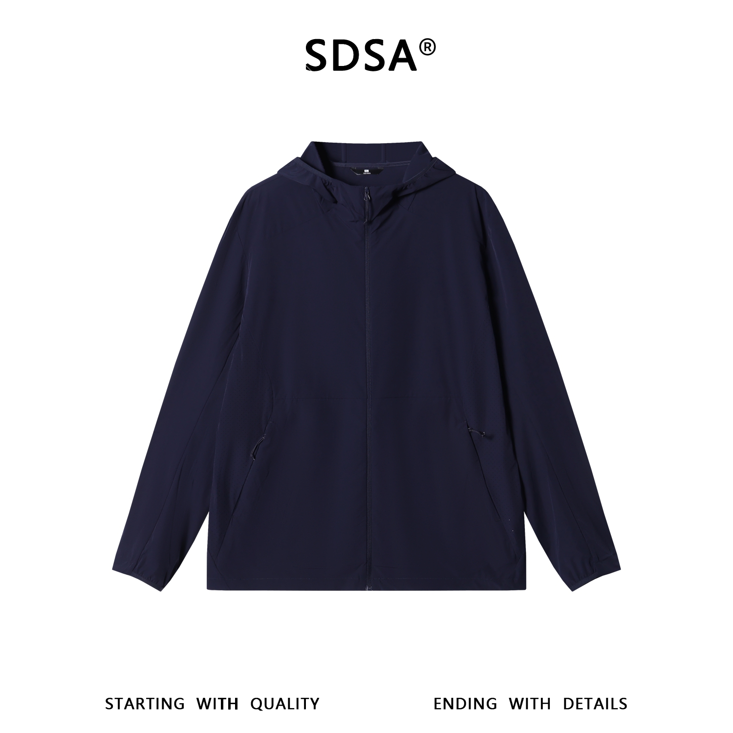 SDSA男装2026新款高贵轻奢简约纯色拉链立领连帽夹克弹力风壳衣