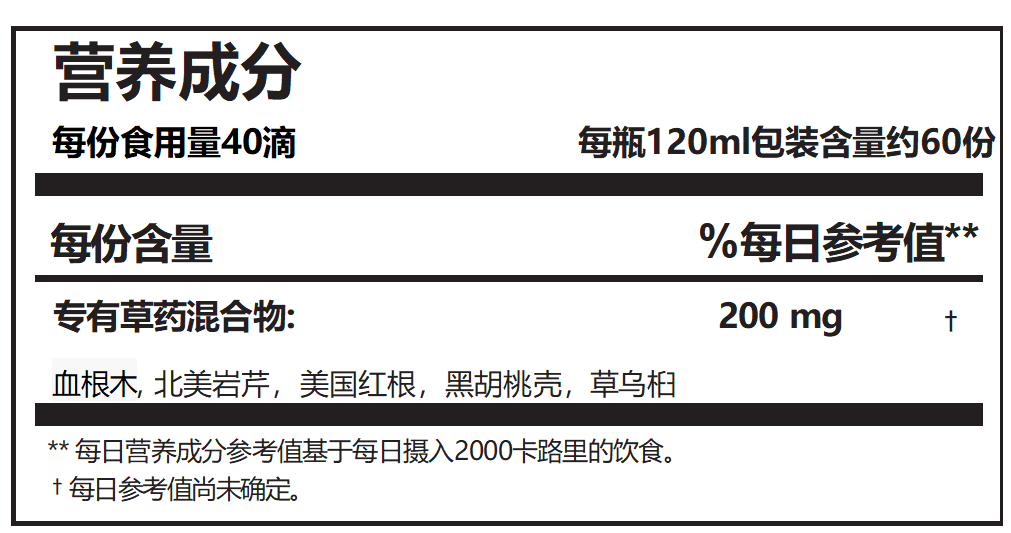 成人起始剂量,第 1-3 天,早上在 1-3 盎司水中滴 3-5 滴,晚上再次重复。第4天及以后,每隔一天增加 3-5 滴,早晚剂量。