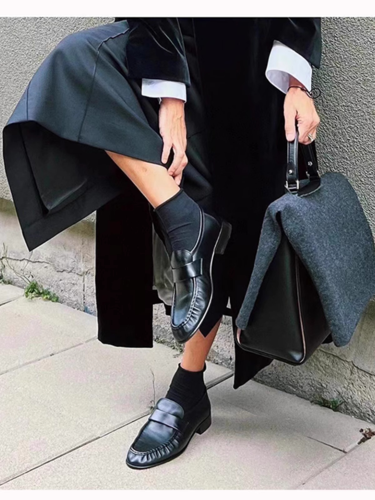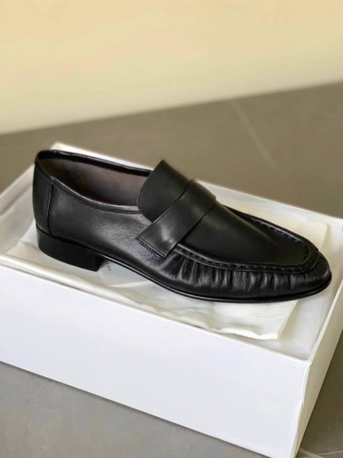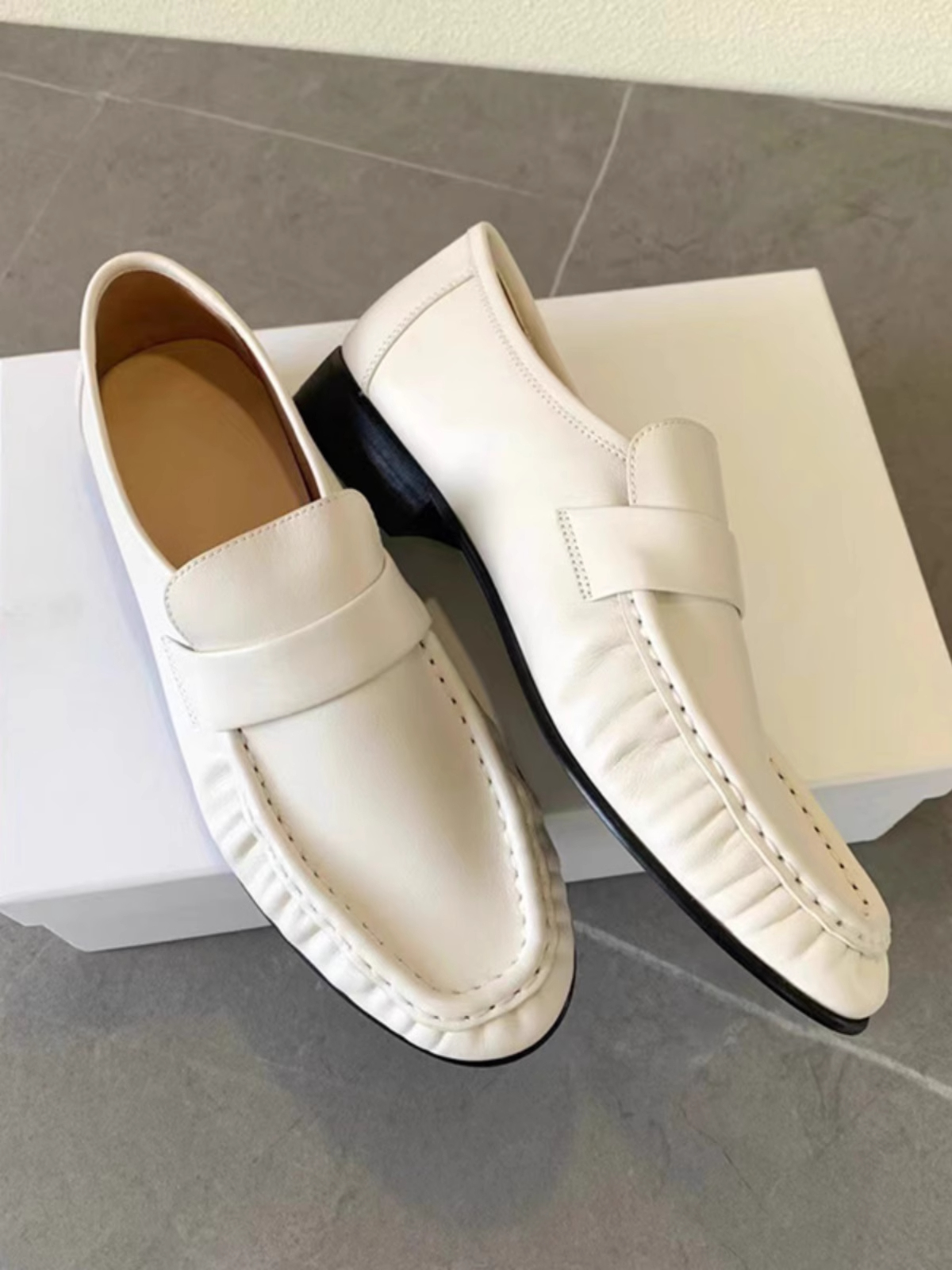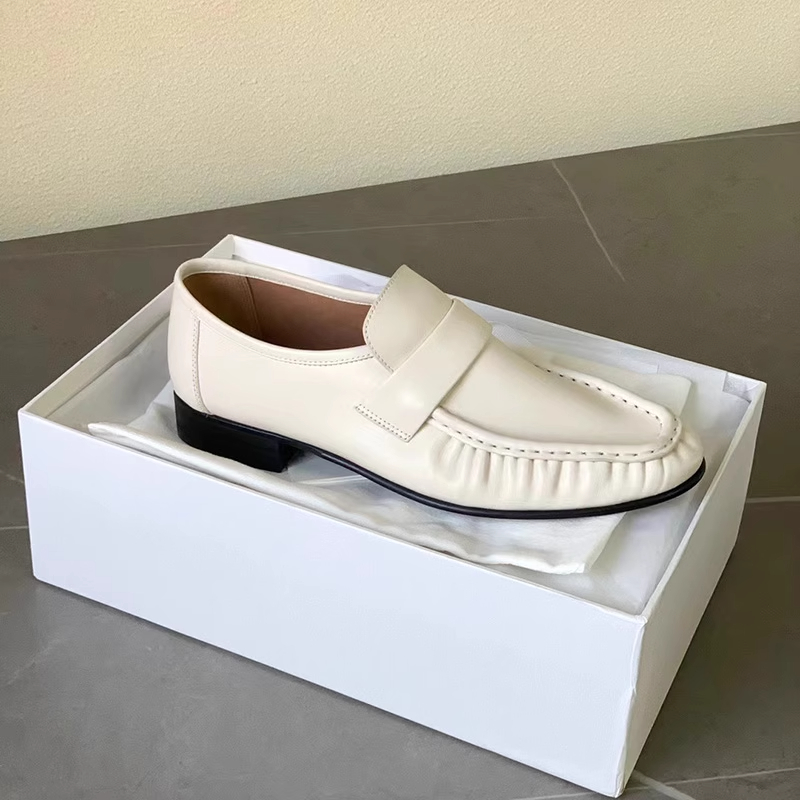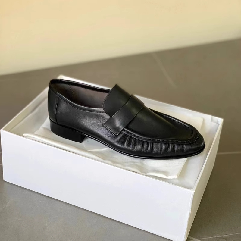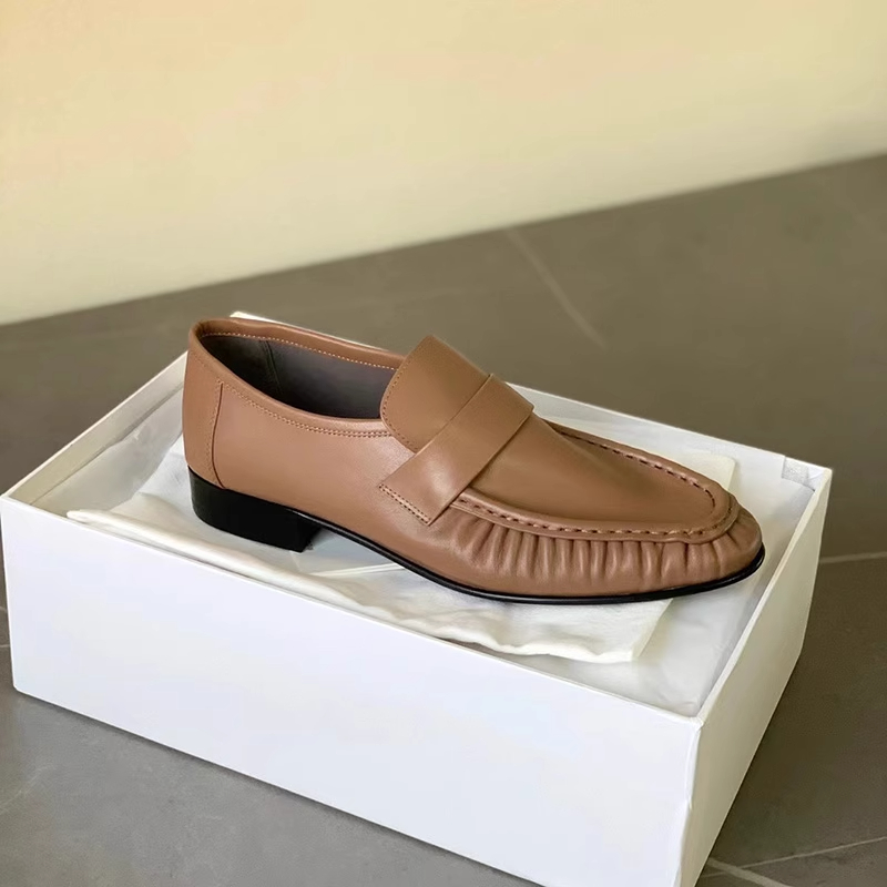 xx74-褶皱乐福鞋圆头低跟舒适柔软牛皮学院复古一脚蹬小皮鞋-(KS*MM)