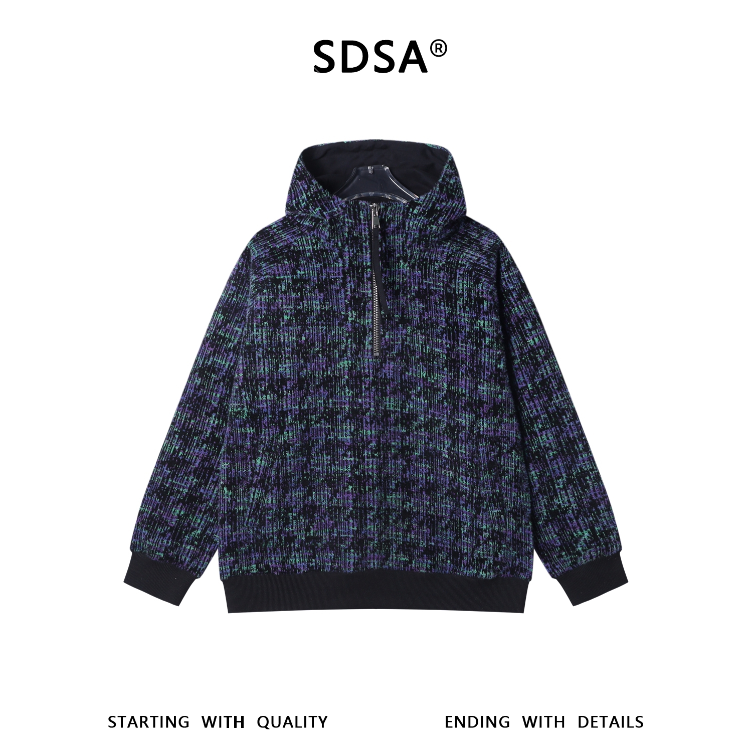 WY1521SDSA秋冬新款痞帅男装时尚绒毛撞色半拉链立领连帽卫衣百搭宽松潮