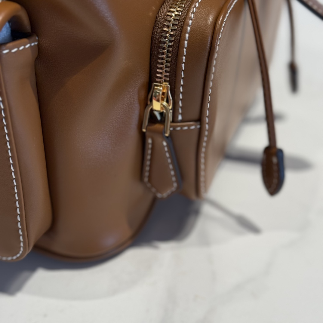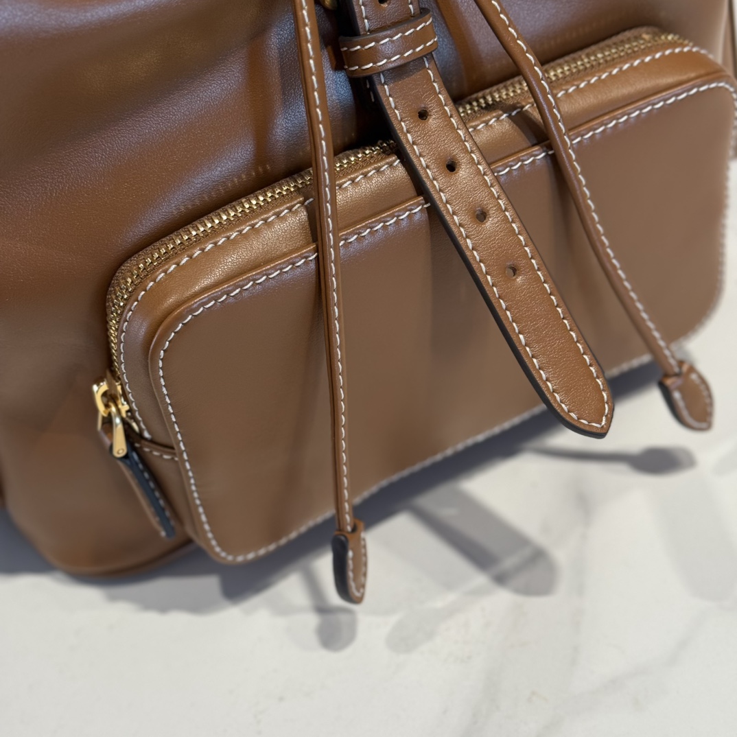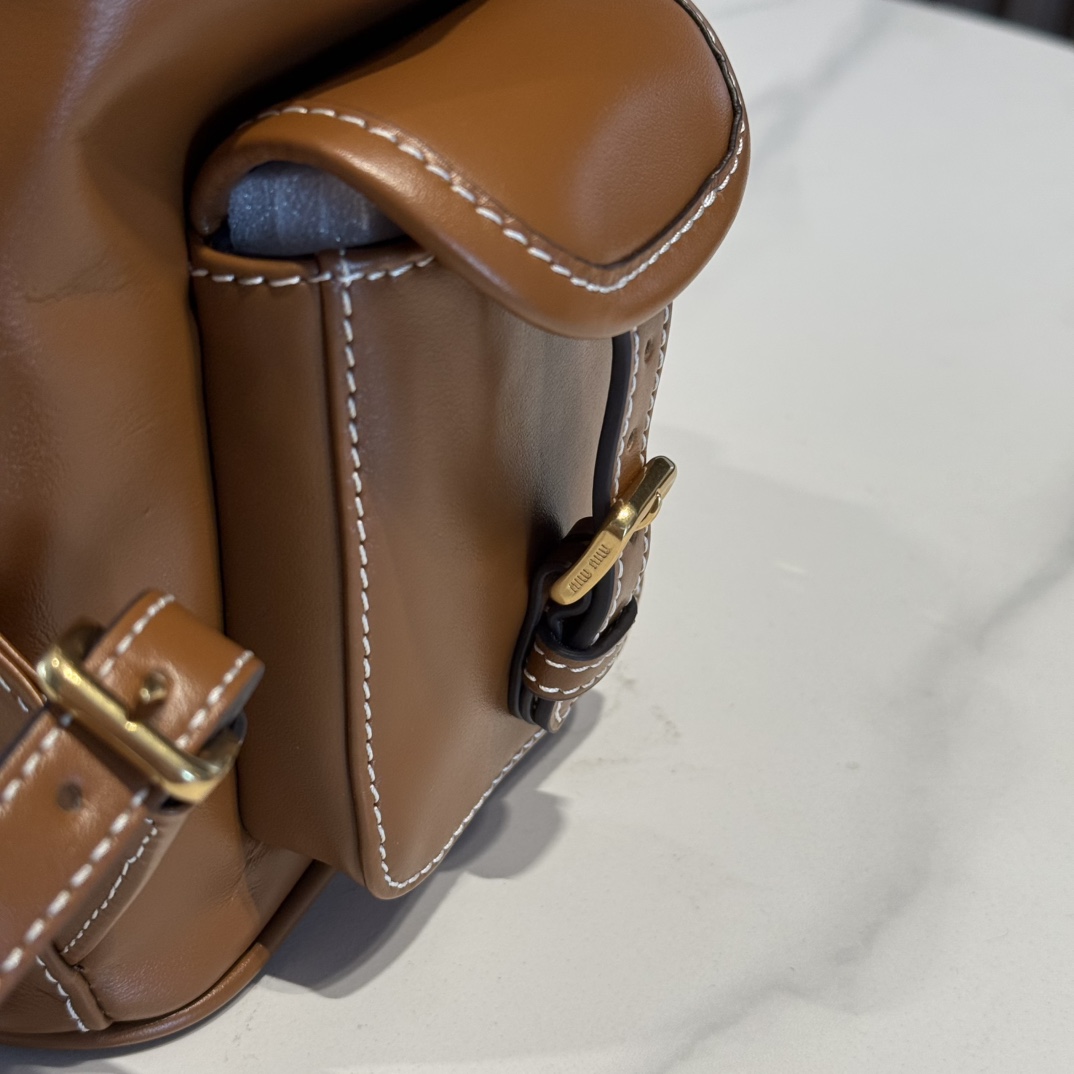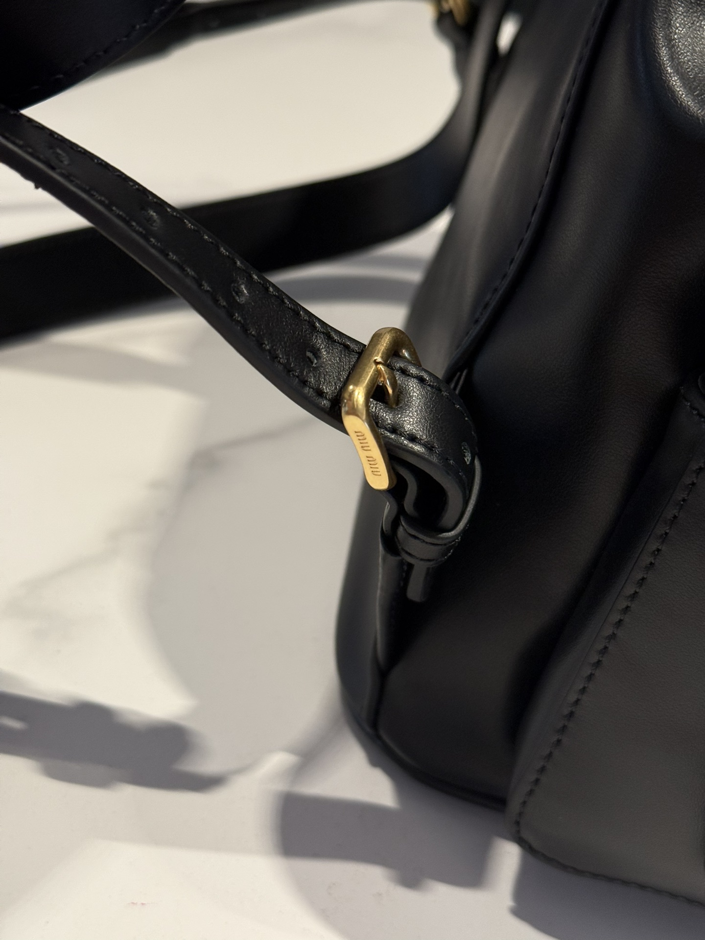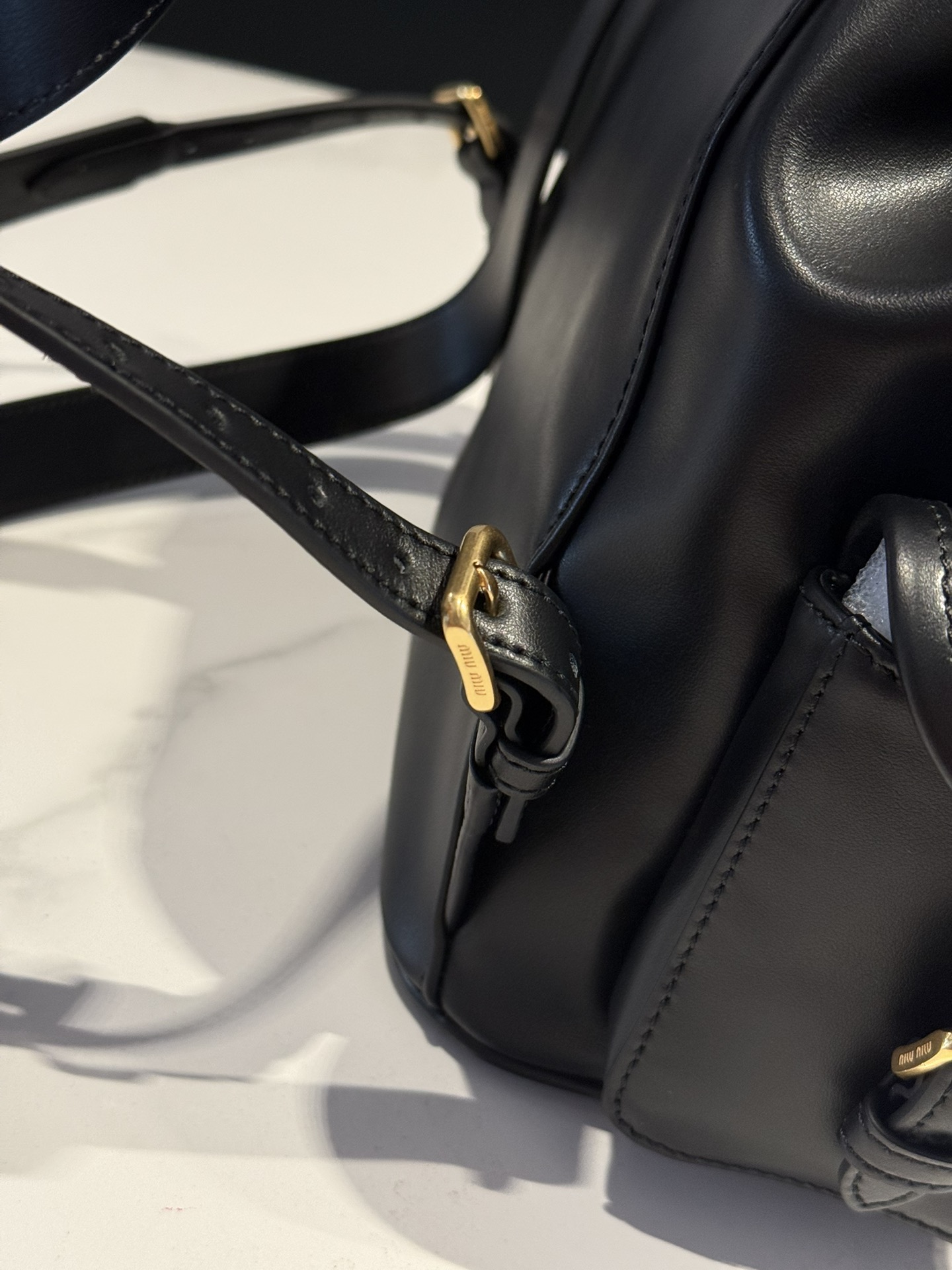 Miu Miu 25ss 春天适配度在规训与自由之间,背起一座移动城堡 可调节双肩带设计 温柔贴合颈背曲线 方正轮廓型暗藏几何锋芒,顶部抽绳一拉,随时出逃平庸日常 尺寸:25*30*12.5cm