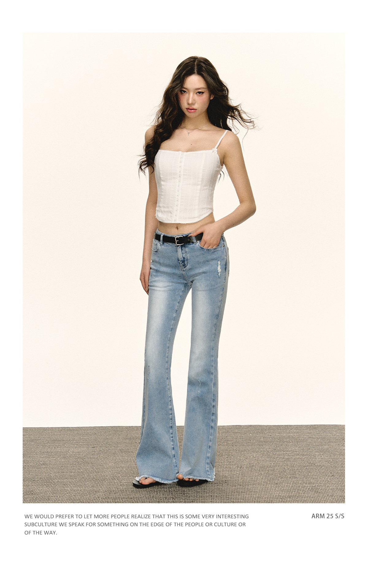 Ariseism 美式复古设计感白色全棉吊带背心女夏季新款修身上衣