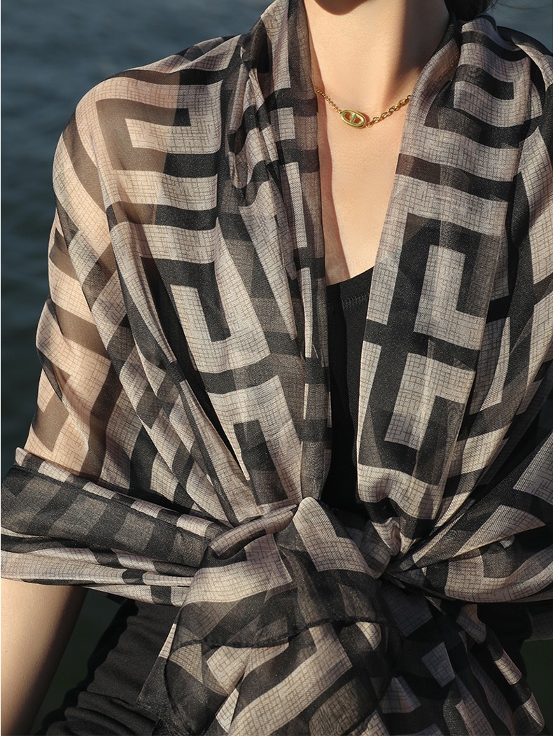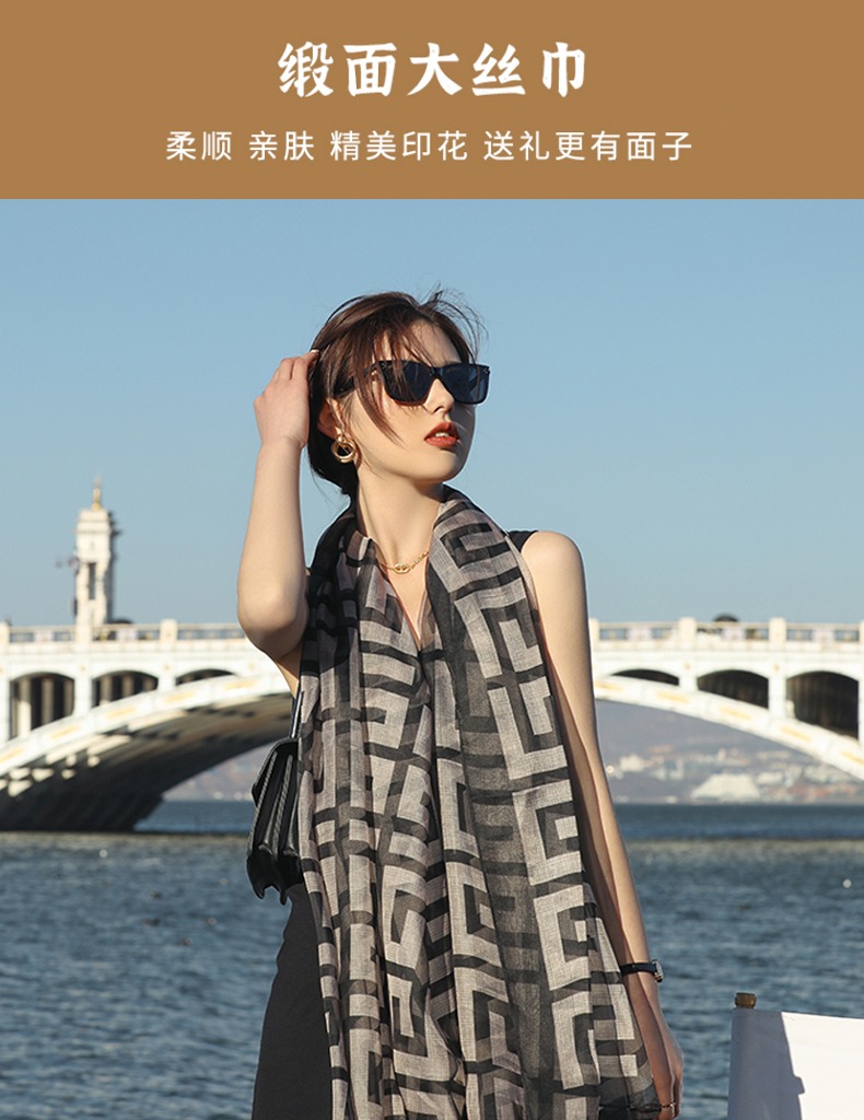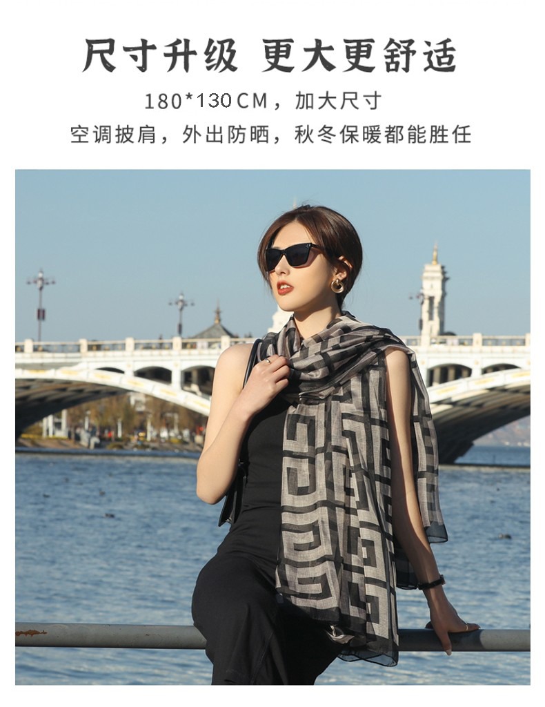 【七夕礼品】【仅赠不售】云纹纱丝巾女春秋夏季防晒空调披肩
