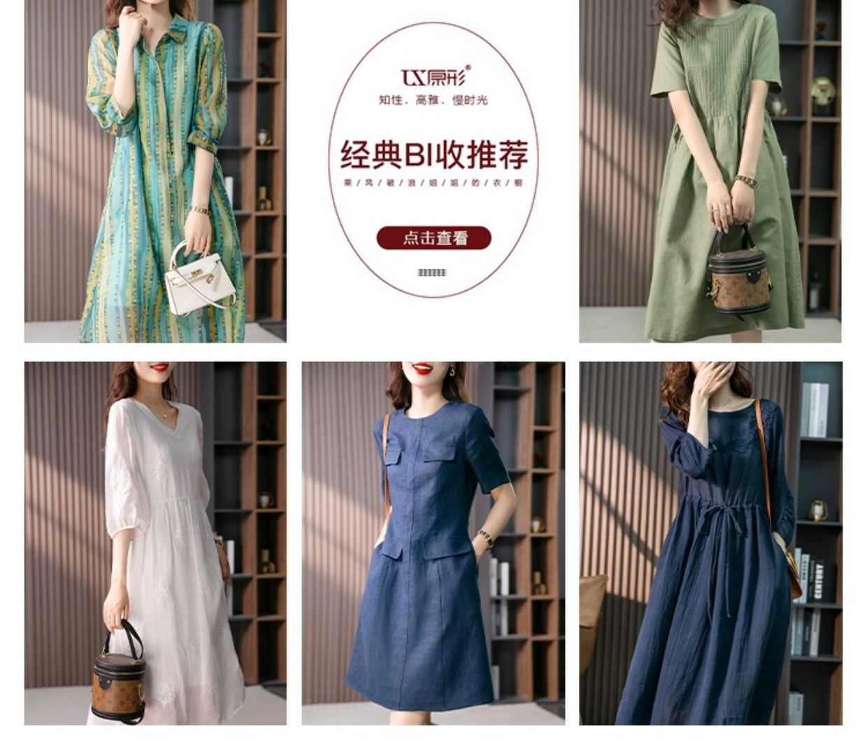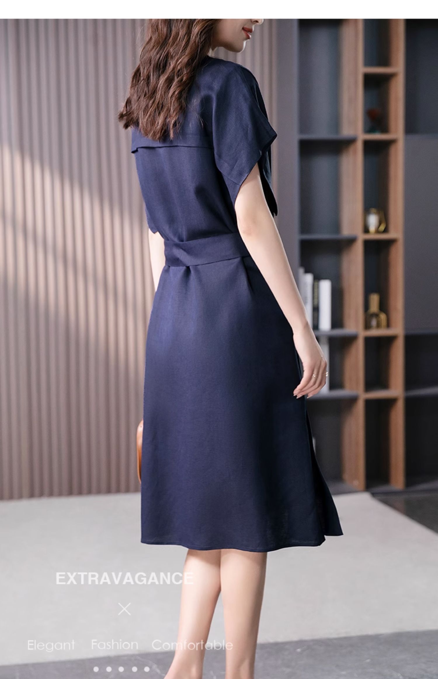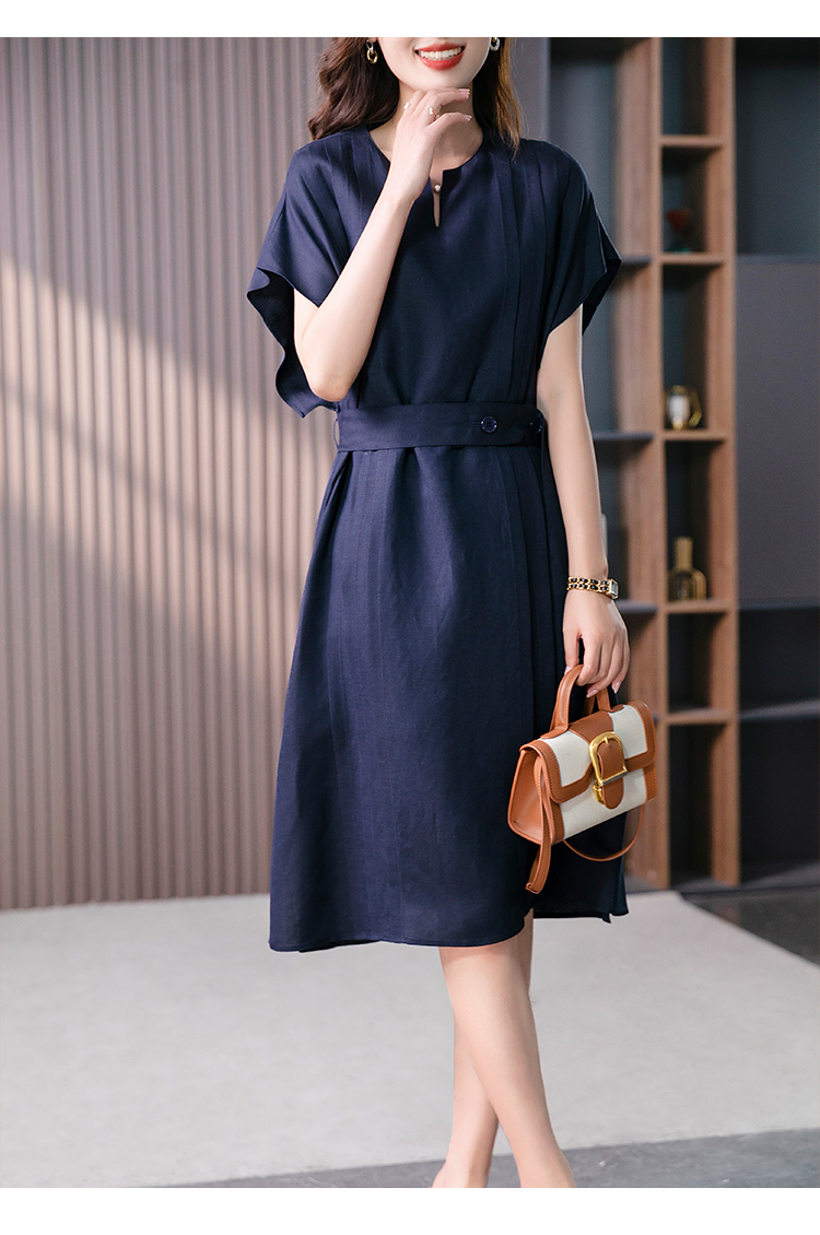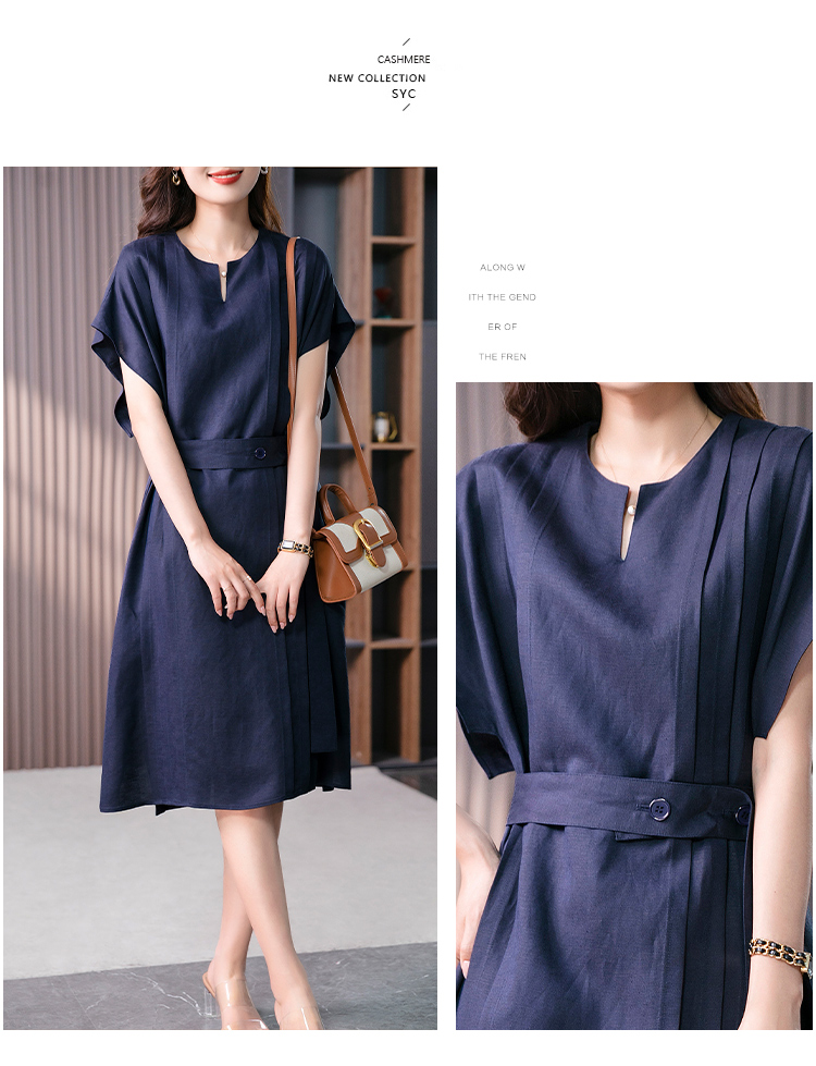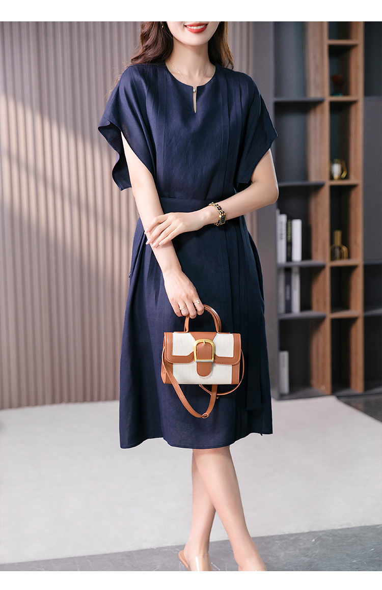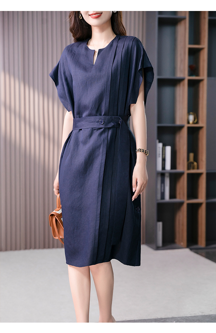 YX【定制17天】FSW气质收腰亚麻连衣裙女2023夏季新款设计感小众蝙蝠袖中长裙