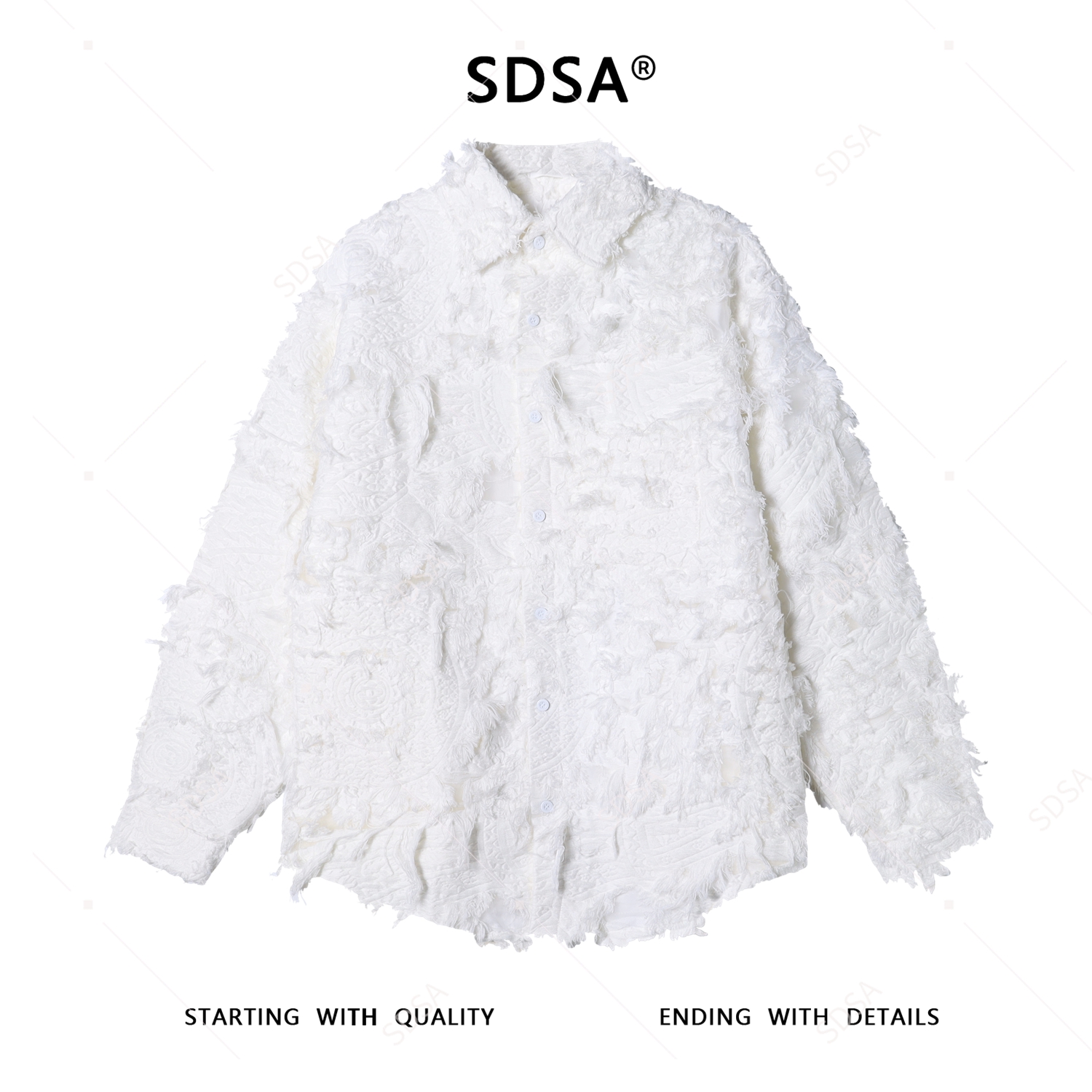 SDSA男士秋冬新款痞帅男装潮牌重工流苏纯色纽扣翻领长袖衬衫百搭