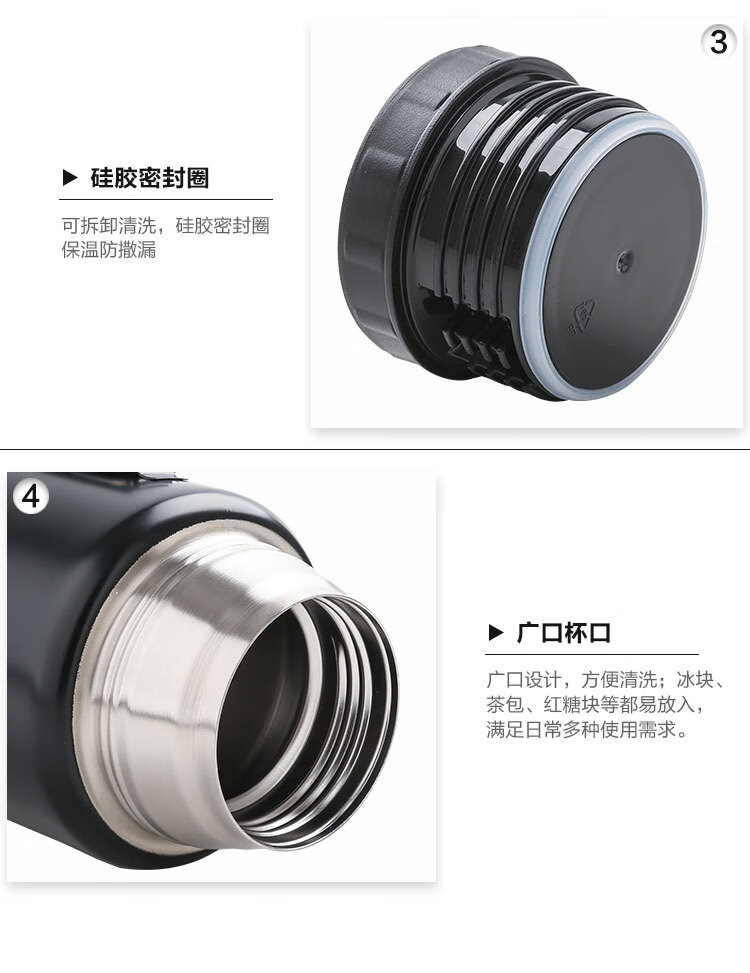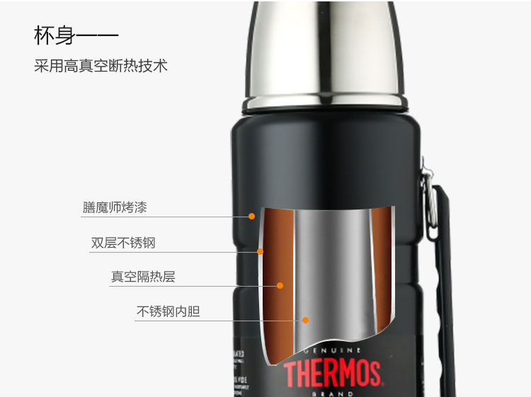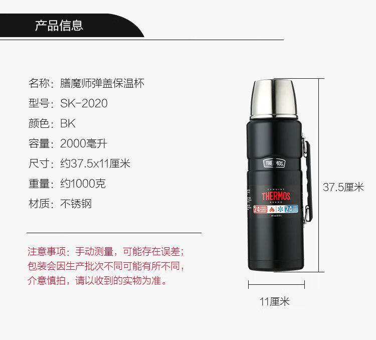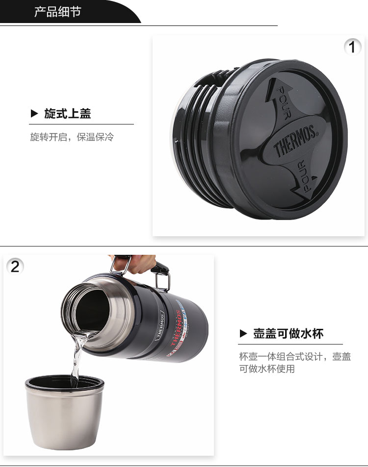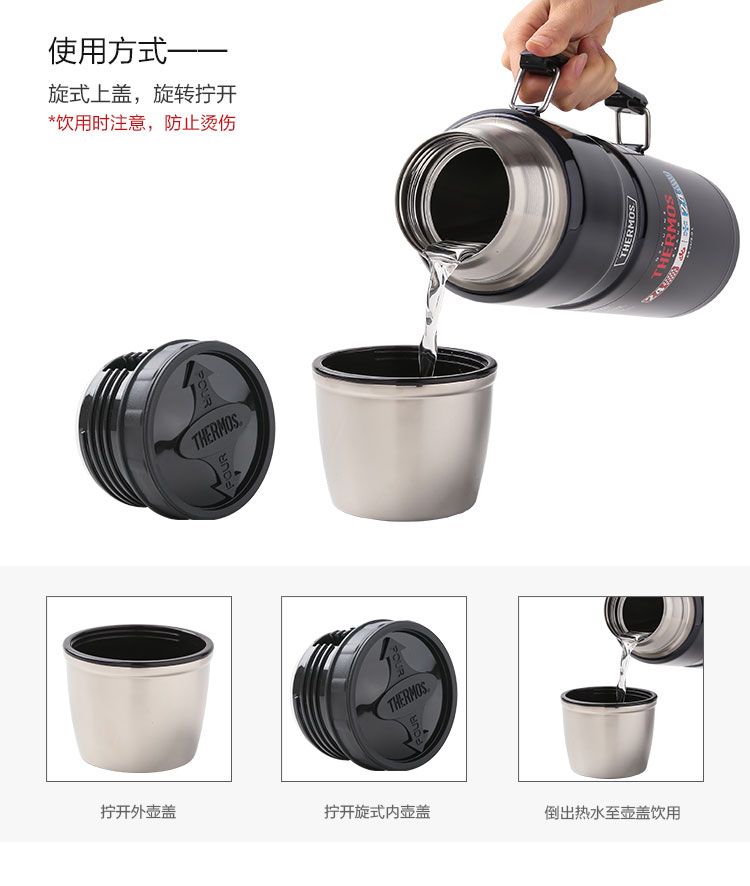 膳魔师(THERMOS)保温壶大容量2000ml高真空不锈钢户外运动旅行壶SK-2020 黑色