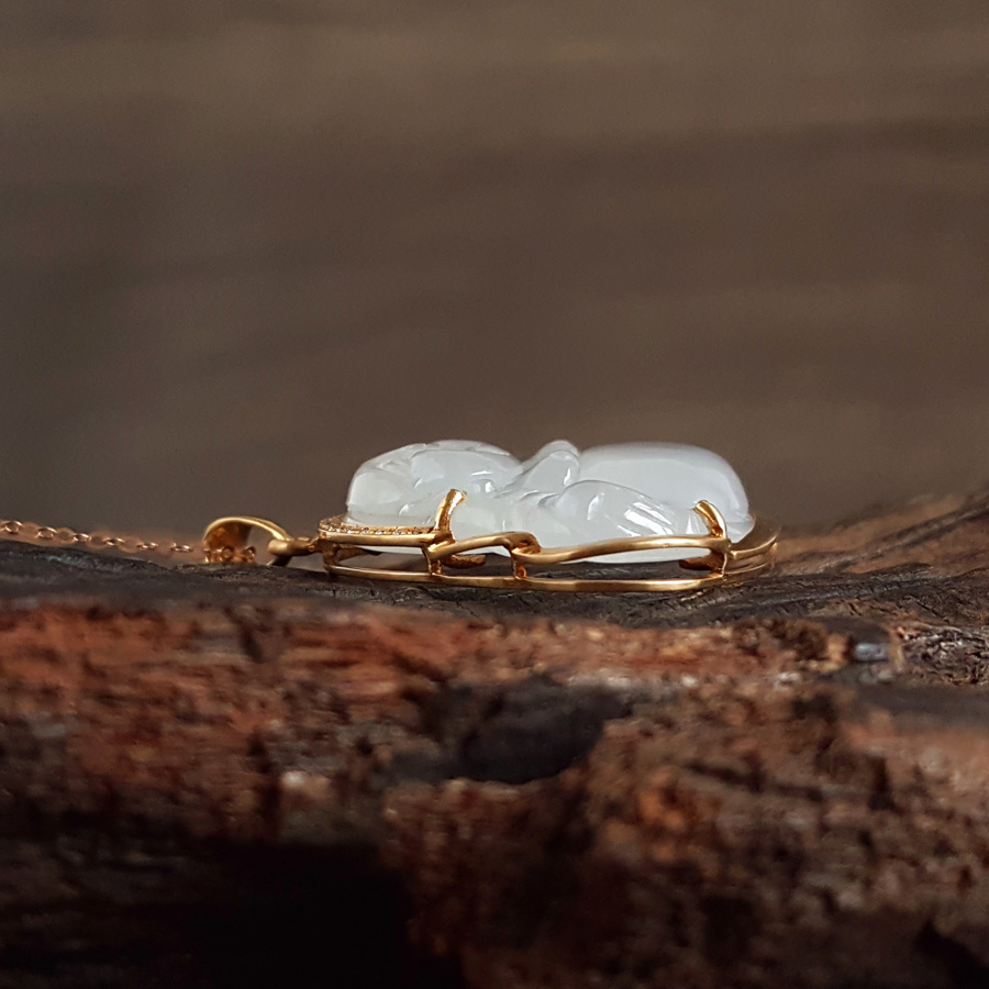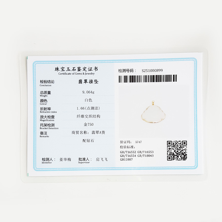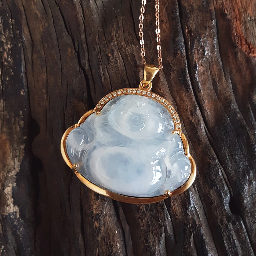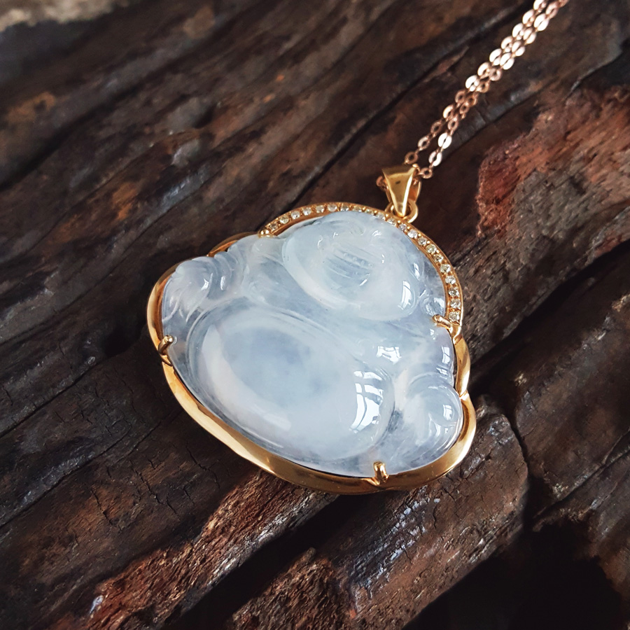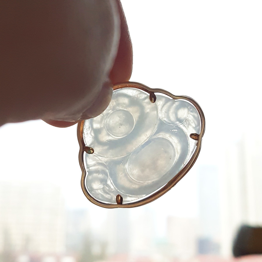 名称 | AU750黄金镶钻镶天然细腻白色冰种佛公翡翠吊坠项链 |