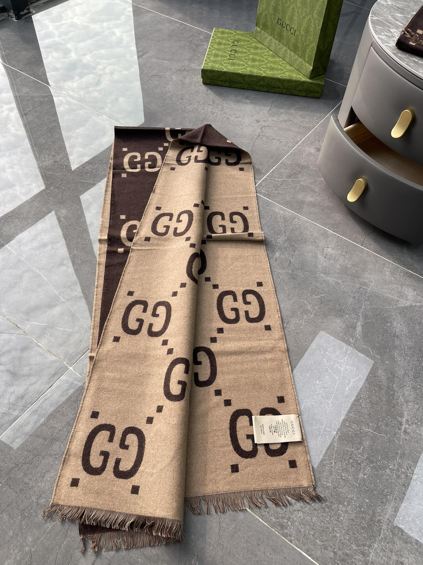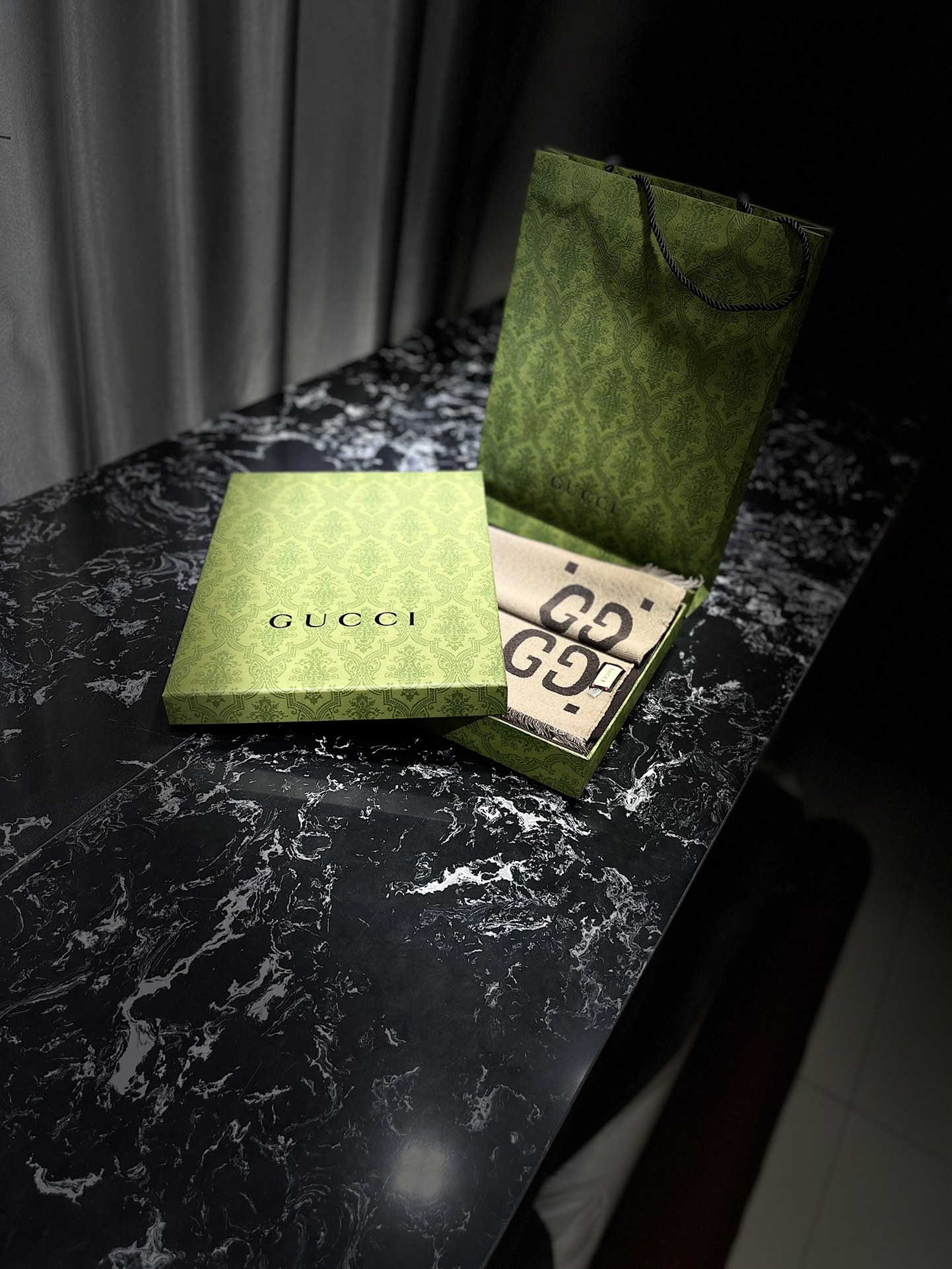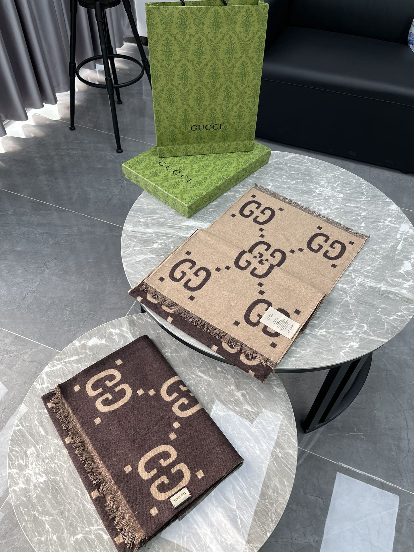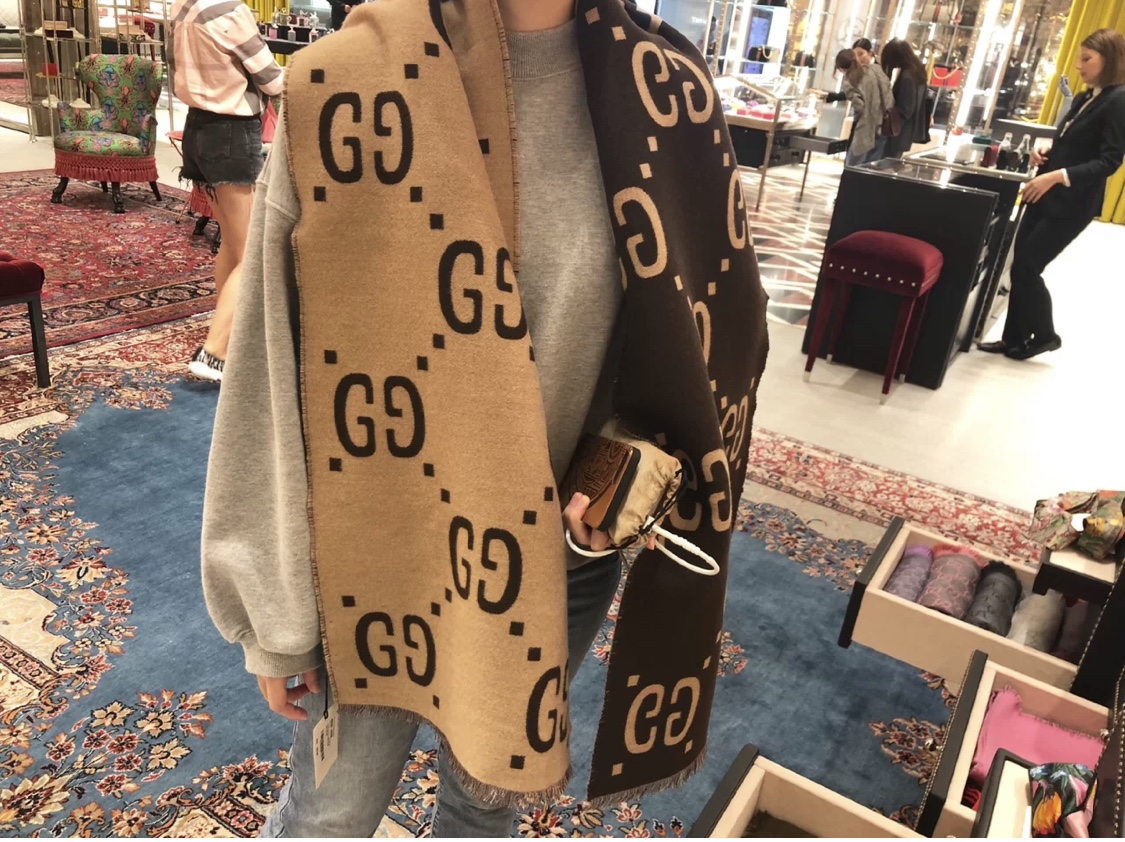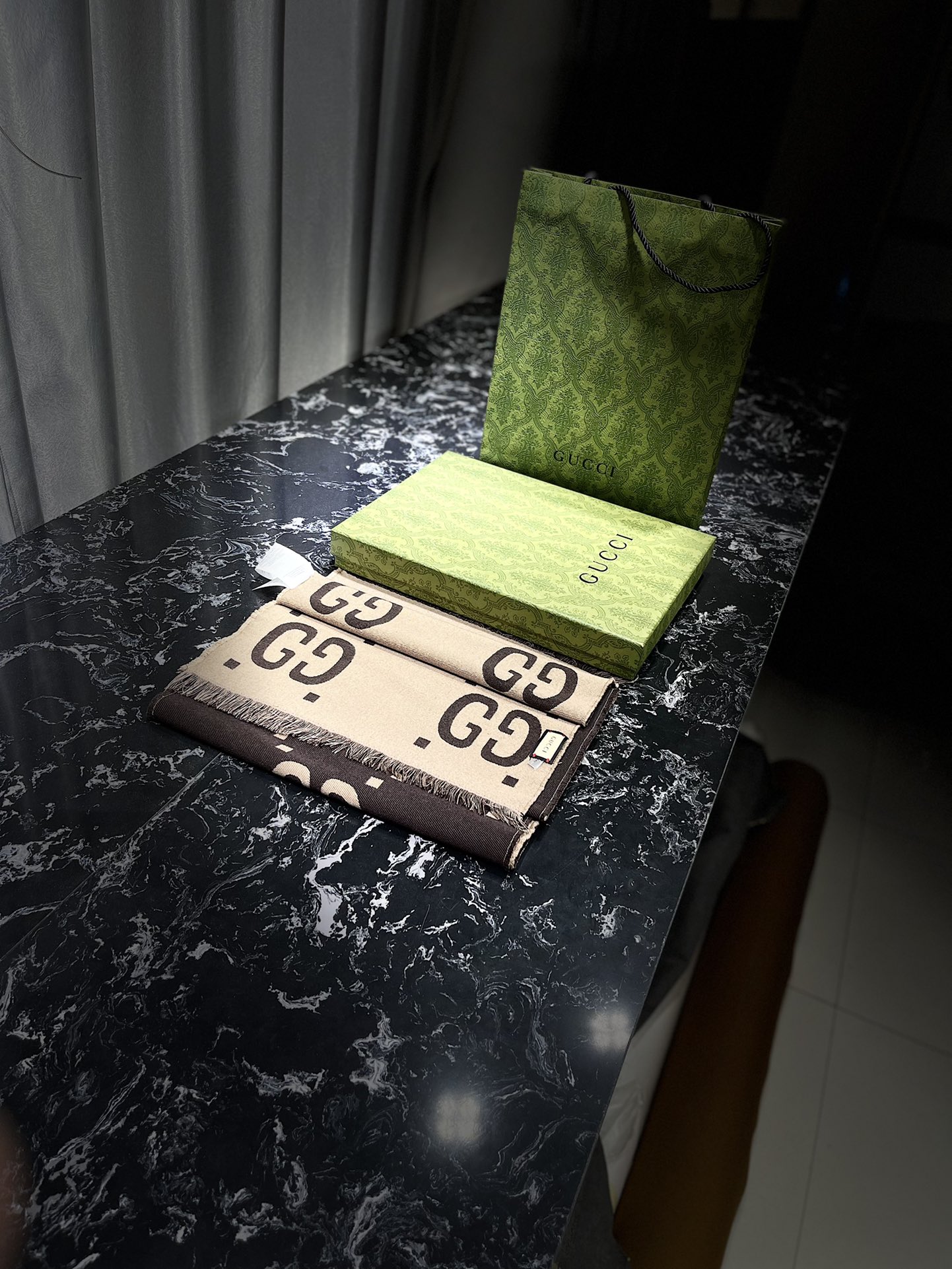 GG双面双色提花真丝羊毛围巾披肩,渠道货源,专柜有价渠道无价且卖且珍惜,麦标吊牌后配,围巾进出专柜对比无任何压力,今年好货围巾是稀缺的不得了,咱家品质亲们毋庸置疑拿就完了,此款今年也是火爆的不行也是深受各大网红明星喜爱,此款装饰超大造型设计GG图案,于1970年代首次使用的GG标识从始于1930年代的初始Gucci菱形设计演化而来,其后便被设立为Gucci传承的标志,在2018早春系列中GG图案以全新方式重返时尚前沿,旨在向Gucci的本源致敬!用专业术语描述咱家这款的用料以及织造,原料径向纱线采用140s/2绢丝,纬向纱线采用110支澳洲羊毛条经过丝光和防缩处理,手感很蓬松而且很光滑。围巾工艺比较复杂,提花织造,经密达到张370多,维密570多,不同于其他产品,织造比较困难,每天每台车的织造数量大概只有60多条的量,此款的织造密度一般设备没法完成咱家别忘了内蒙有个代工厂老大[呲牙][呲牙],市面一般出来的东西只有240g左右他们用的羊毛是60支羊毛条的,咱家用的110支进口澳毛条子,咱家克中达到285g,出来成品的效果手感蓬松感密度感都是杠杠滴,不行自己去对比,上身效果非常棒,GG家灵魂深处就是那么优雅气质高贵时尚大方可爱,尺寸:35*190cm,成分:91%羊毛➕9%真丝,克重:285g!!