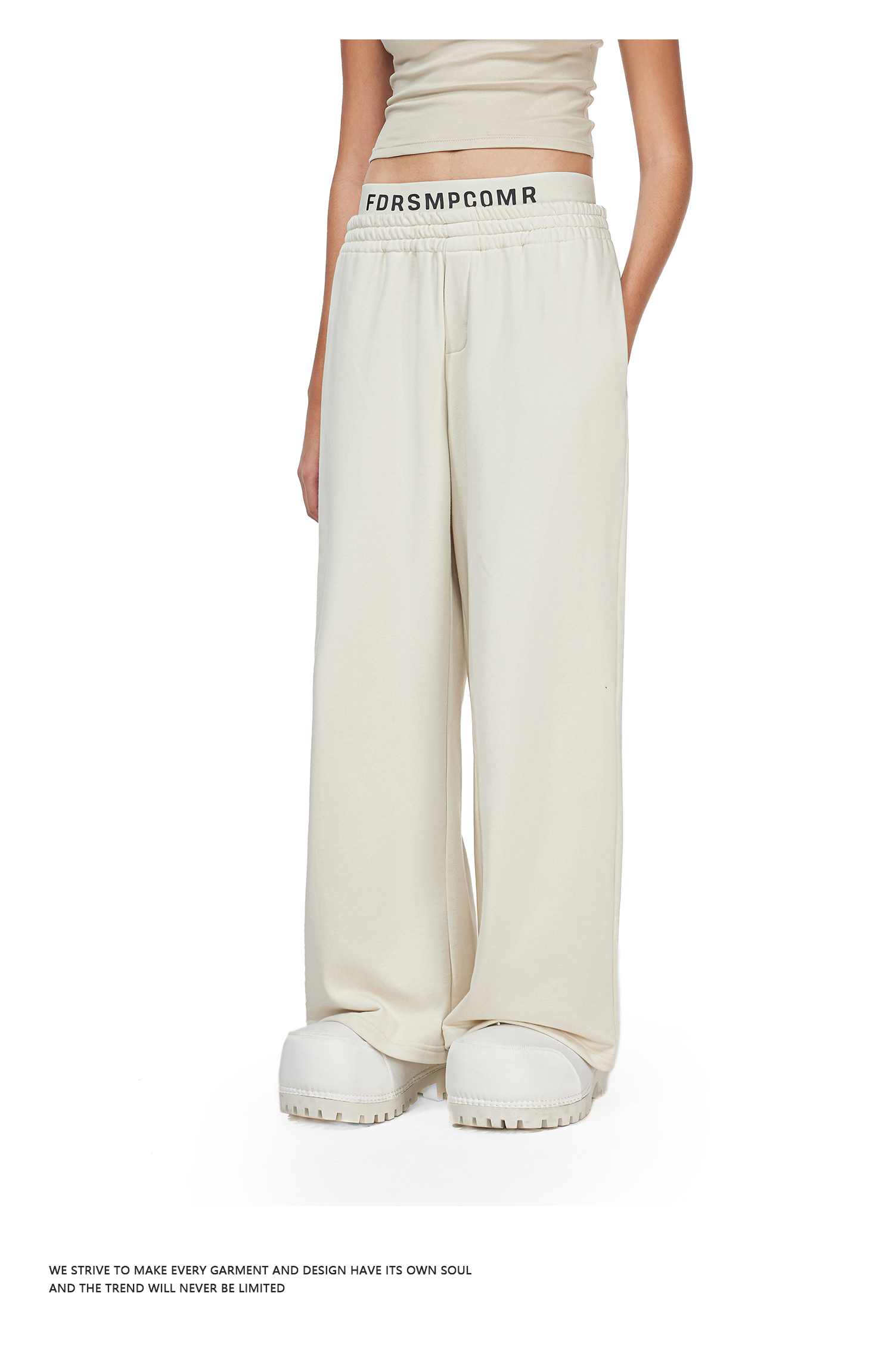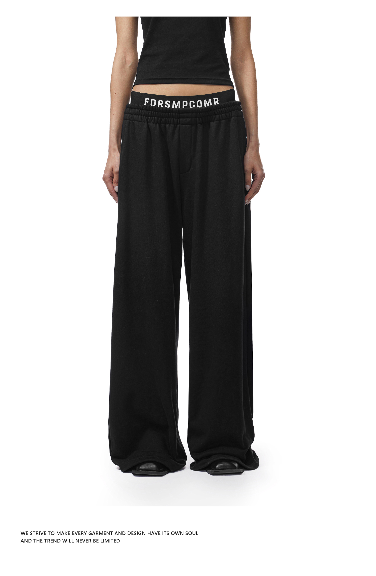 FDR官方店 双腰头假两件休闲裤女美式辣妹运动宽松直筒阔腿裤子