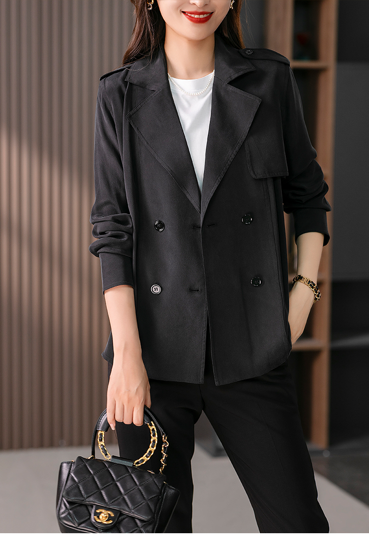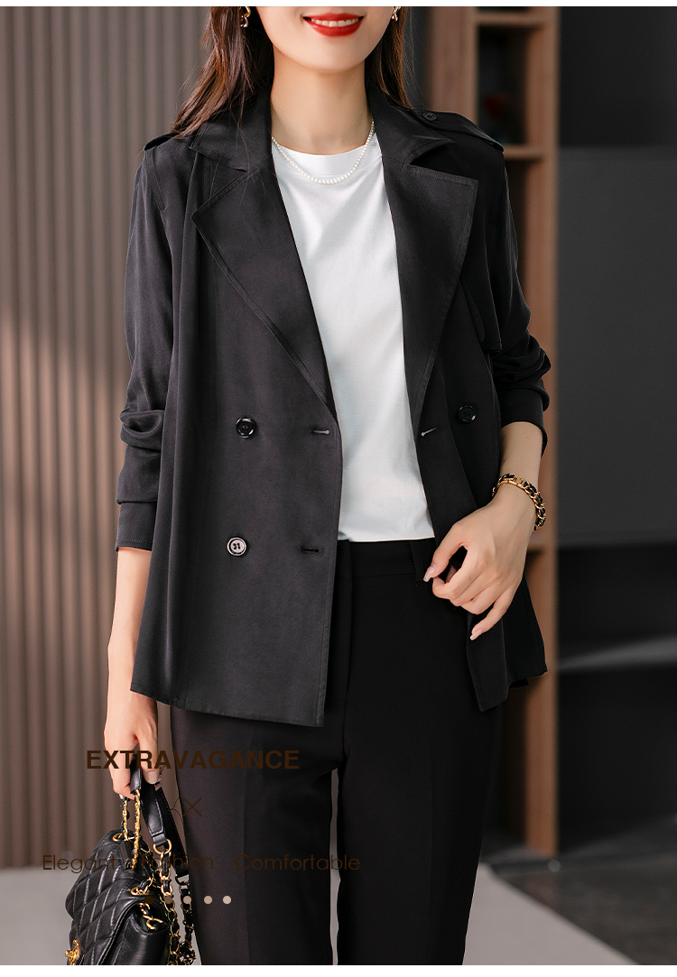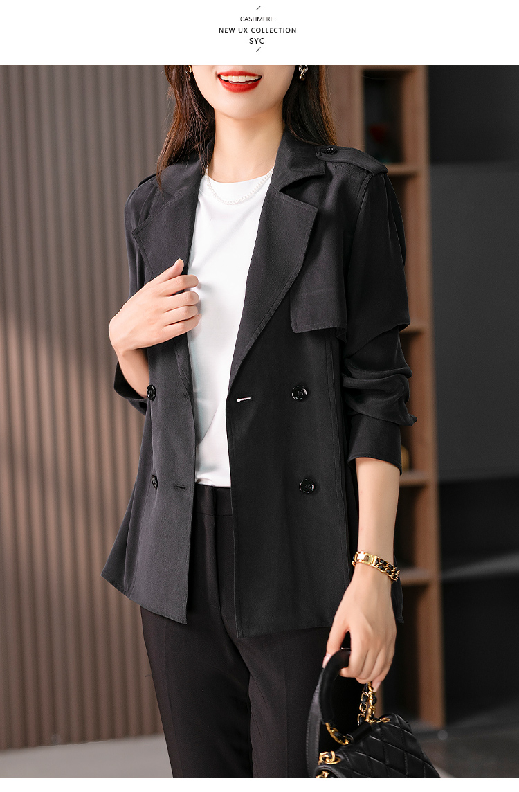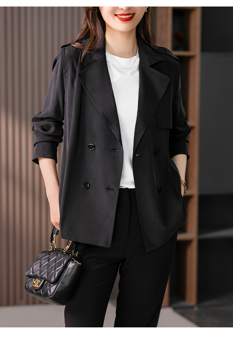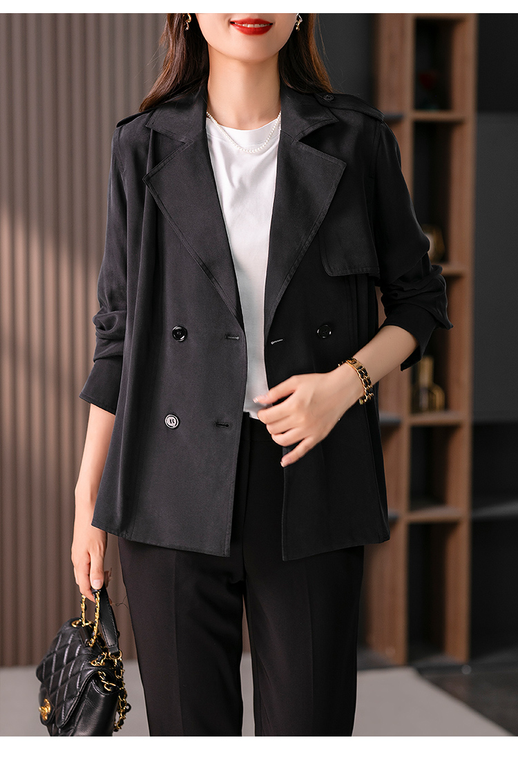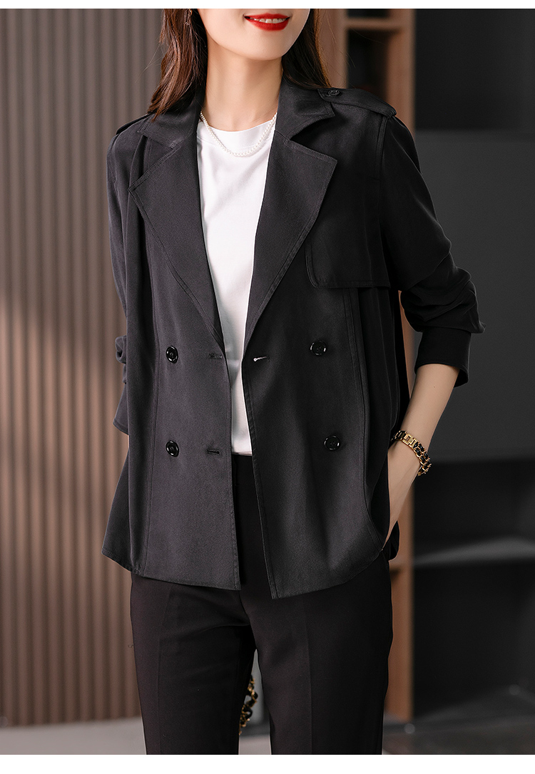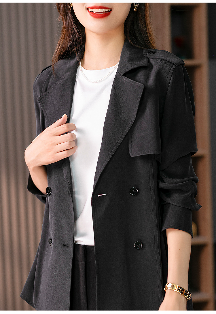 89417 原形高级感优雅天丝风衣女2024秋季新款宽松修身显瘦上衣短外套