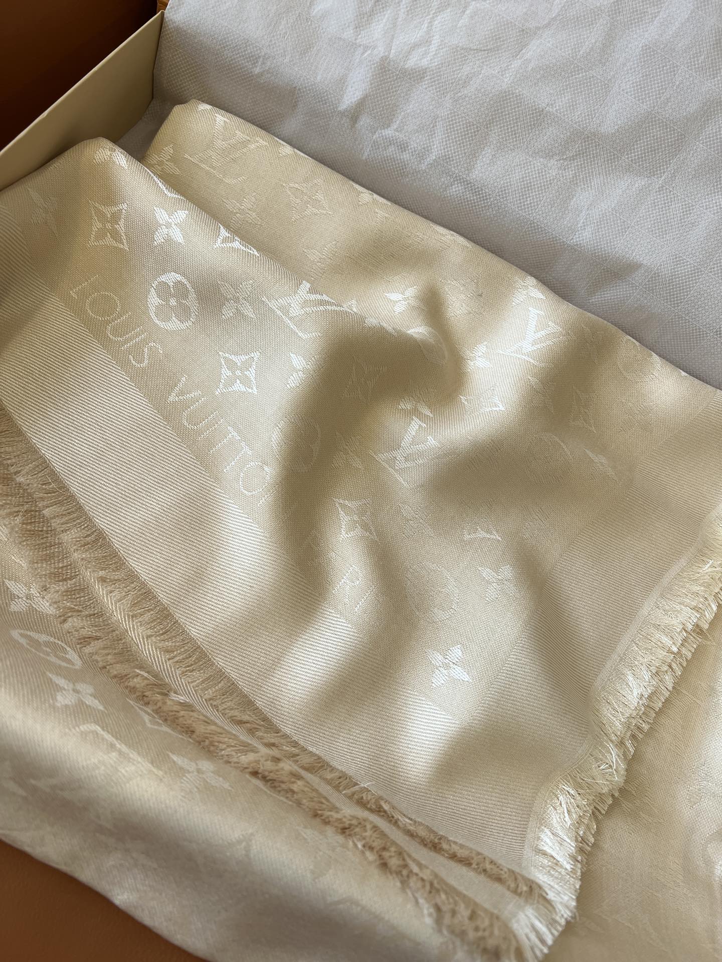【杏色M78144】驴牌#只用三秒就可以决定买的经典不朽款~百搭 好看 秋季最最合适的单品_60%桑蚕丝40%羊毛 很柔软一点也不会扎肉~142.5x142.5cm 大尺寸无论披肩还是围脖都非常合适