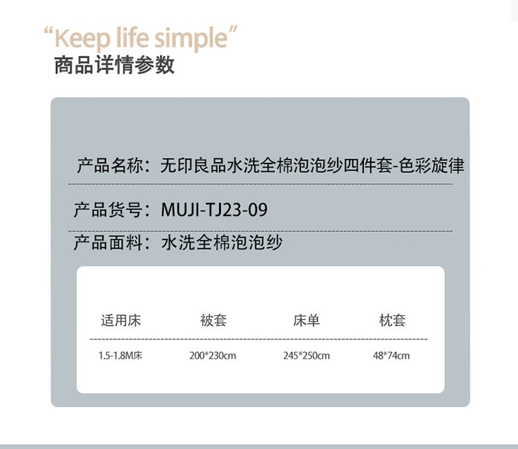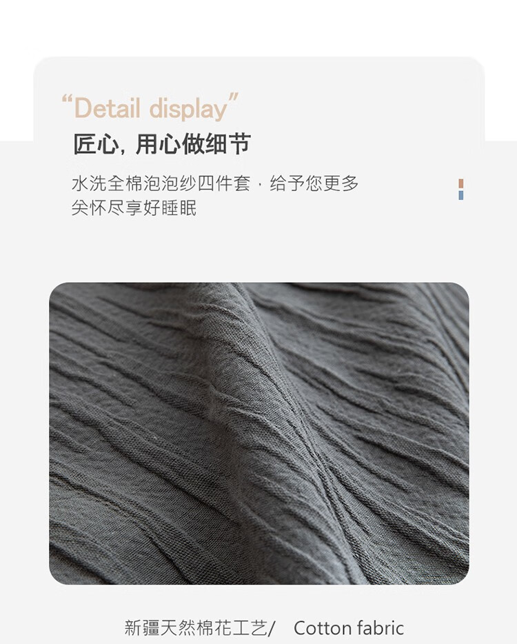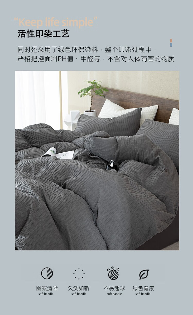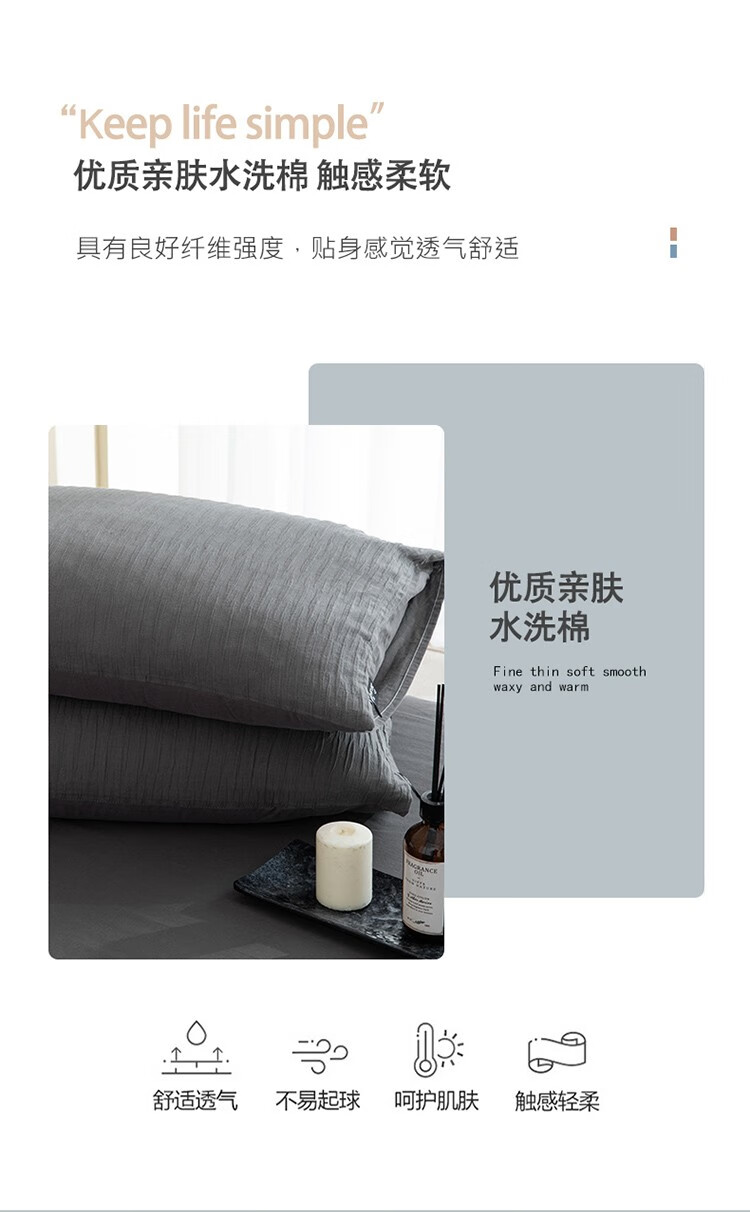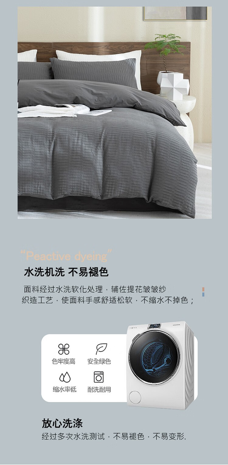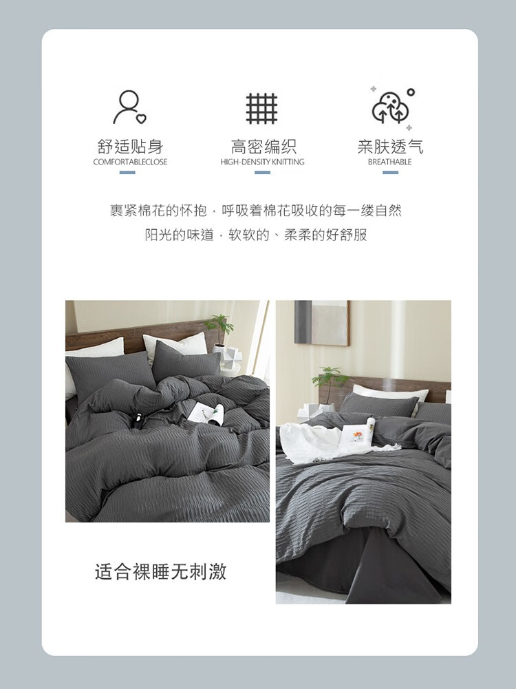 無印水洗全棉泡泡纱四件套 色彩旋律 MUJI-TJ23-09 灰色 200*230cm