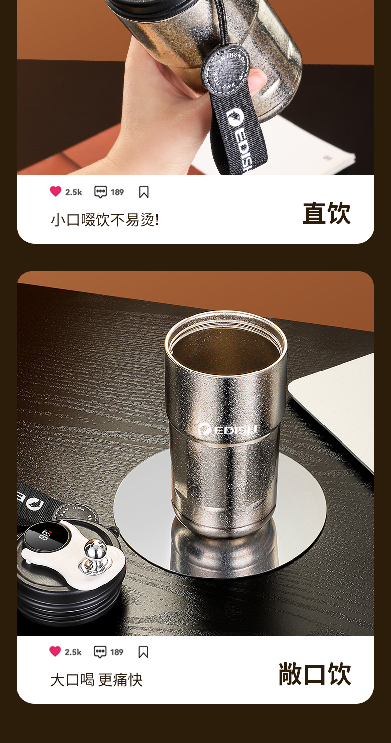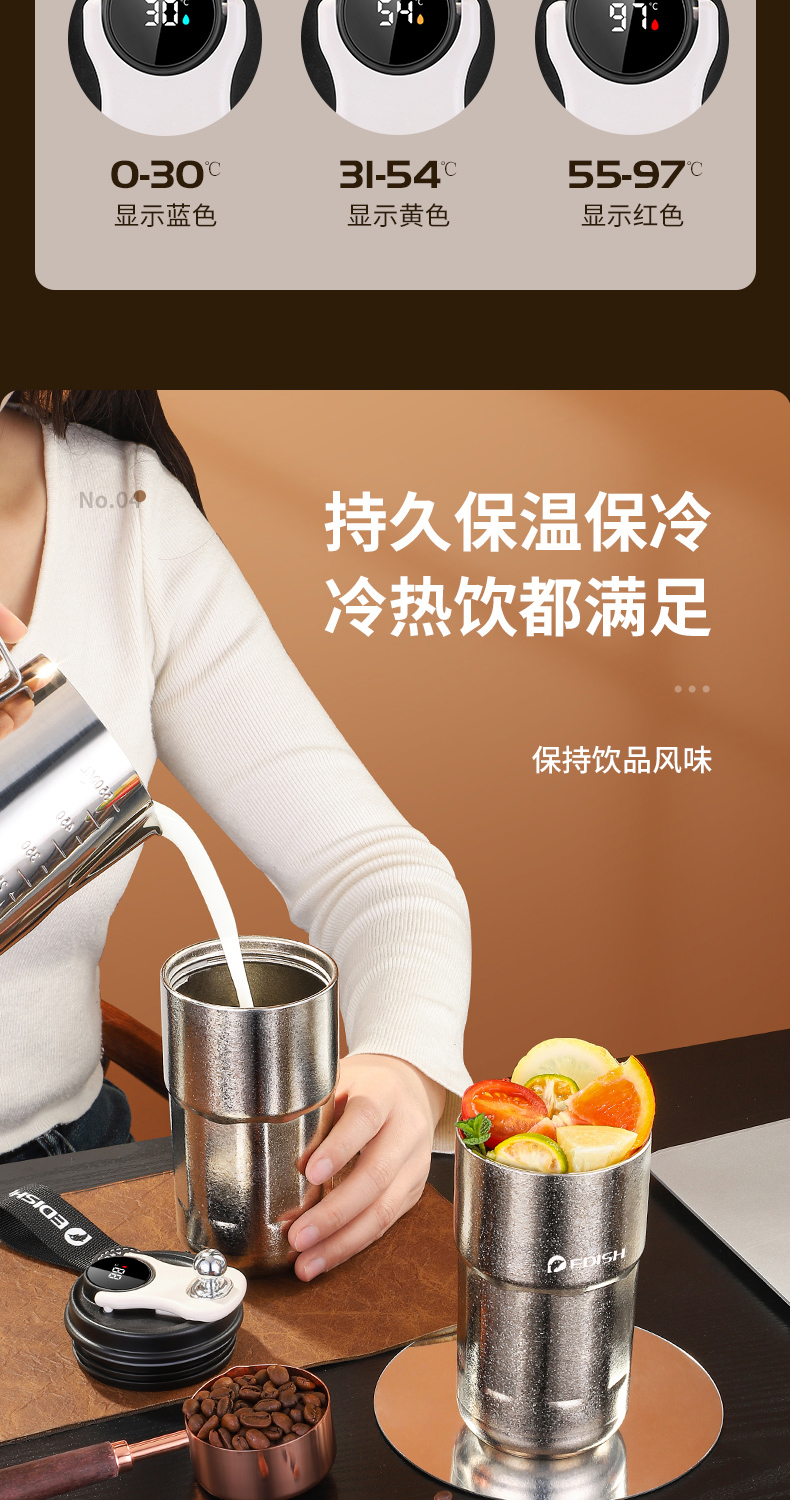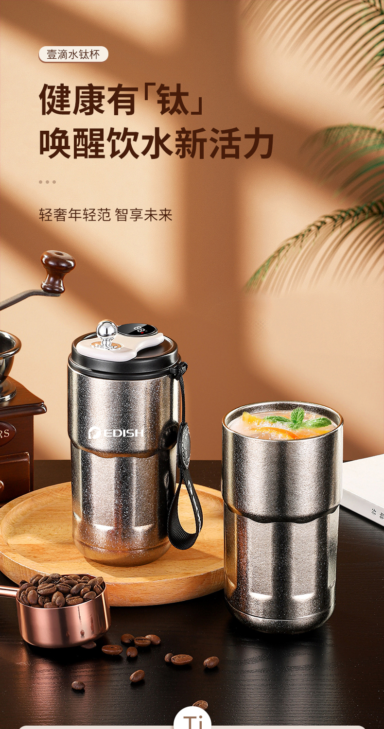 壹滴水纯钛咖啡杯智能显温双重保冷保温高颜值高级感双层