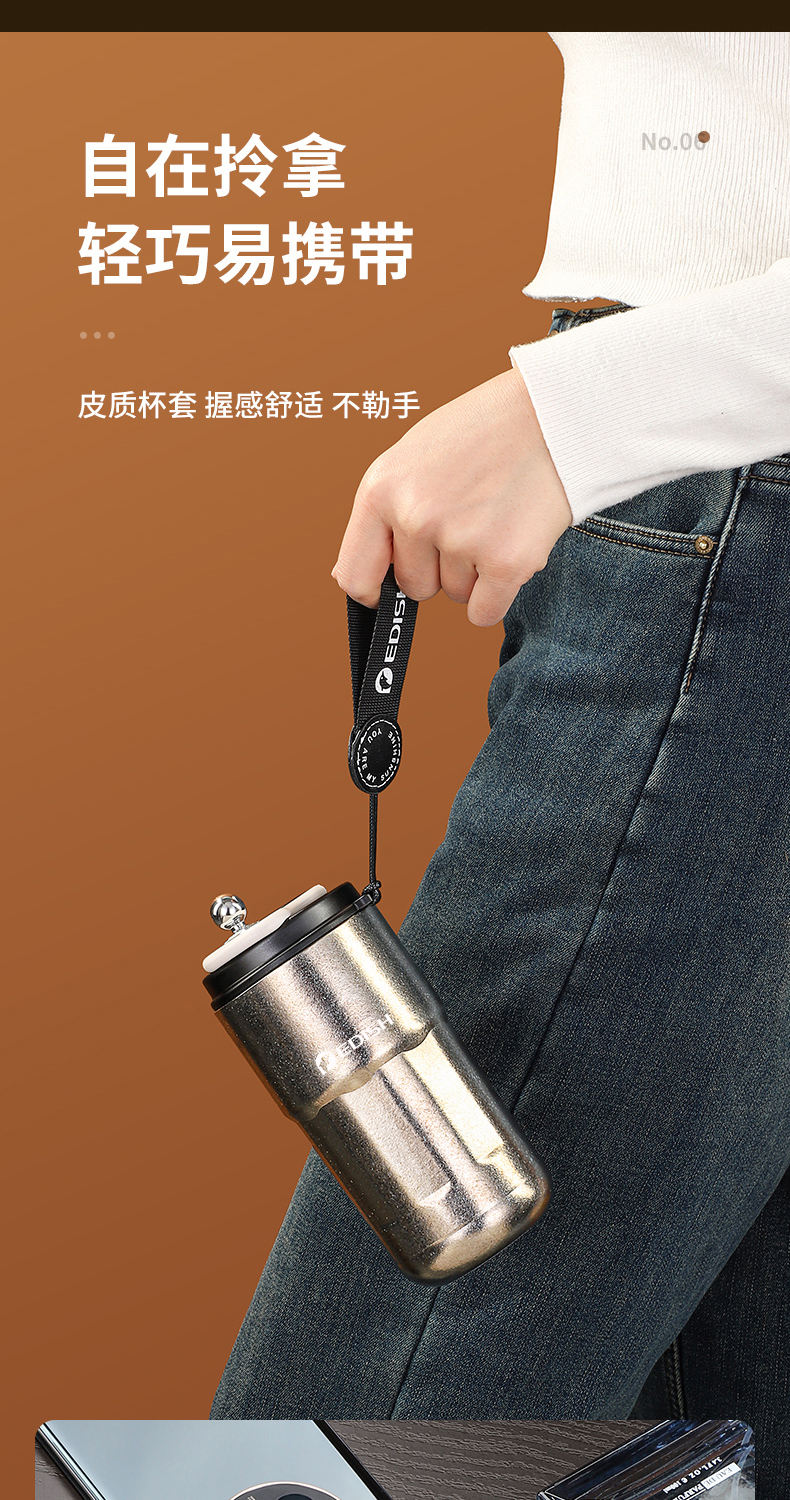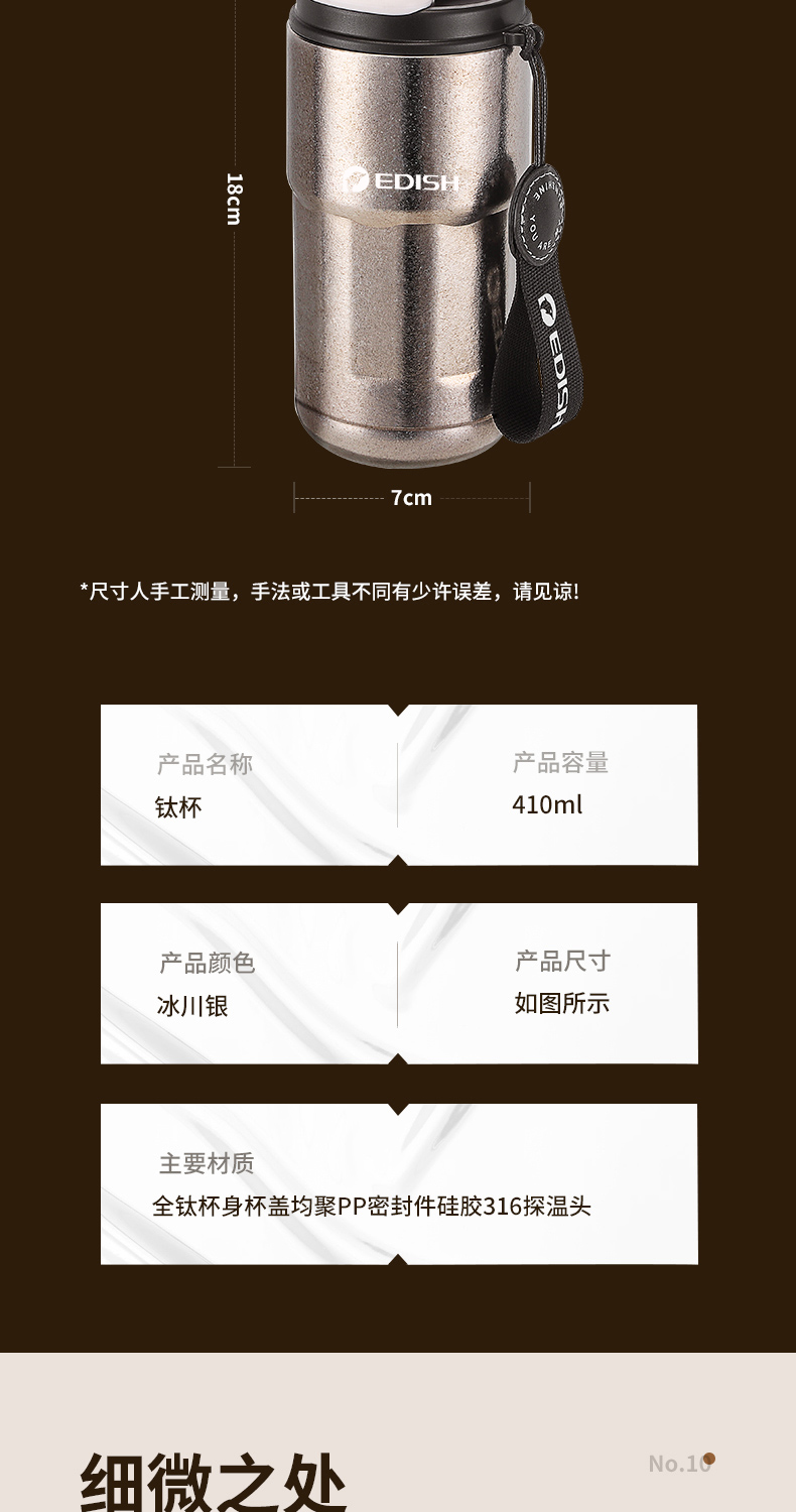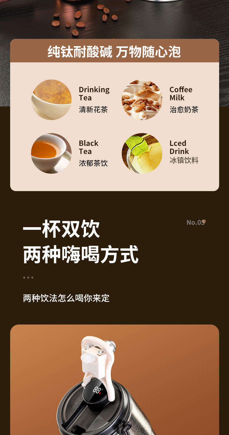 壹滴水纯钛咖啡杯智能显温双重保冷保温高颜值高级感双层
