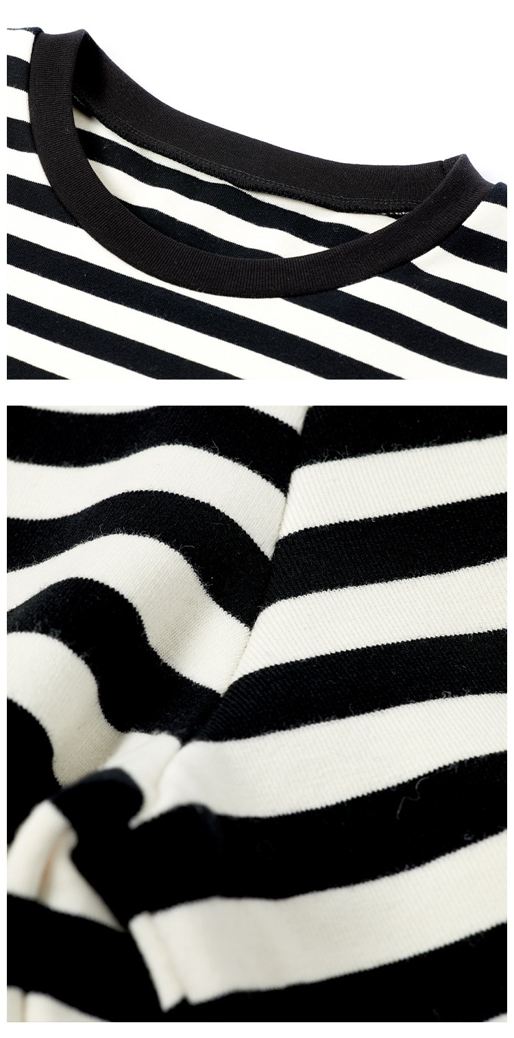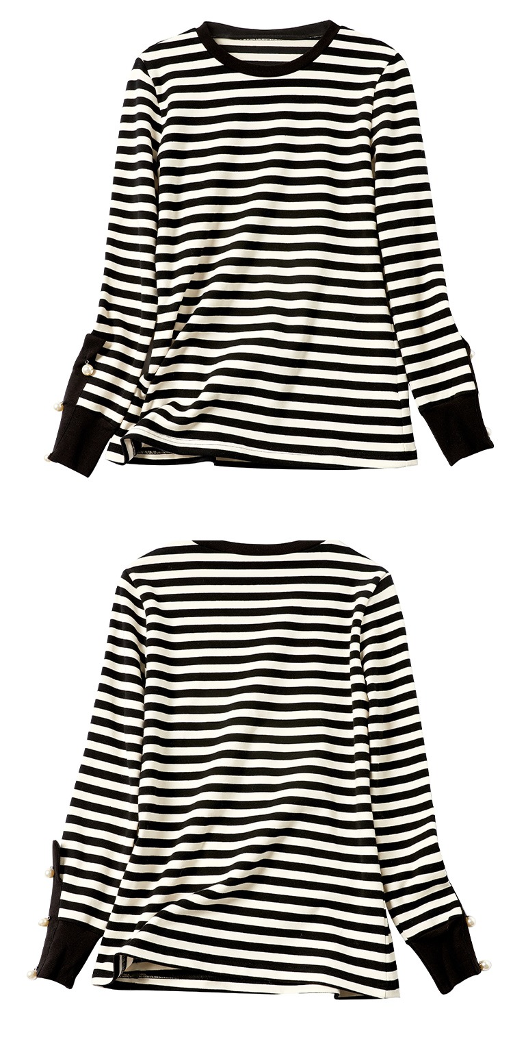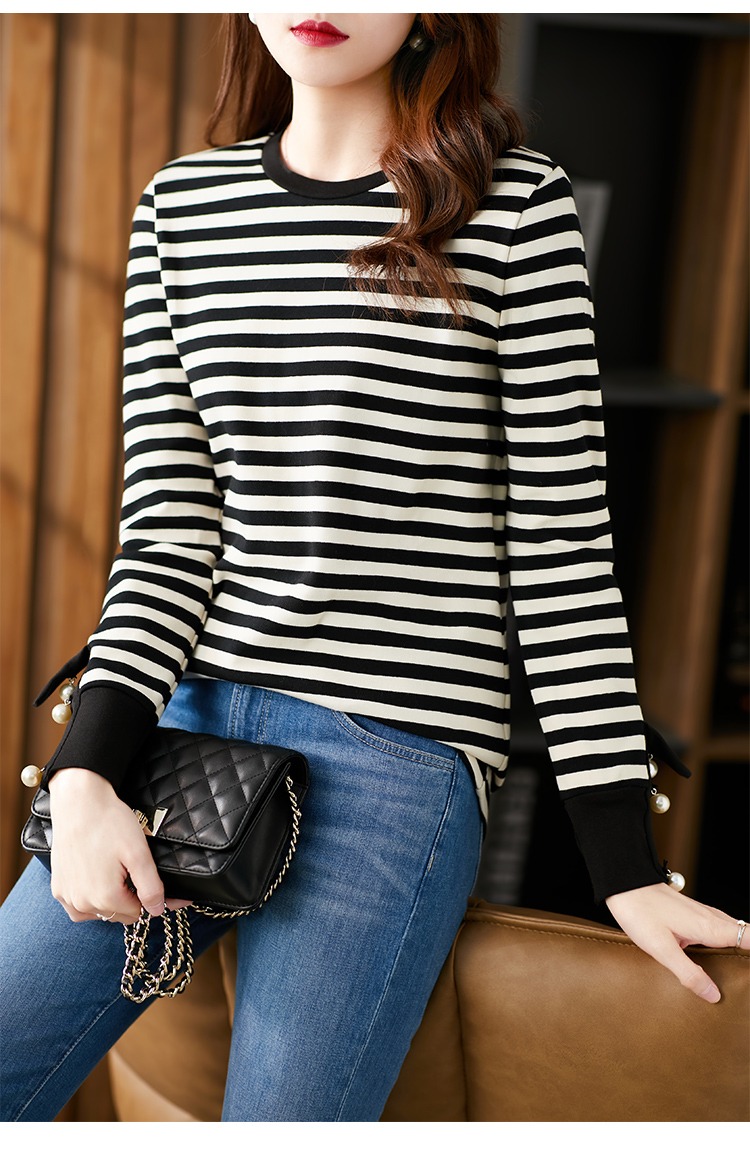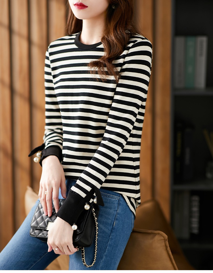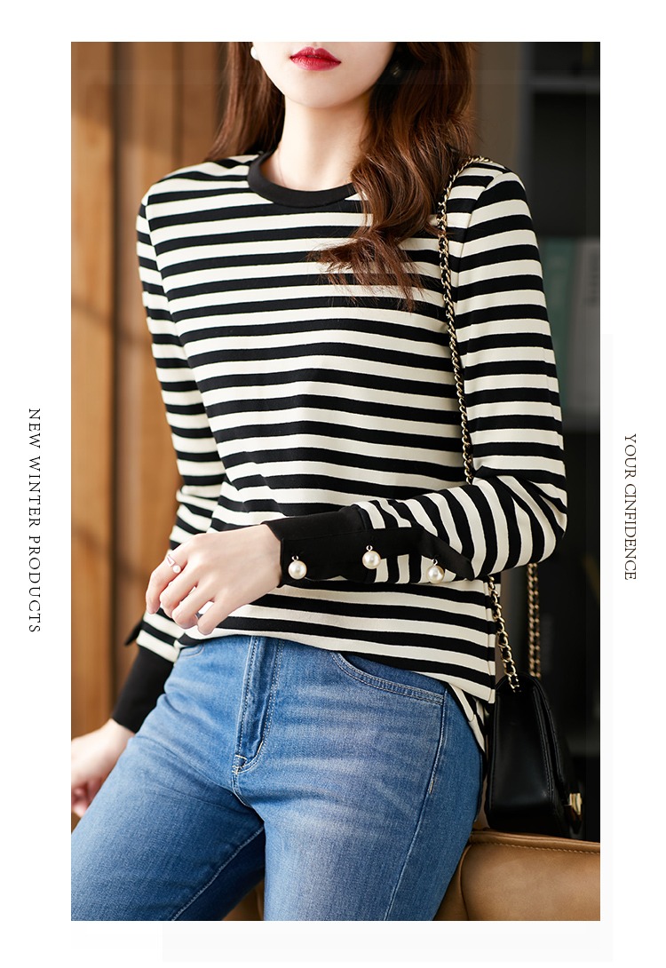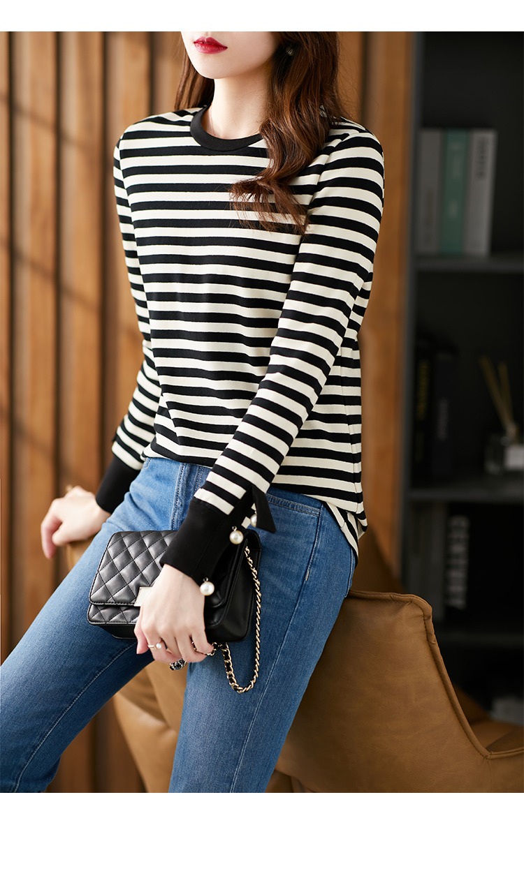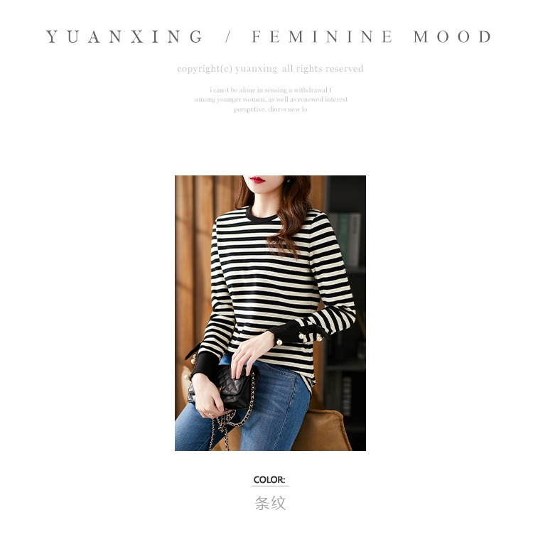 长袖条纹针织打底衫女 2023春季新款韩版宽松百搭长袖t恤女