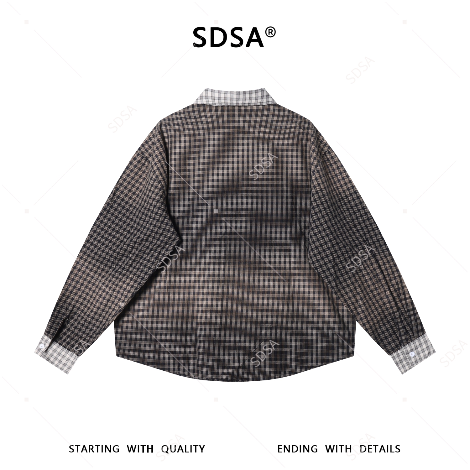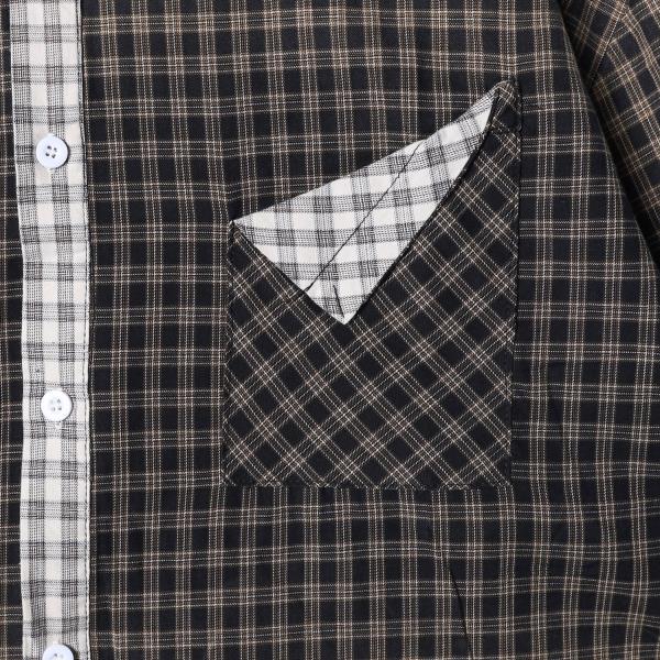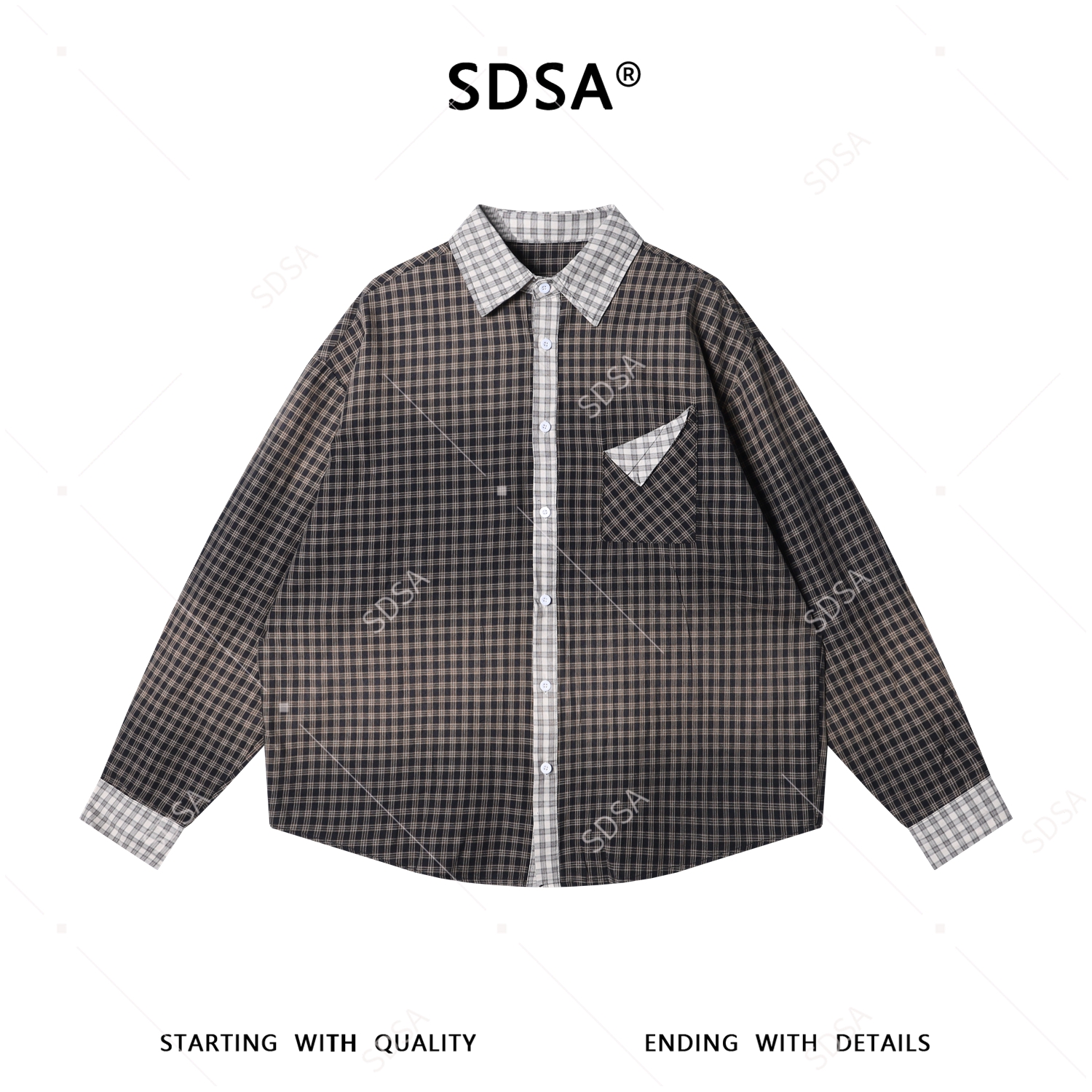 SDSA男装2026新款高贵轻奢撞色小格拼接子翻领长袖衬衫百搭休闲
