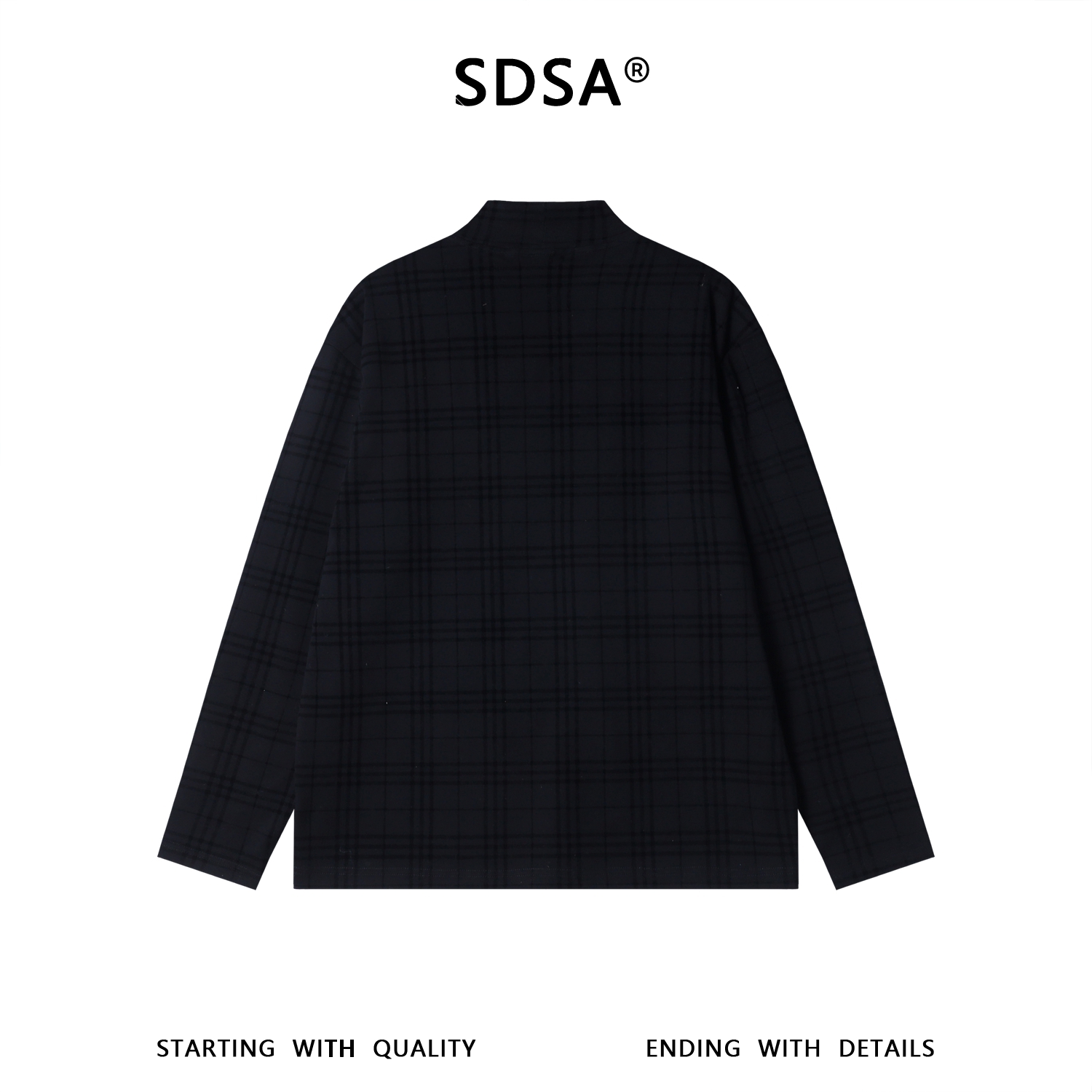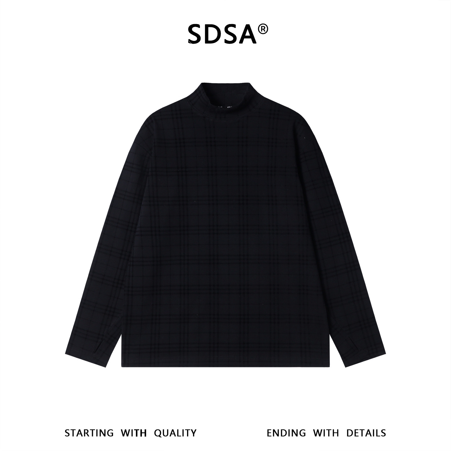 T5073SDSA男士秋冬新款痞帅男装潮牌复古撞色格纹格子立领长袖T恤百搭