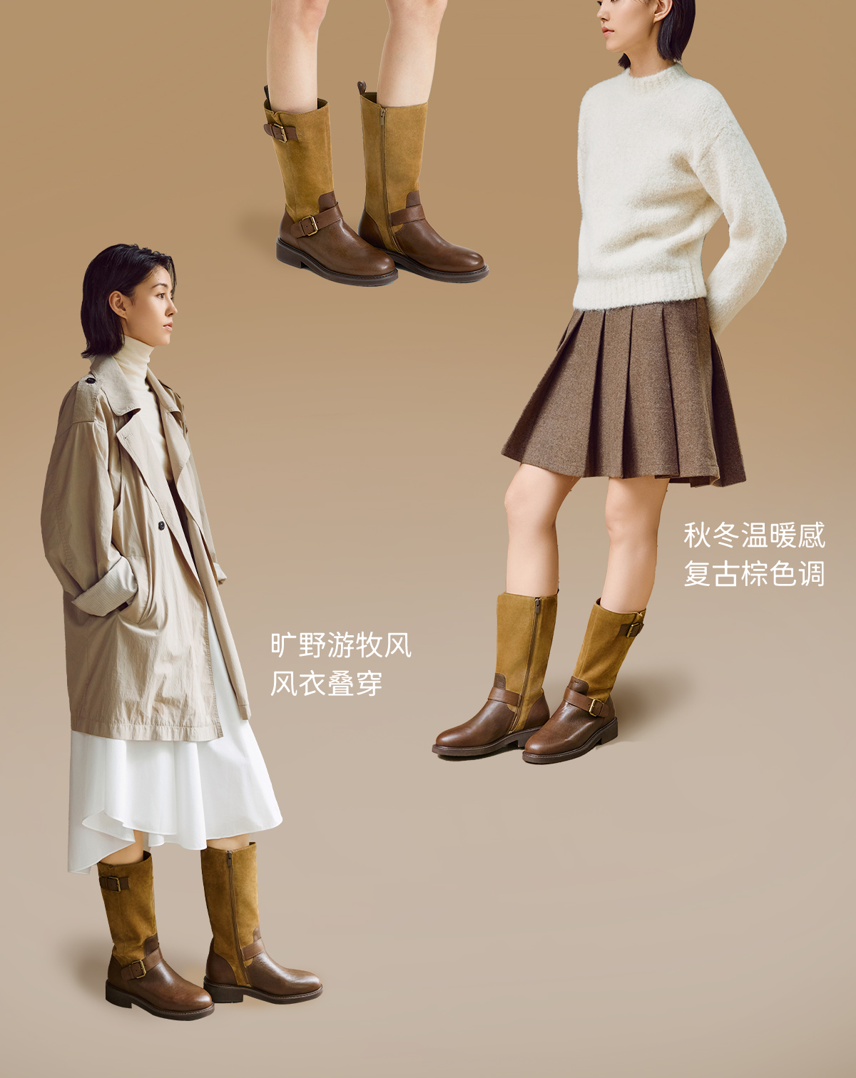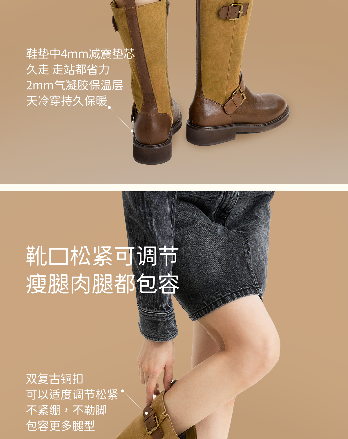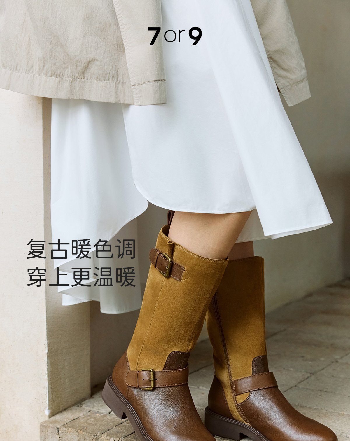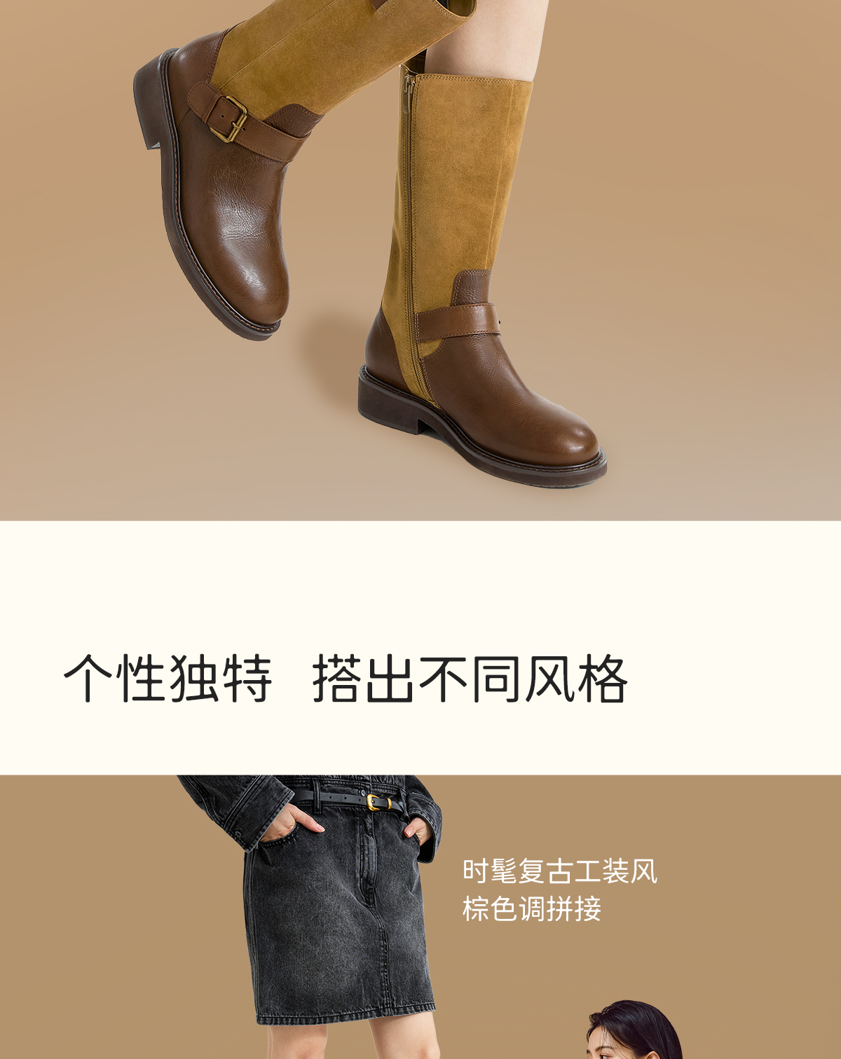 【巴斯克】7or9 复古西部靴 秋冬长靴 时尚牛皮革拼接靴子