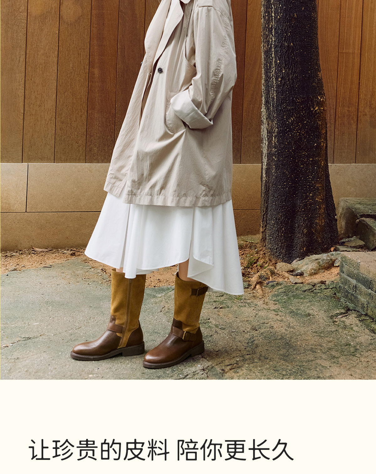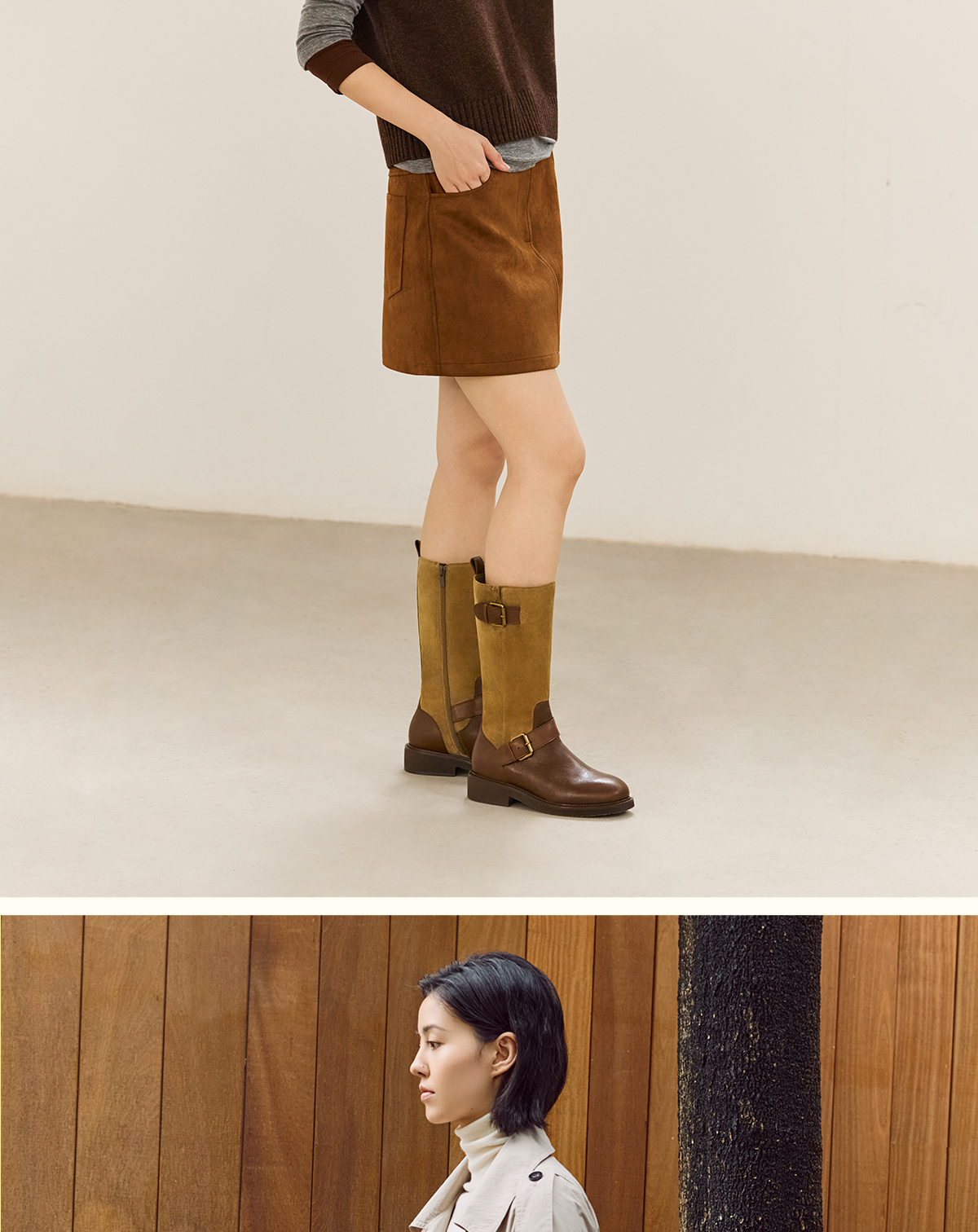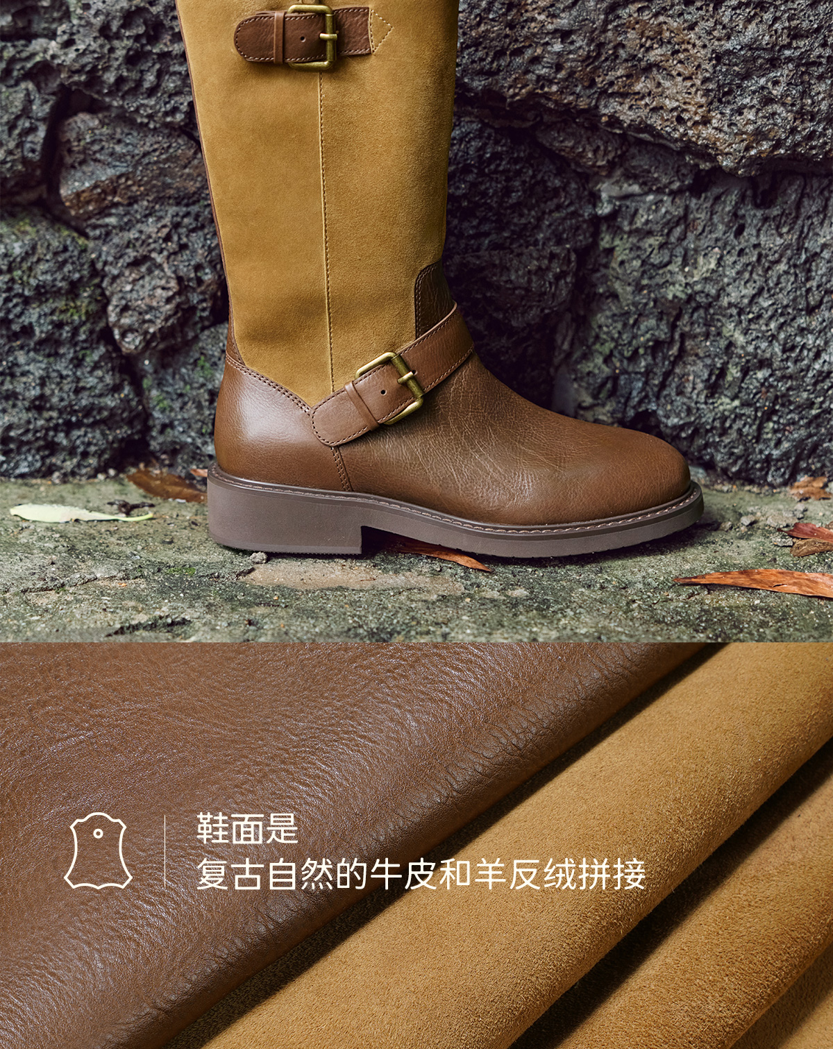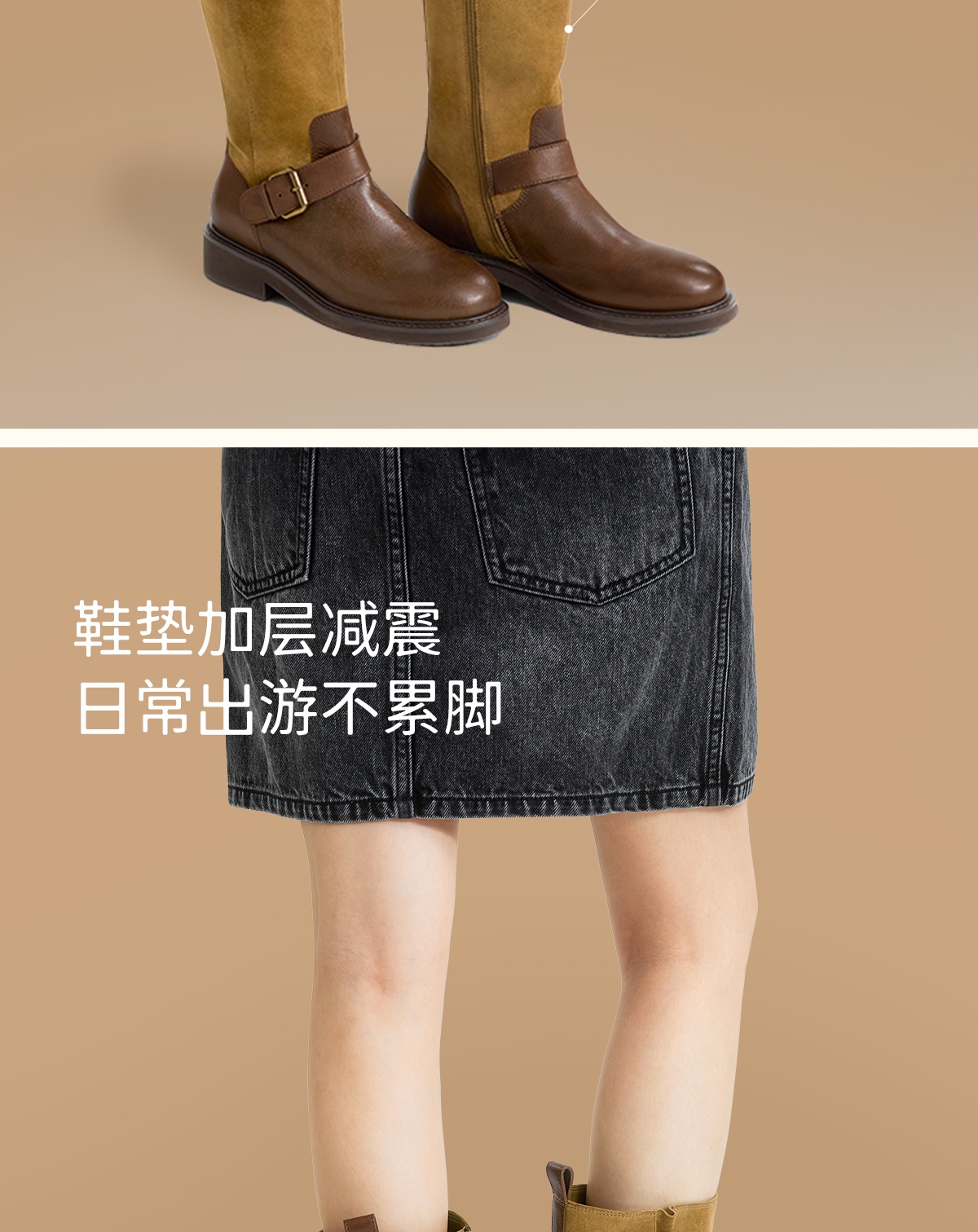 【巴斯克】7or9 复古西部靴 秋冬长靴 时尚牛皮革拼接靴子