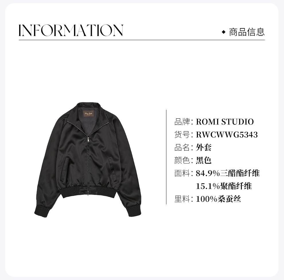 ROMI STUDIO“三醋酸”哑光柔滑棒球领复古休闲拉链外套RWCWWG5343