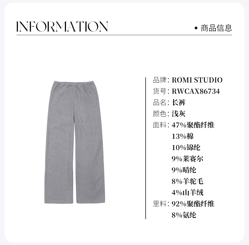 ROMI STUDIO“格雷高知”阿尔巴卡羊驼毛混纺直筒毛呢裤RWCAX86734