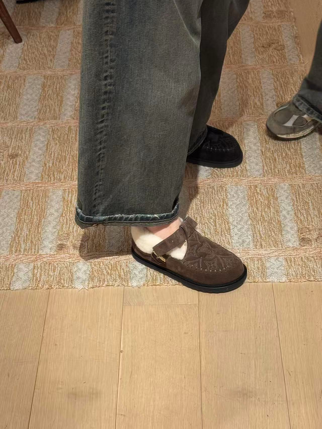 原版购入开发 做货 Colorado 毛绒玛丽珍鞋以绒面牛皮革呈现丝绒质感,搭配柔暖羊毛皮内衬。鞋面的 字母缝线和可调节鞋带的铭纹搭扣共同丰富品牌细节,轻盈微型外底完善潮流格调