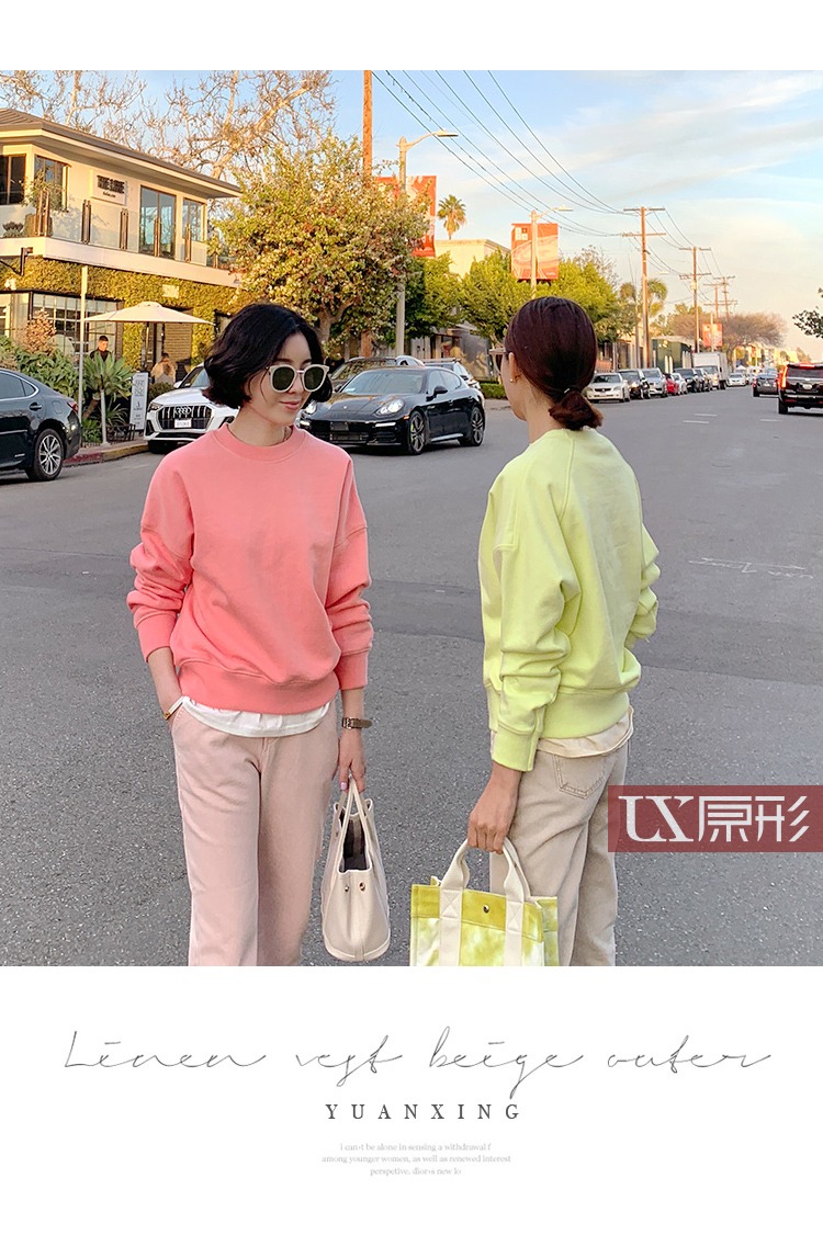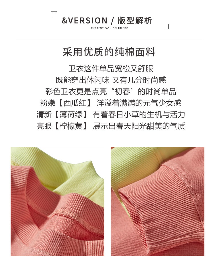 【秋季新款】糖果色春装卫衣女宽松韩版2023新款慵懒套头圆领长袖ins上衣