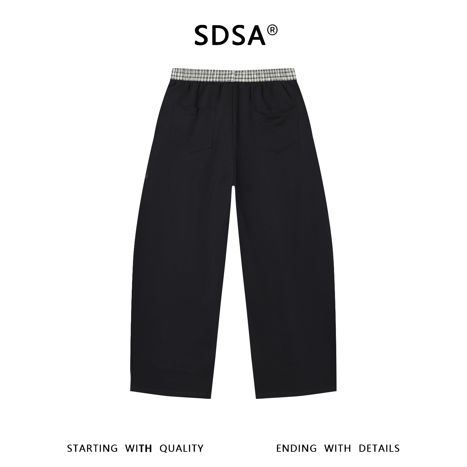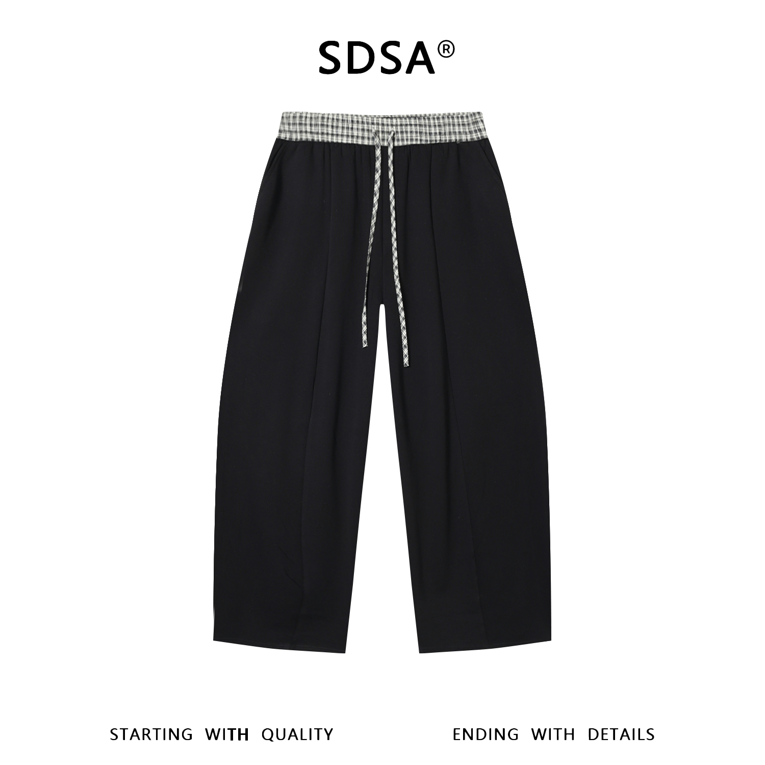 SDSA男装2026新款高贵轻奢潮牌拼接格纹腰头抽绳松紧休闲裤百搭