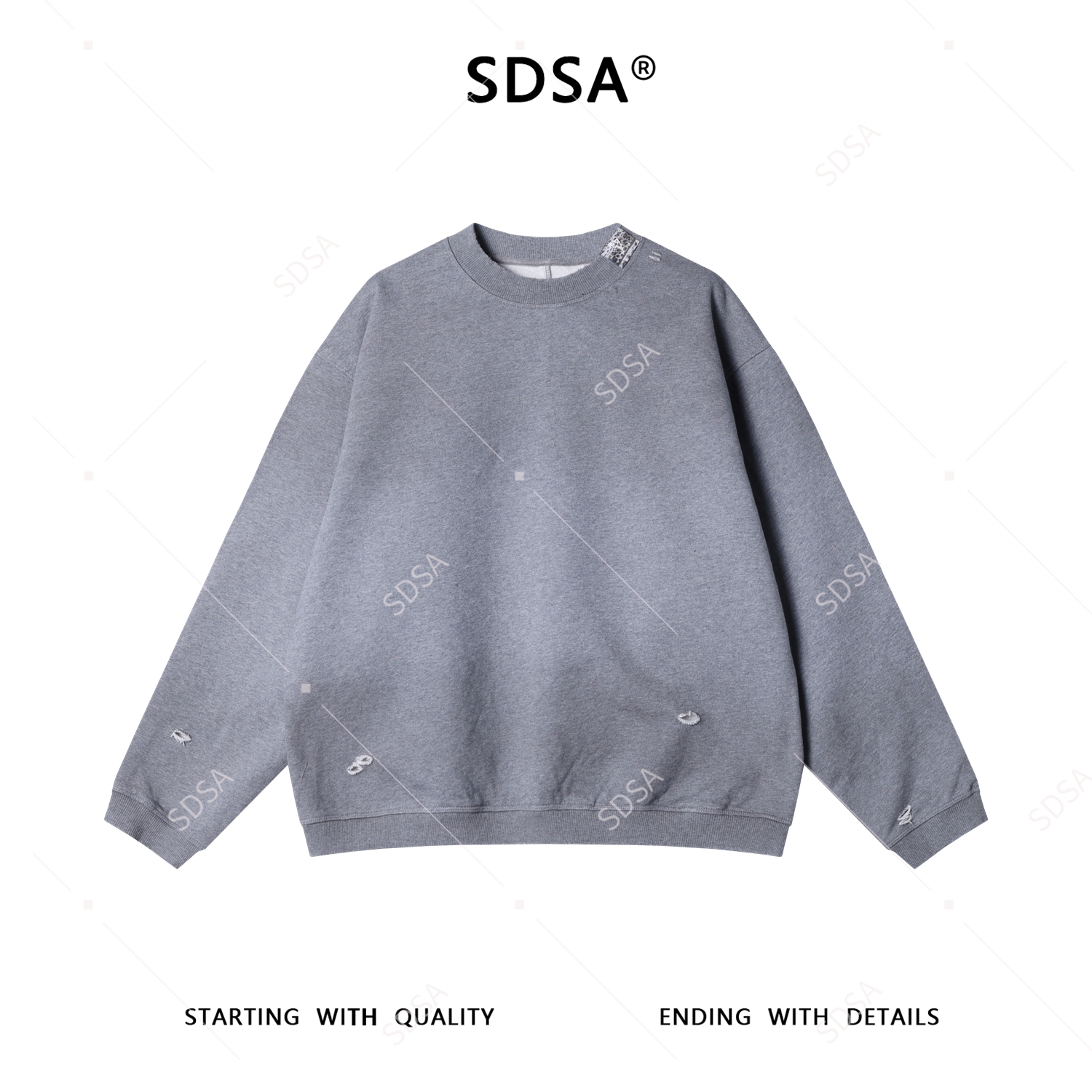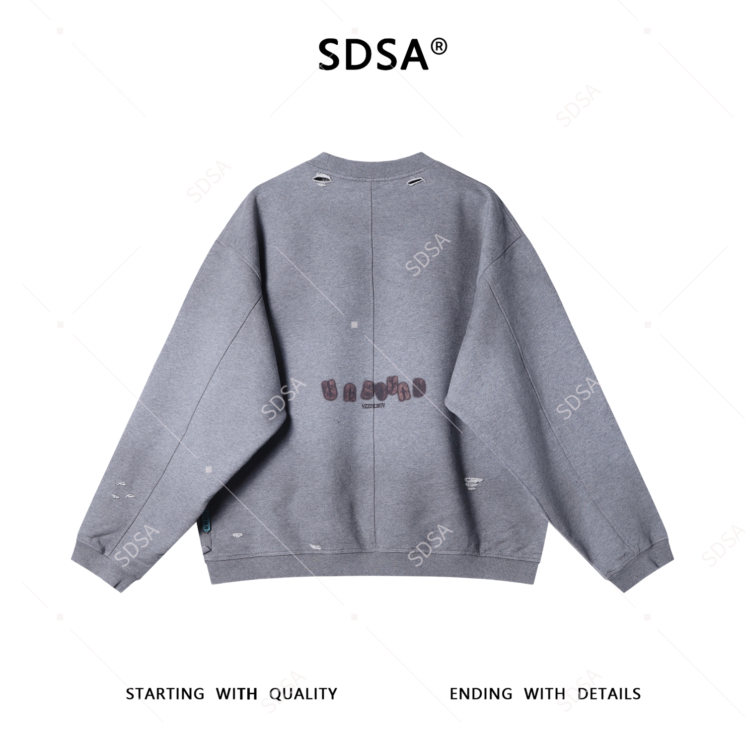SDSA男士秋冬新款痞帅男装韩版潮牌磨破圆领卫衣百搭套头上衣宽松